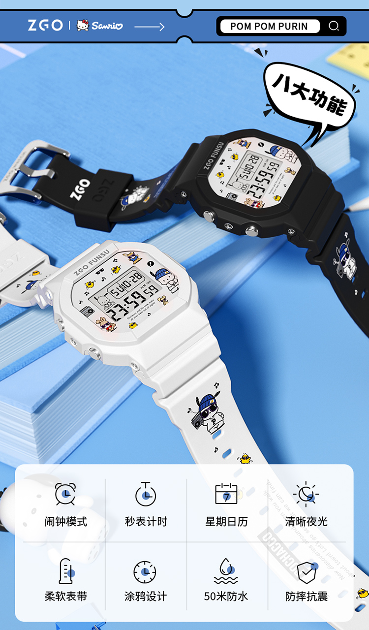Pacha Dog Sanrio Co-Branded Watch for Women, Junior High School Students, Junior High School Girls, 2025 New Sports Digital Watch