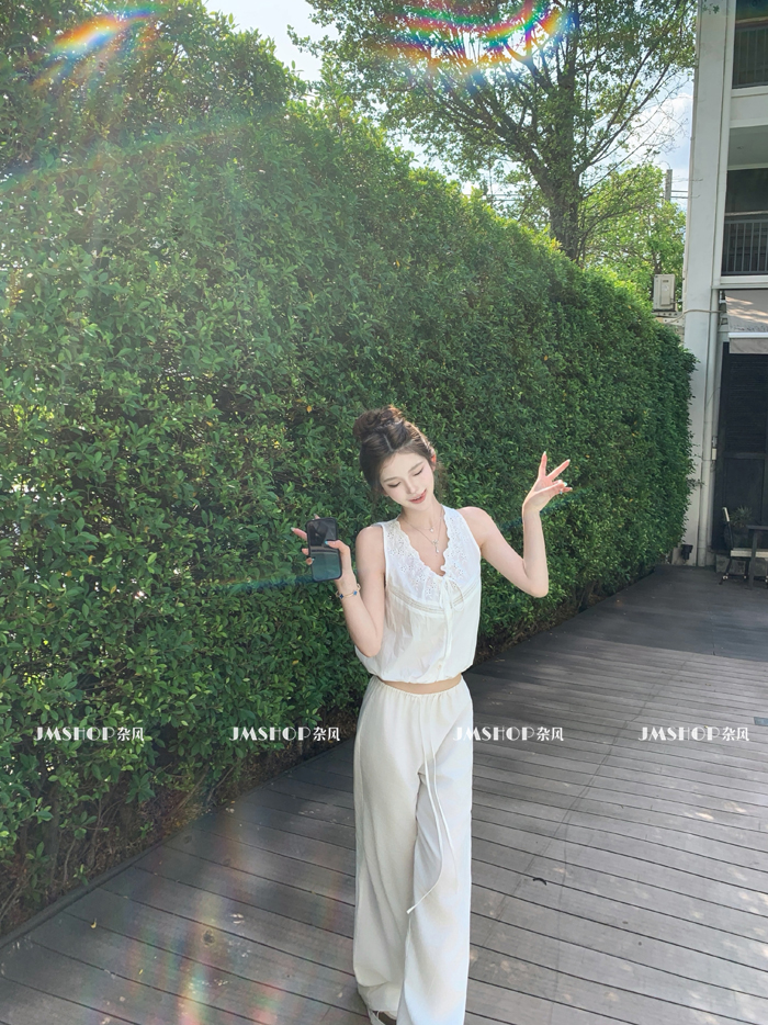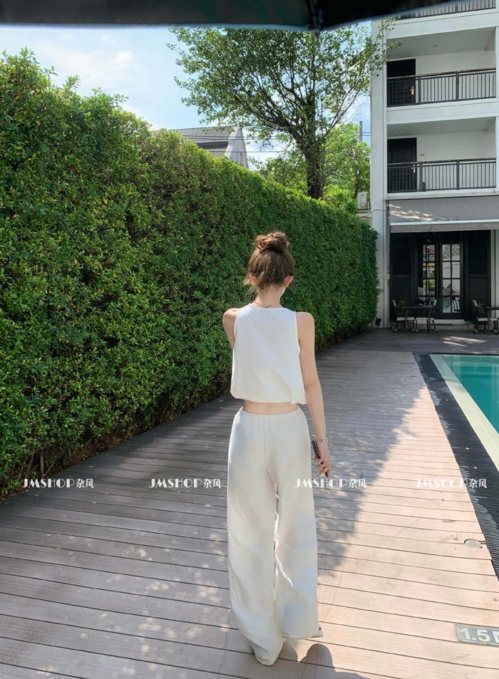 Jmshop Relaxed Fit Tencel Cotton Linen Pants for Women, Spring/Summer Elastic Drawstring Straight Loose Casual Pants