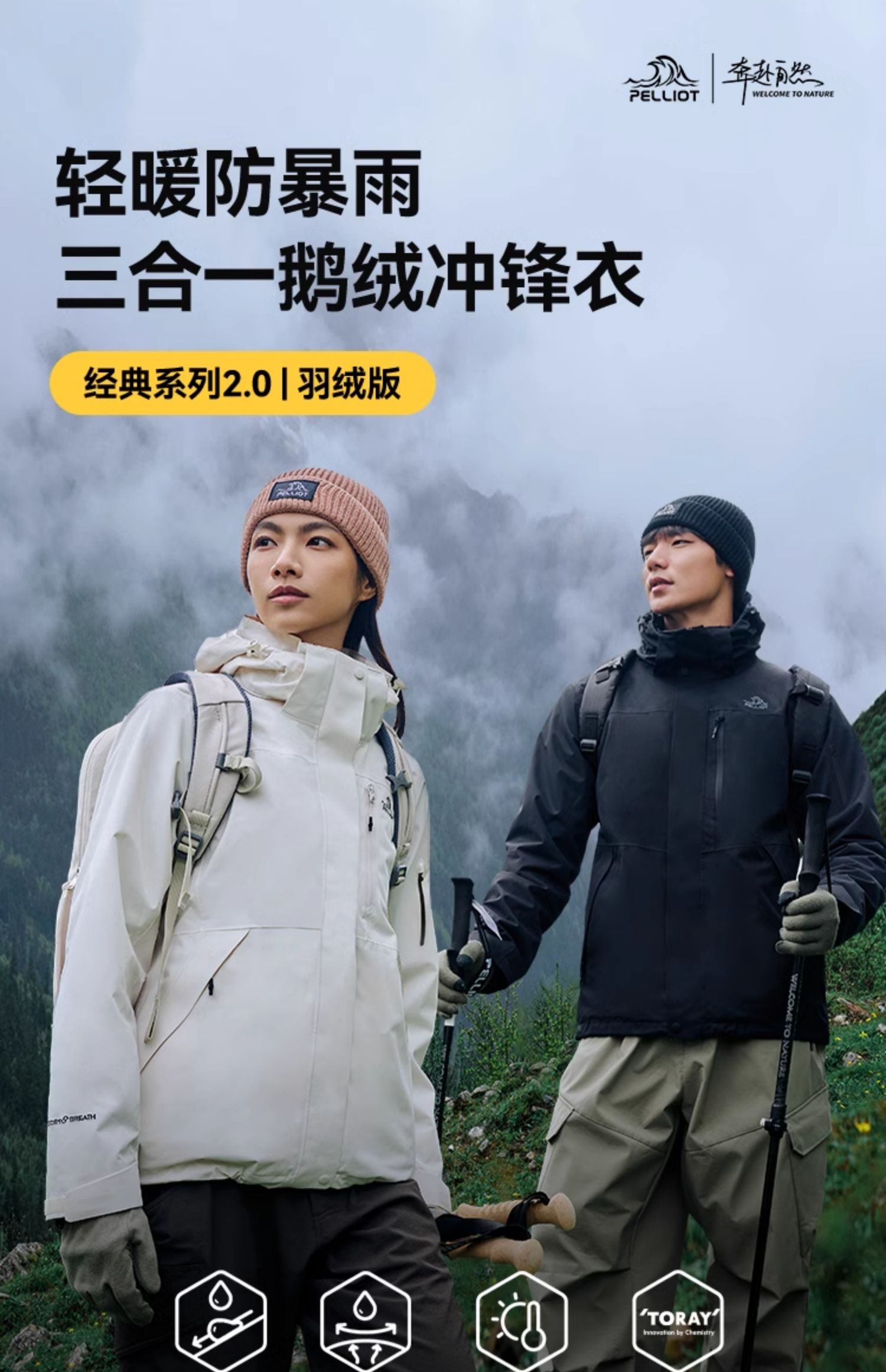 Pelliot Outdoor down Jacket for Women, New Three-In-One Goose down Liner, Windproof and Waterproof Mountaineering Jacket for Men
