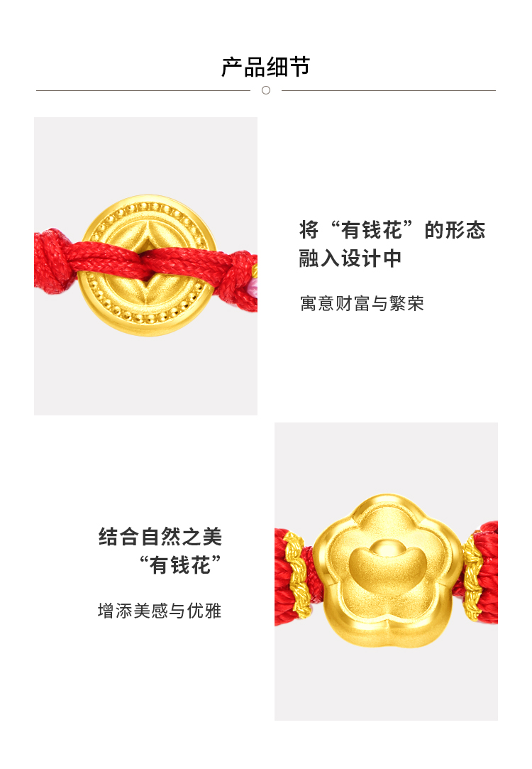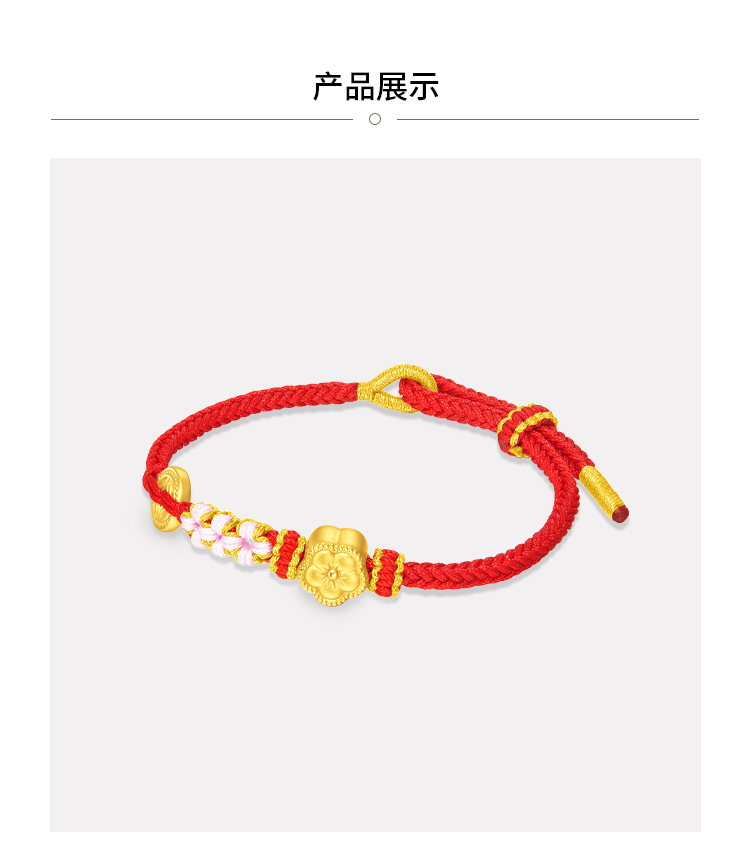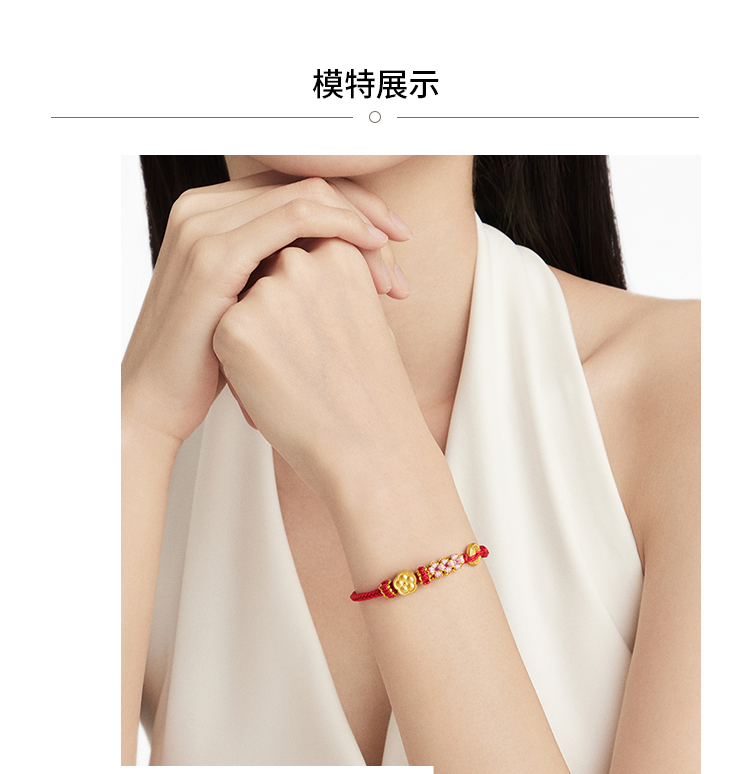 [Christmas Gift] Chow Tai Fook Wealth-Bringing Peach Blossom Coin Gold Fortune Bead Braided Bracelet Eor1121