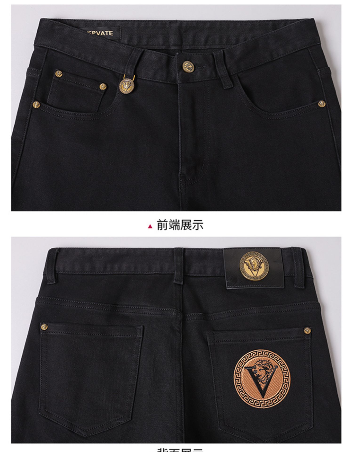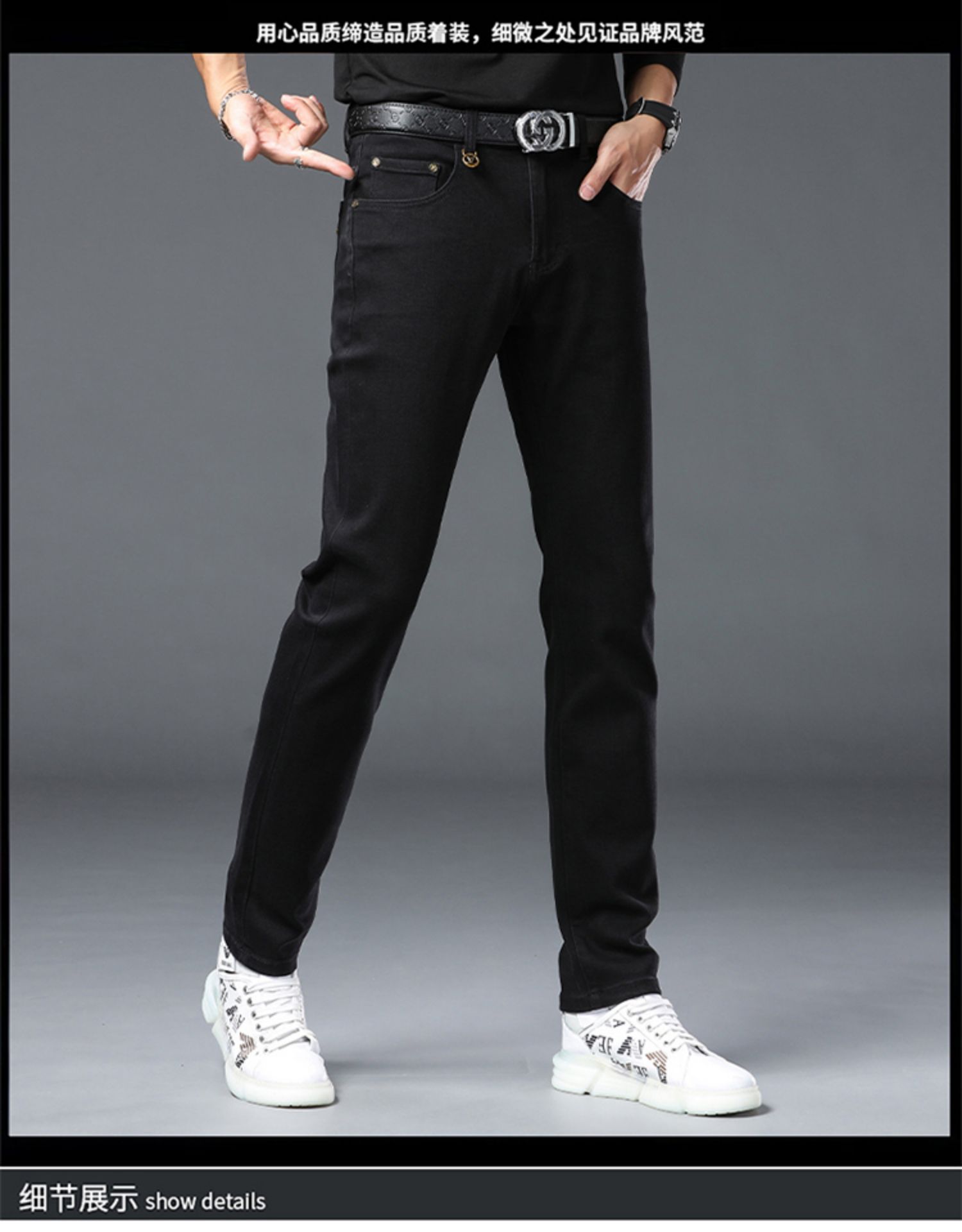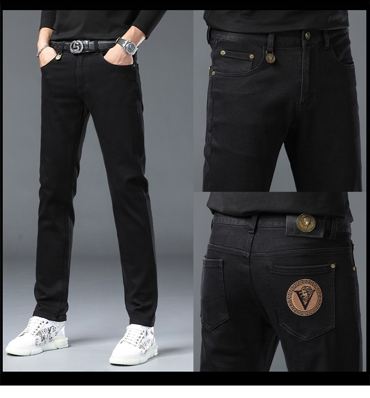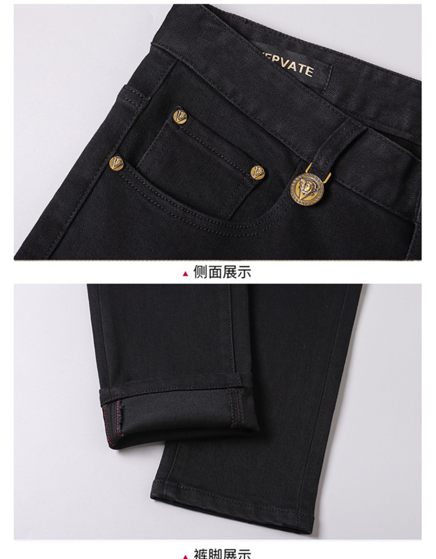 Italian High-End Brand Embroidered Black Jeans for Men, Spring 2025 New Trendy Slim-Fit Tapered Casual Pants