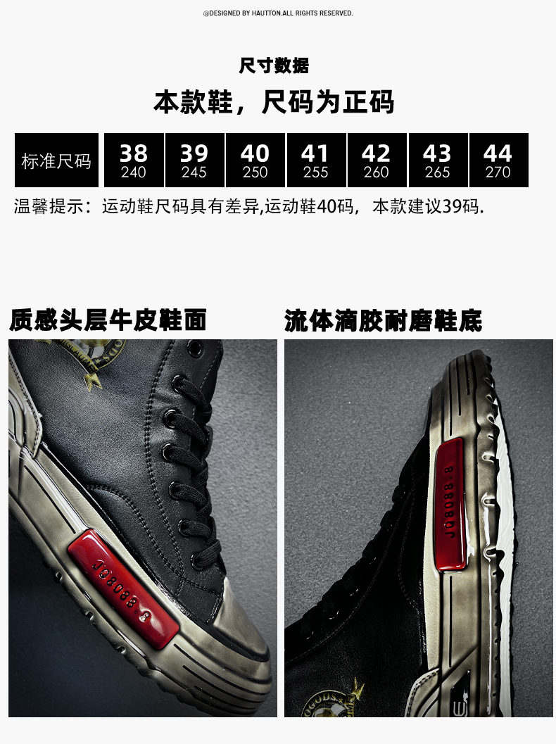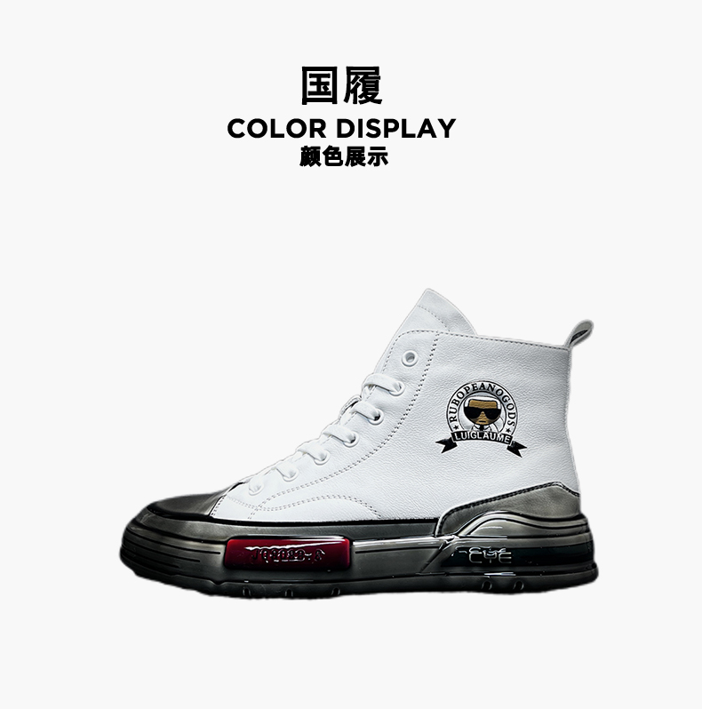 Autumn Men's Shoes New High-Top Shoes Men's Rubber Sole Shoes Trendy Genuine Leather Martin Boots Fashionable Casual White Shoes Men