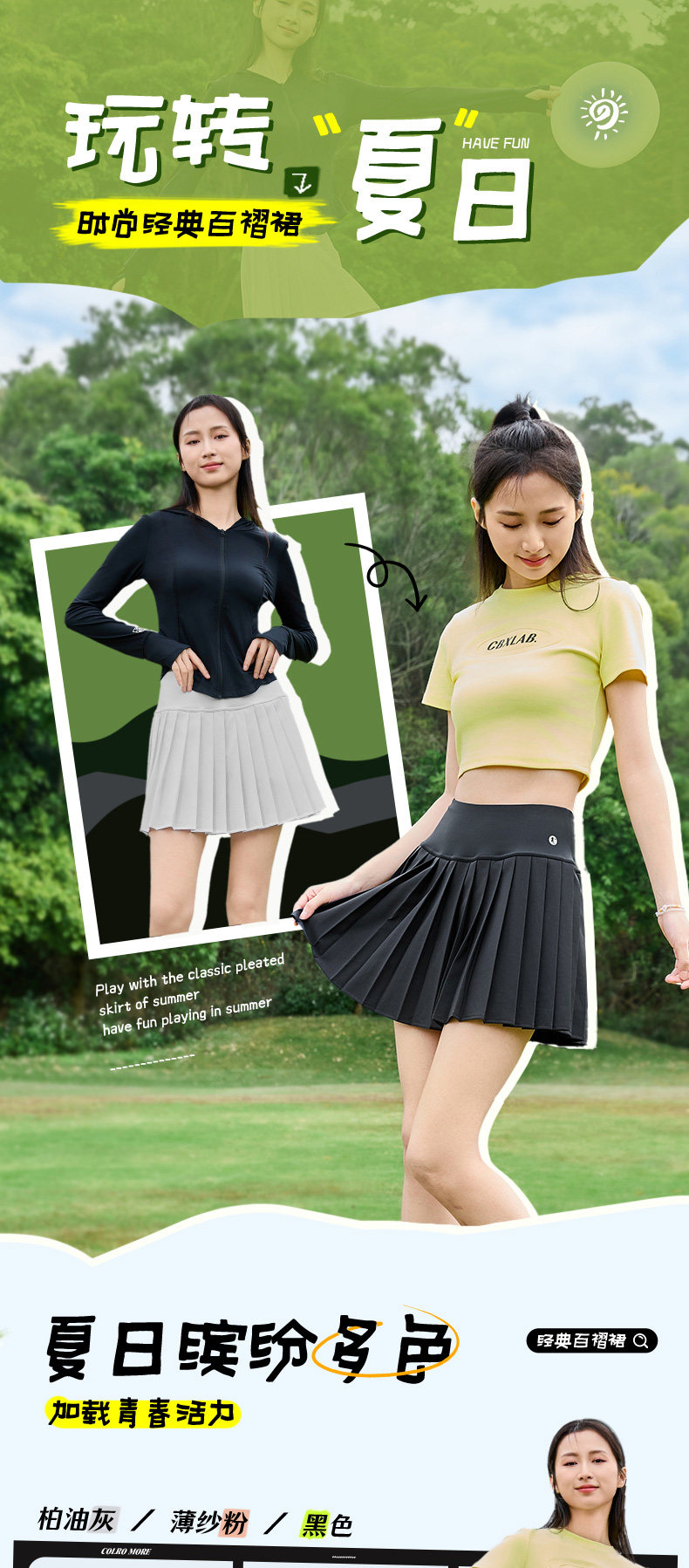 Jordan Pleated Skirt for Women 2025 Summer New High-Waisted Elastic Slimming Breathable Short Skirt A-Line Tennis Versatile