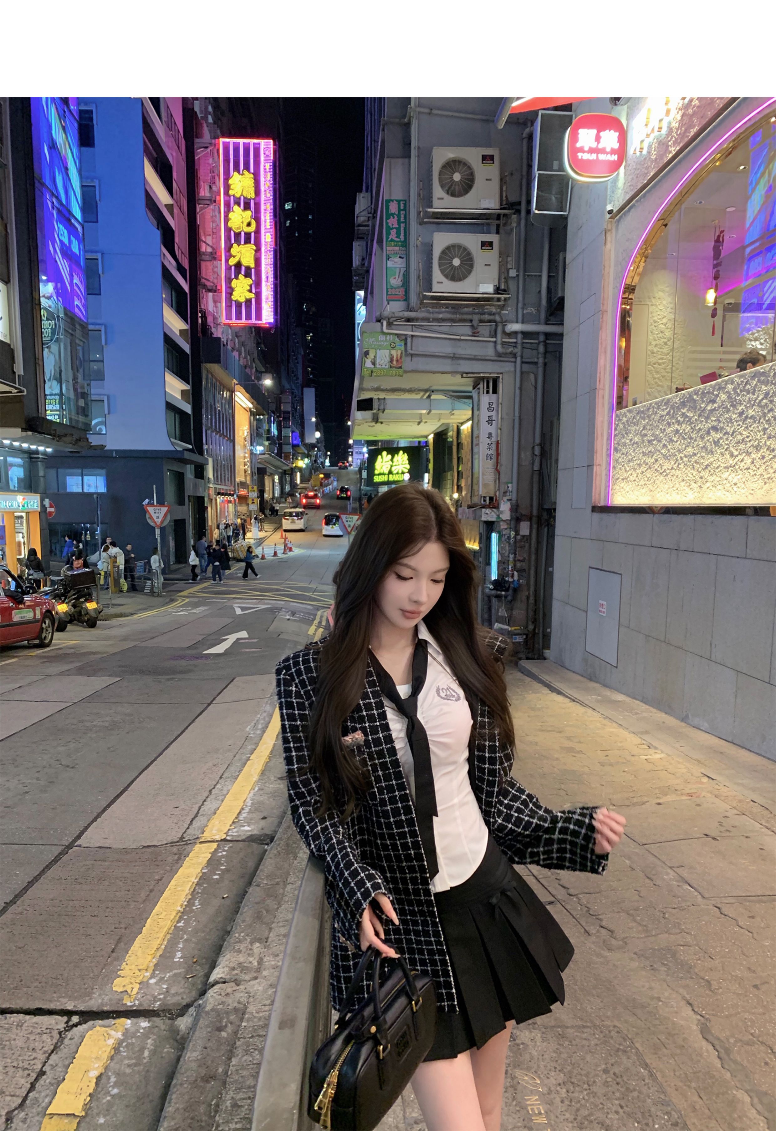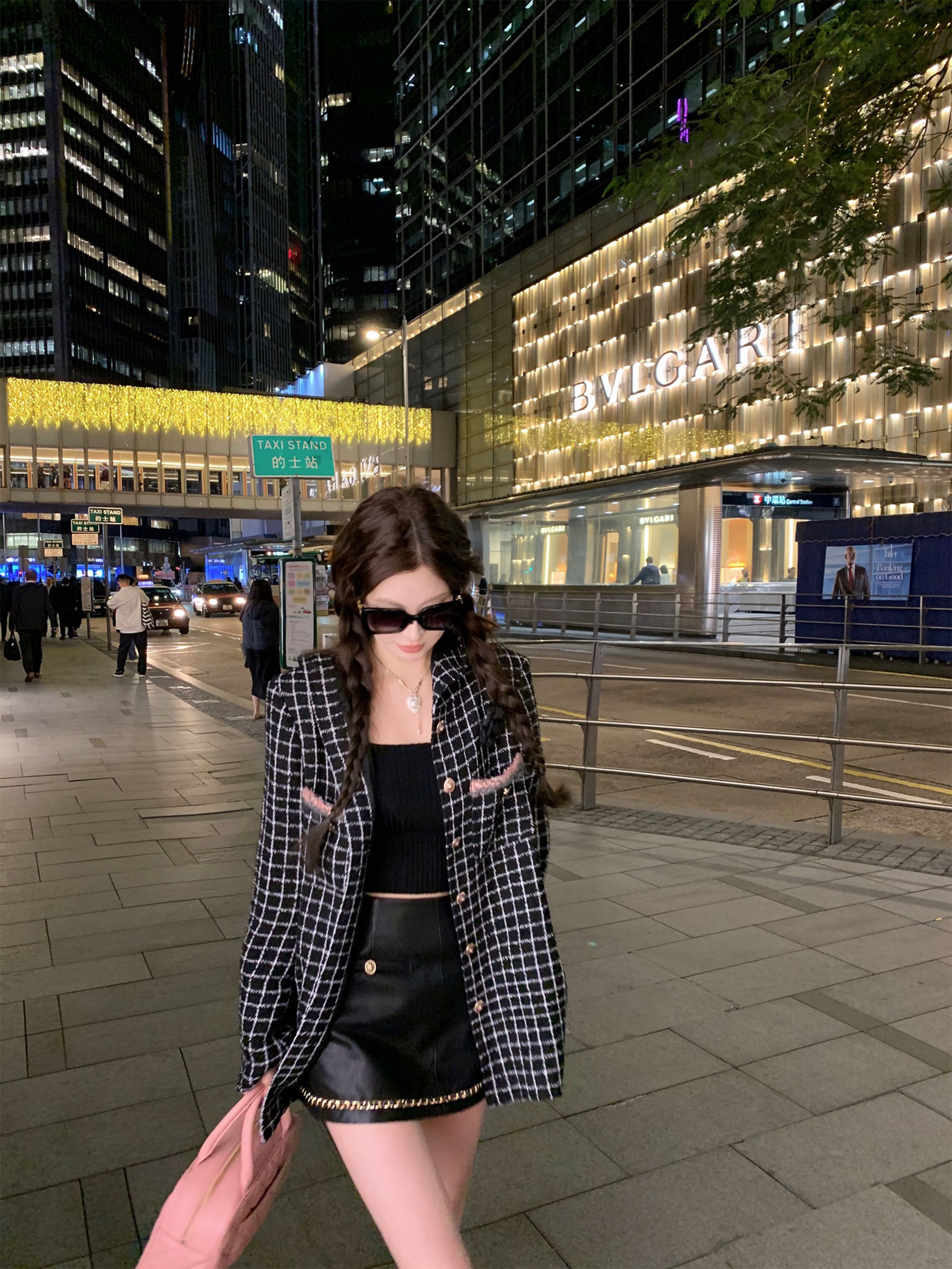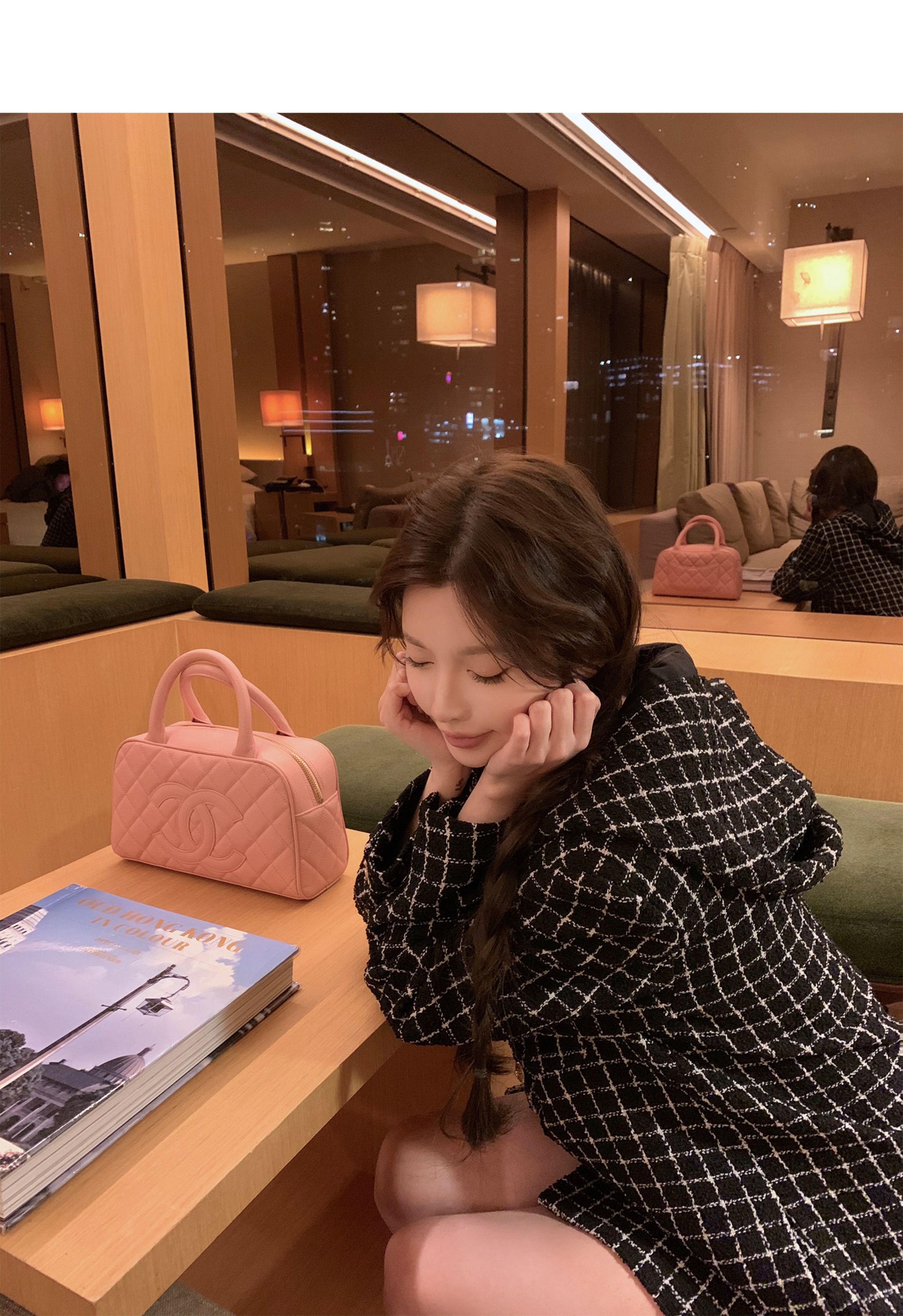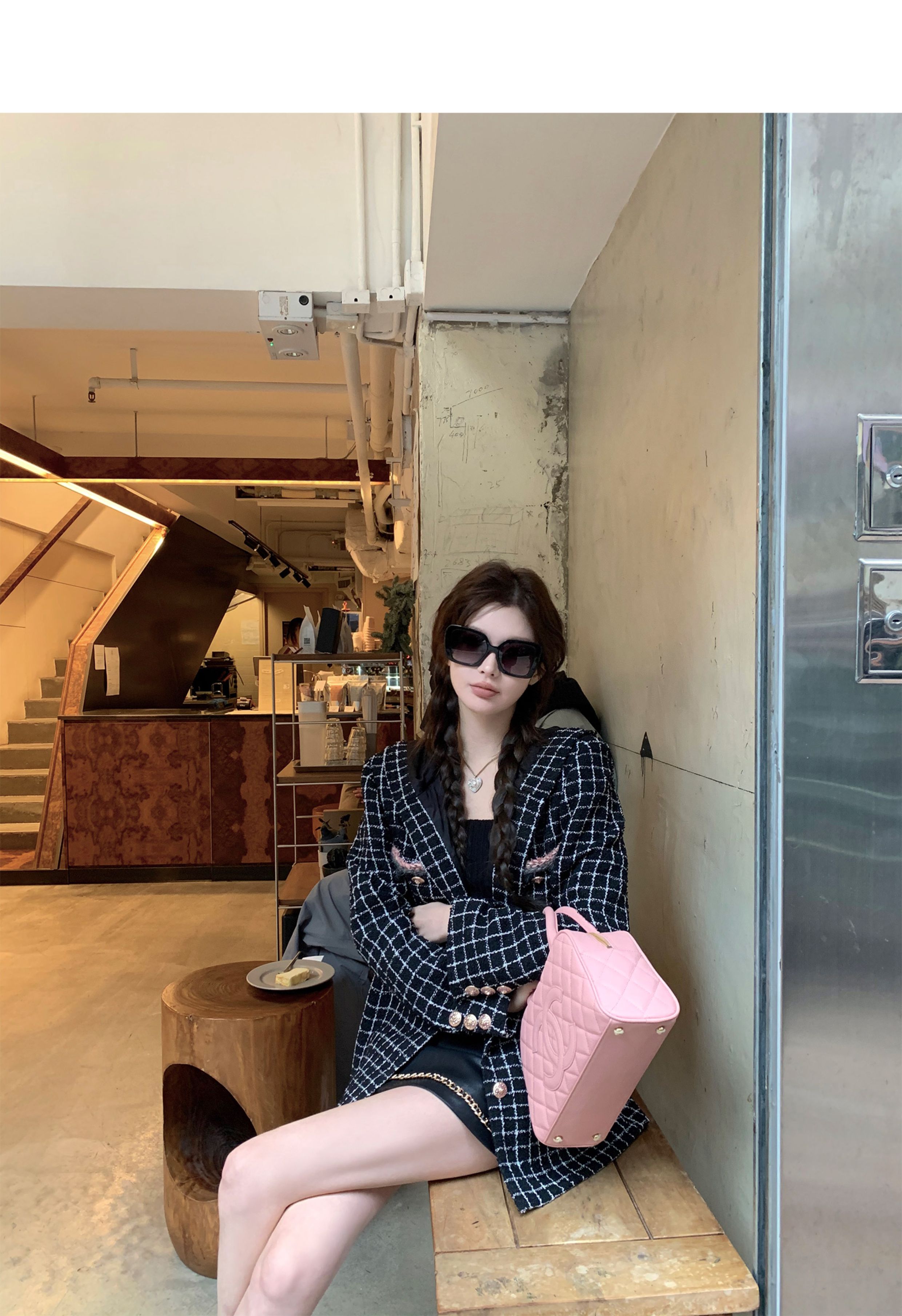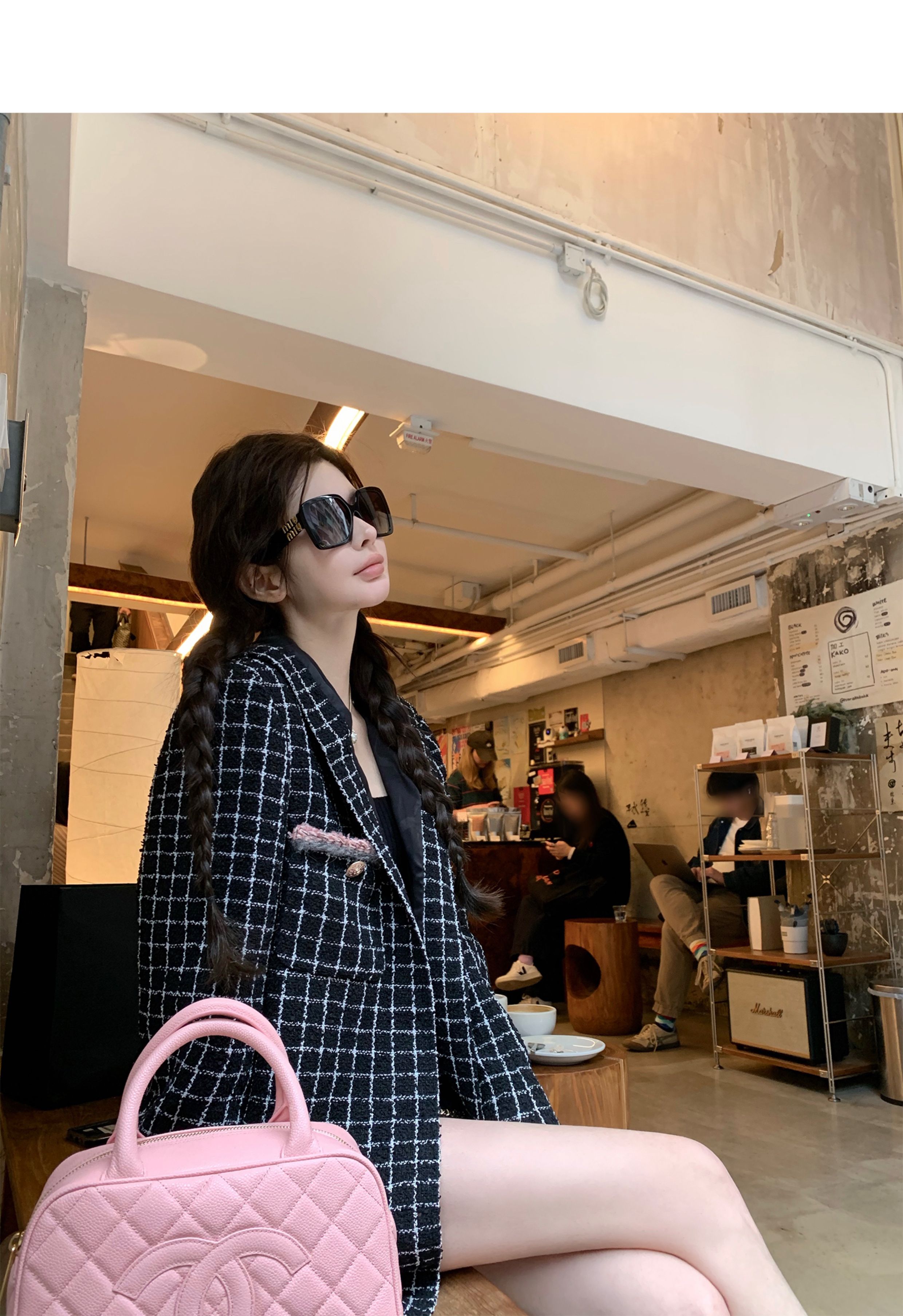 [Small Quantity in Stock] Chicyou Black Plaid Hooded Thin Tweed Versatile Chanel-Style Jacket for Women