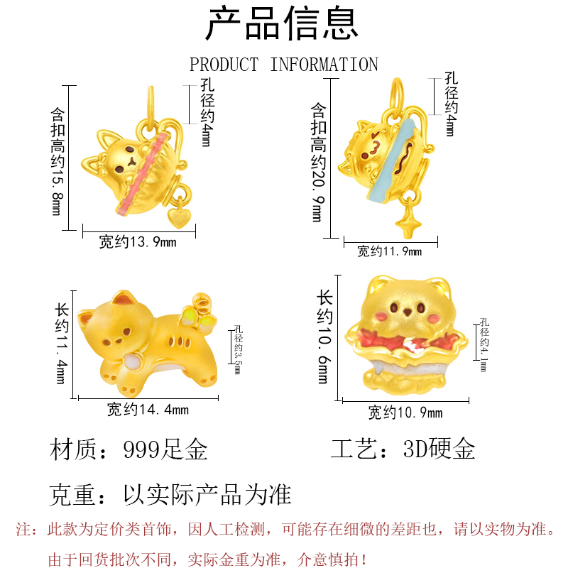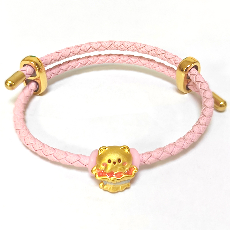 999 Gold Cat Fortune Bead 3D Hard Gold Pure Gold Cute Kitten Bead Charm Bracelet Gift for Girlfriend