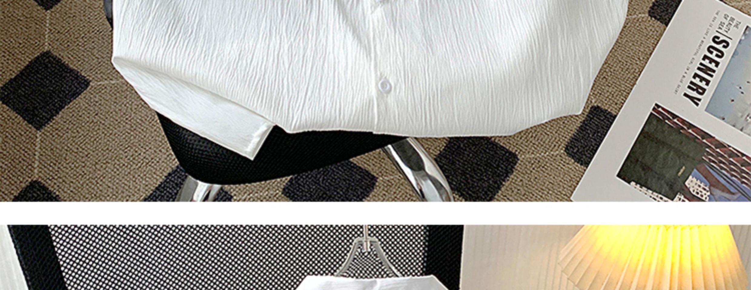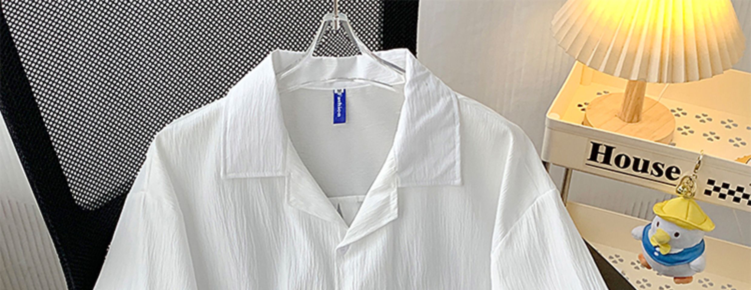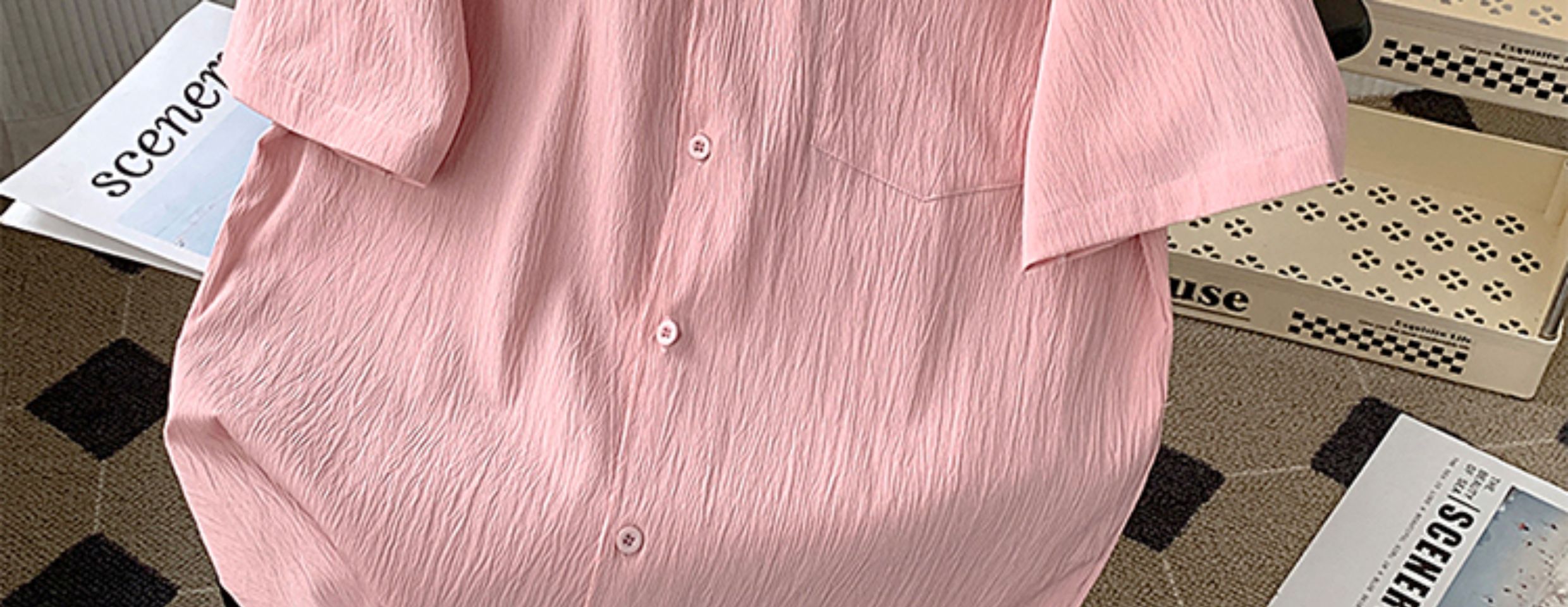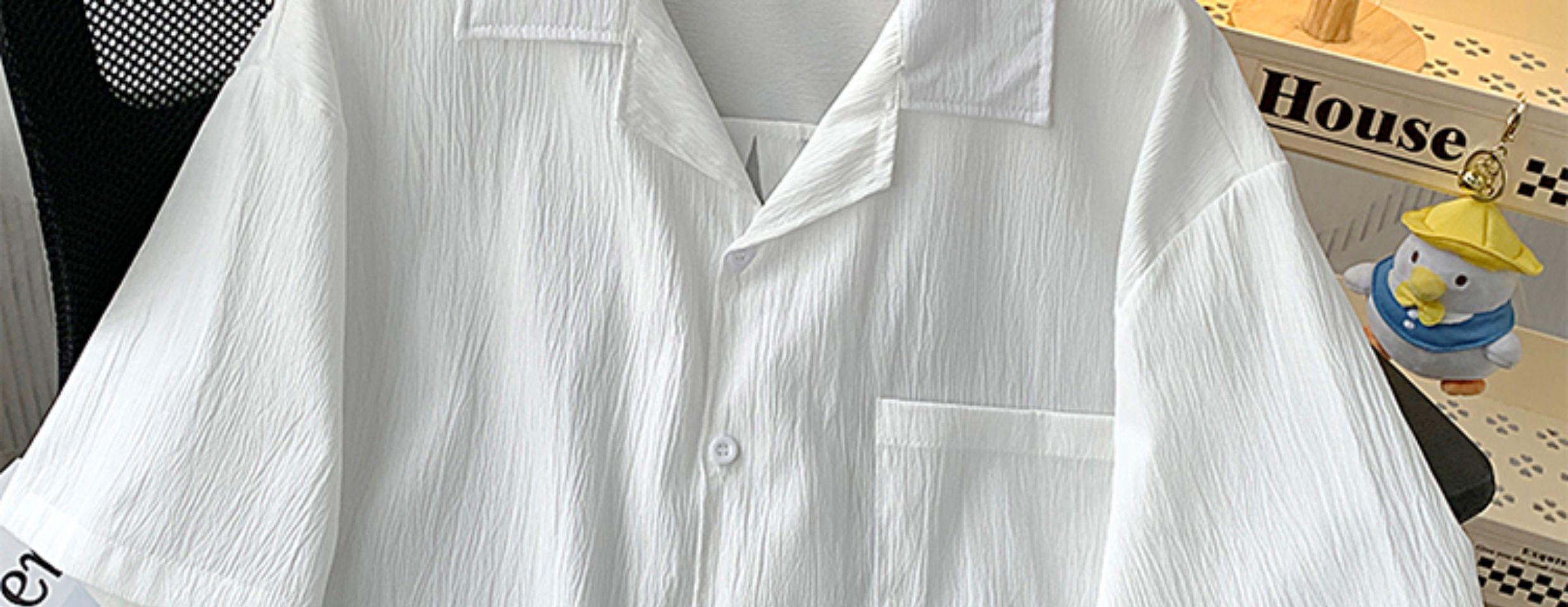 Trendy New Chinese Style Ice Silk Pleated Short-Sleeved Cuban Collar Shirt for Men, Solid Color Summer Cool Half-Sleeve Casual Shirt