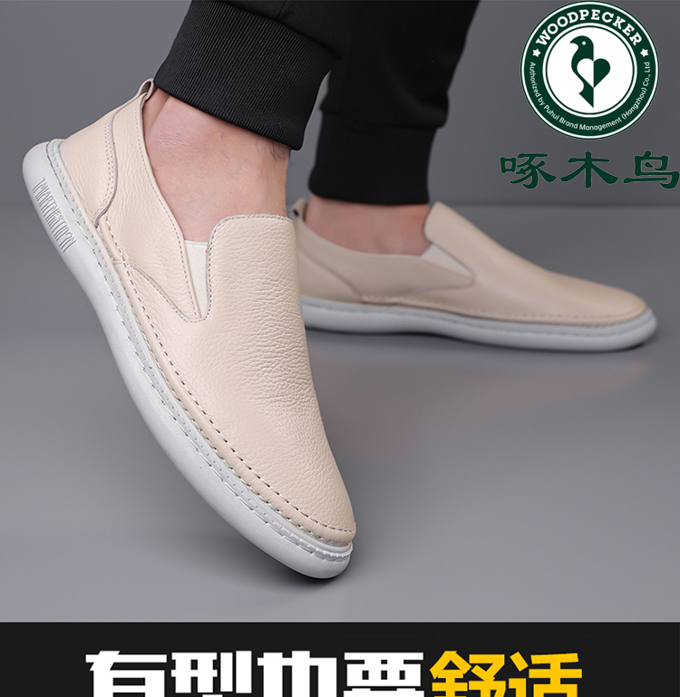 Woodpecker Men's Shoes Spring New Breathable Genuine Leather Dad Casual Leather Shoes Soft Sole Versatile Slip-On Loafers for Men
