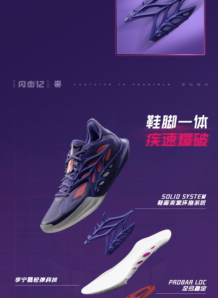 Li-Ning Pokémon Collaboration Series Blitz 12 Gengar | Basketball Shoes Men's Shoes Cushioning Practical Low-Top Sports Shoes