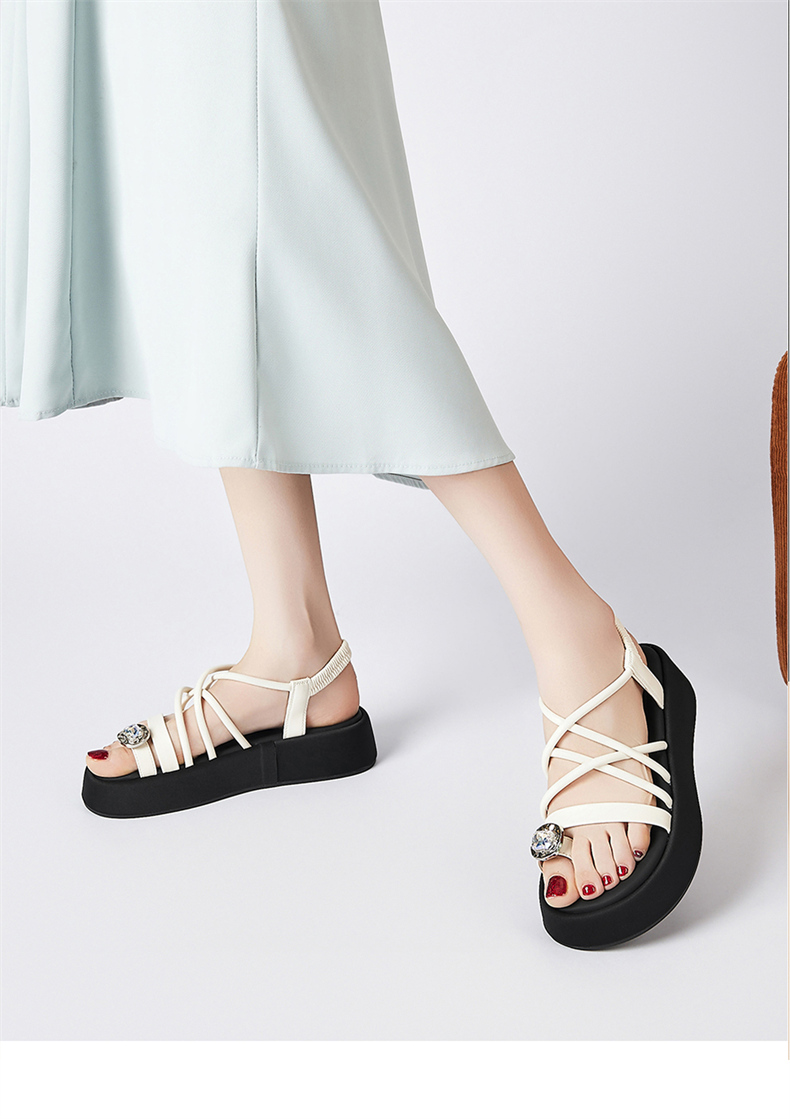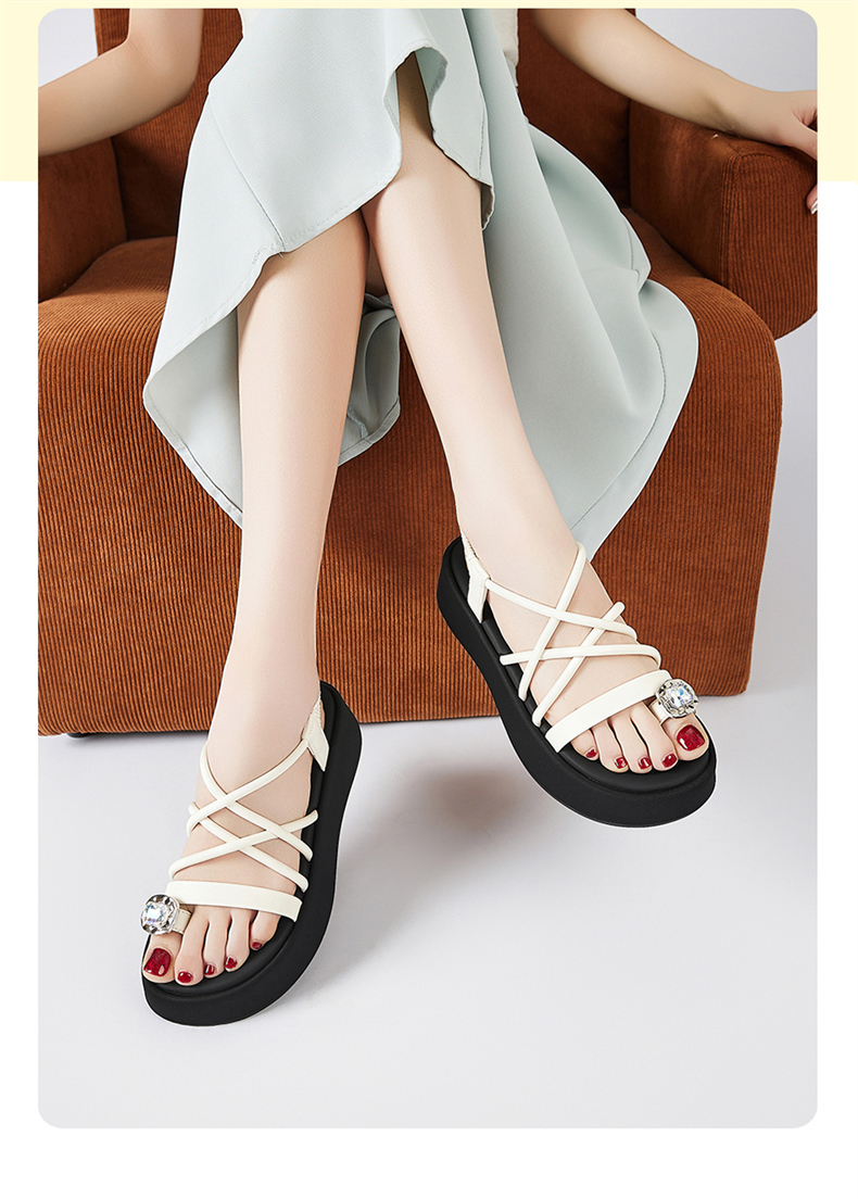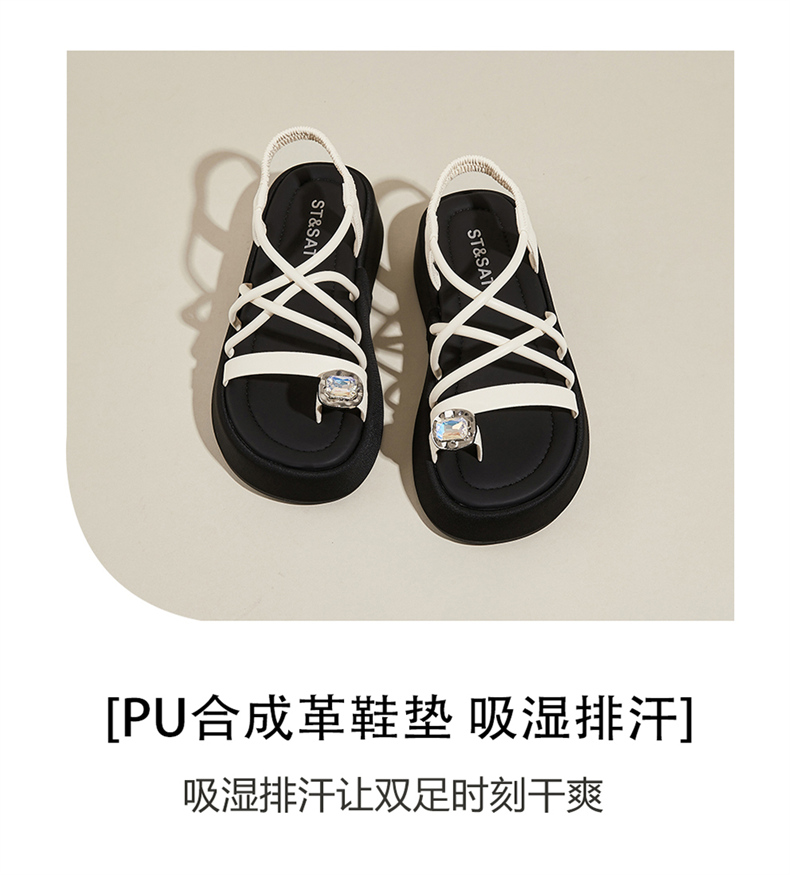 Saturday Strap Sandals for Women 2025 Summer New Thick-Soled Versatile Roman Sandals Rhinestone Casual Sandals