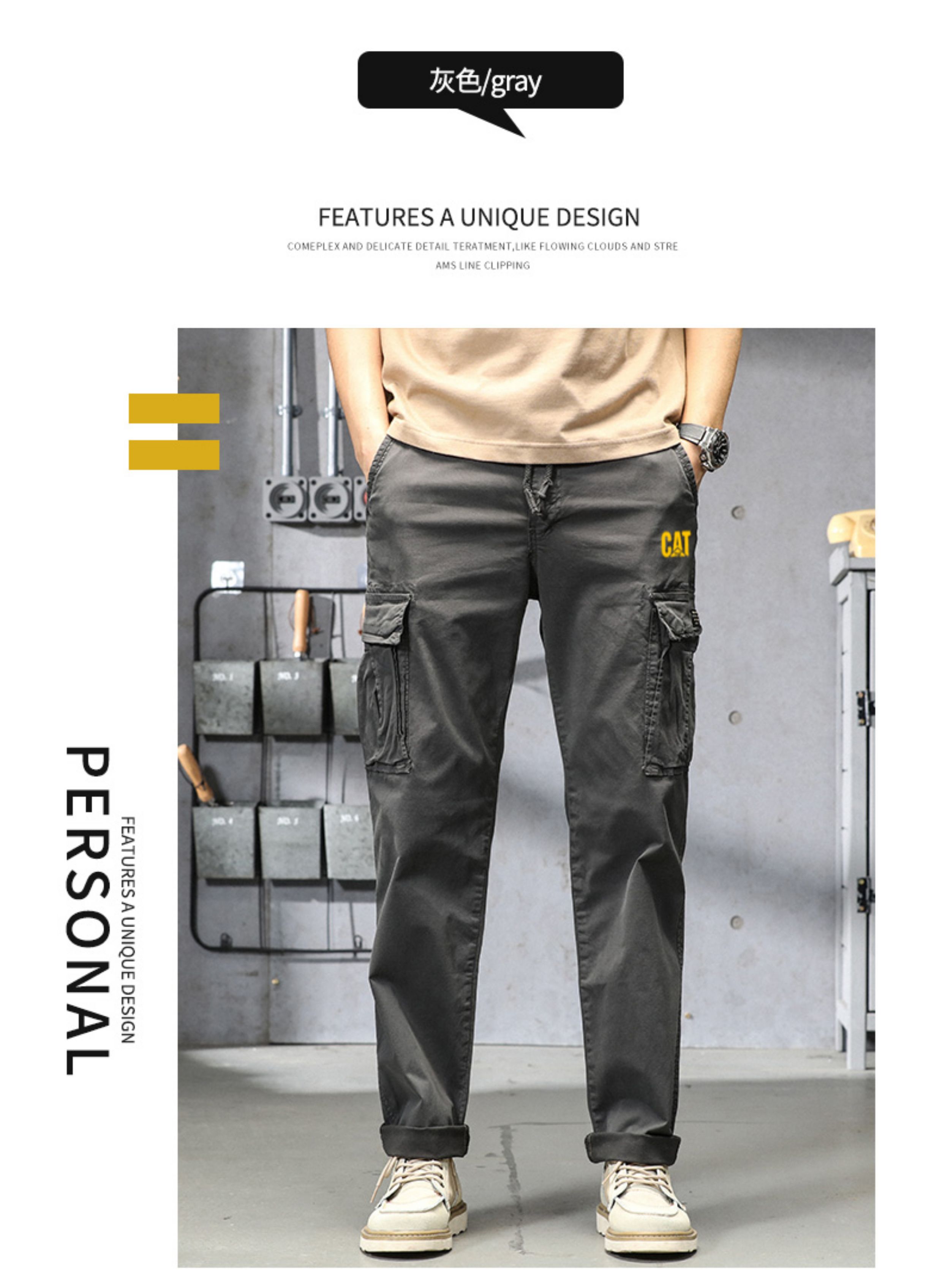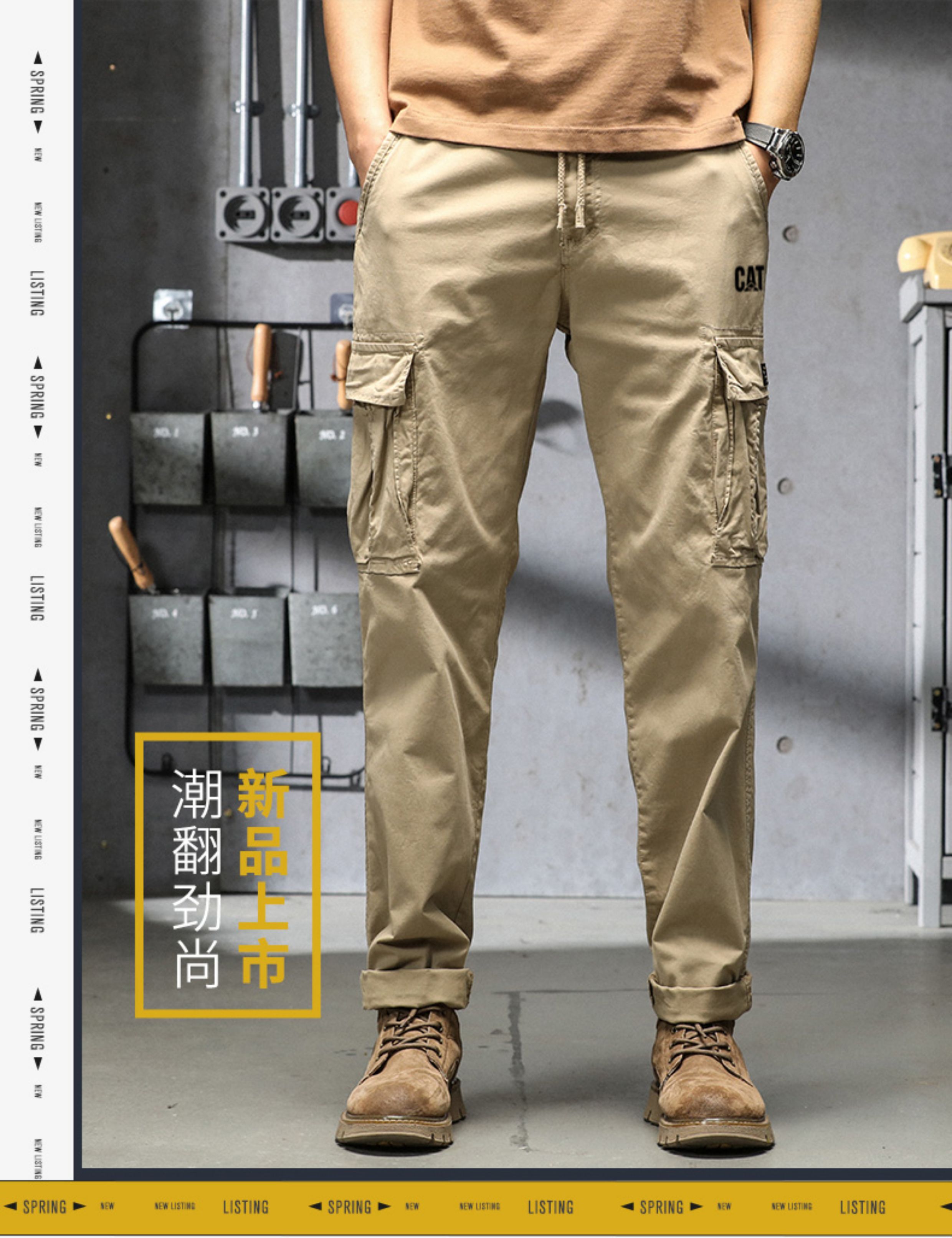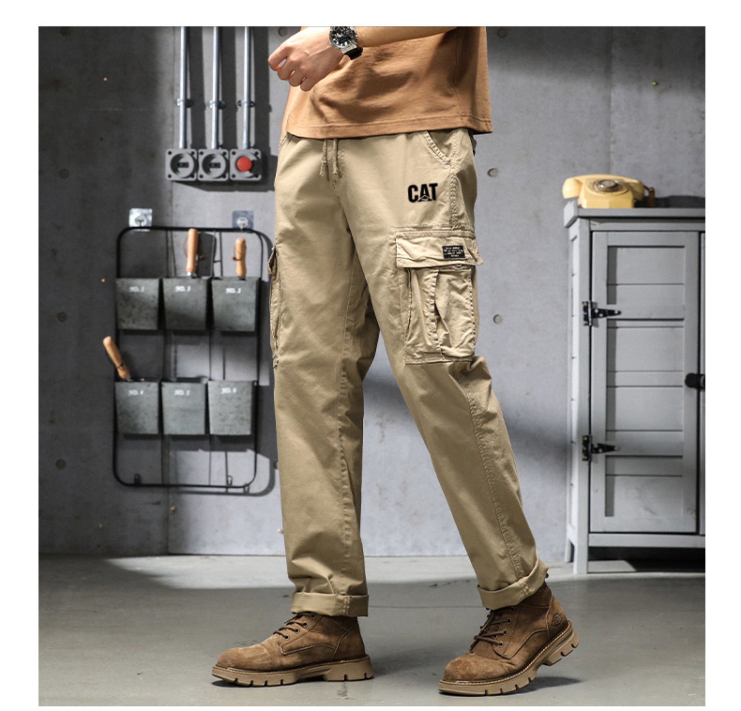 Tnf Cat/Carter Straight-Leg Cargo Pants for Men, Spring and Autumn, Us Military Khaki Multi-Pocket Loose Casual Pants for Men, Trendy
