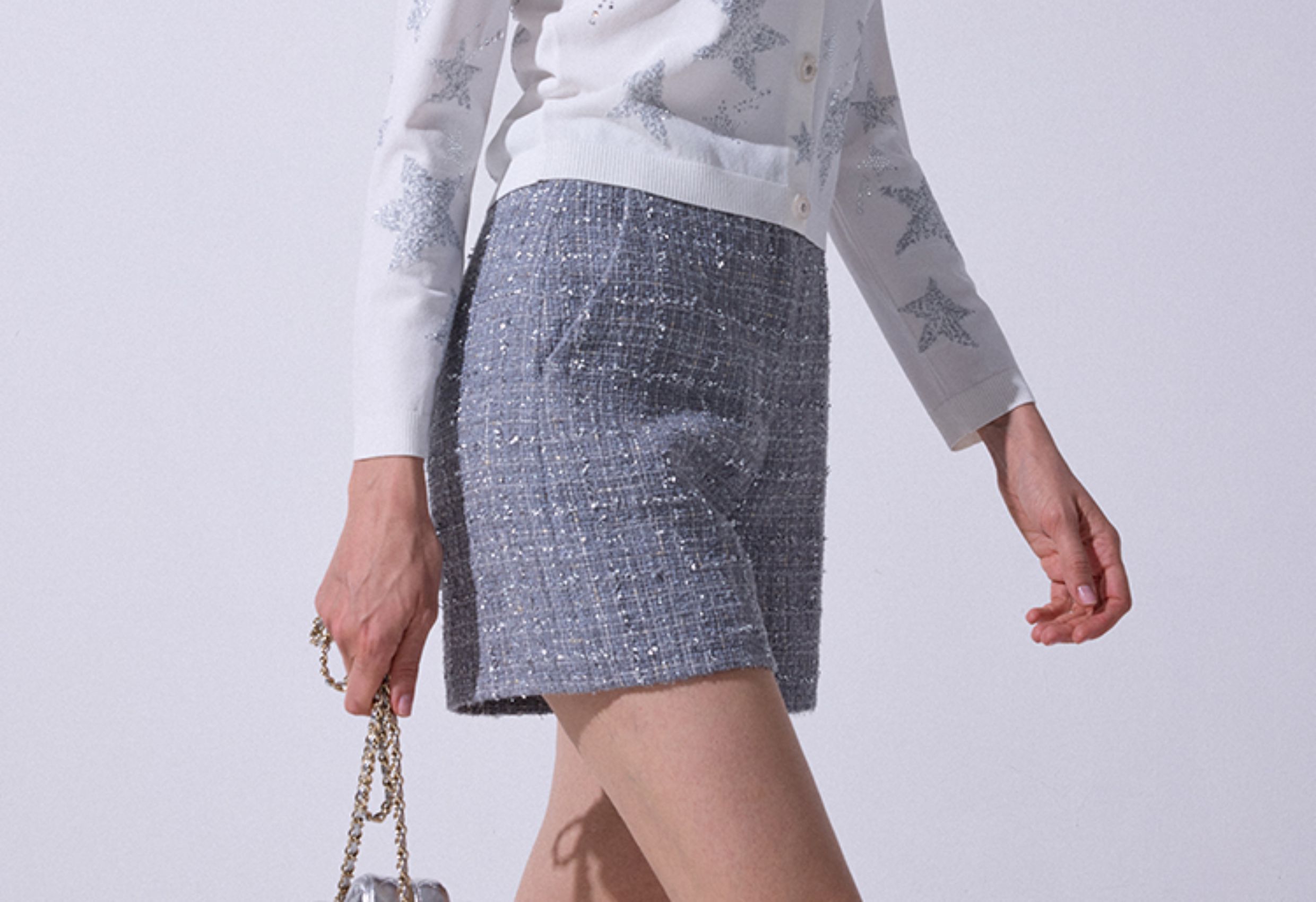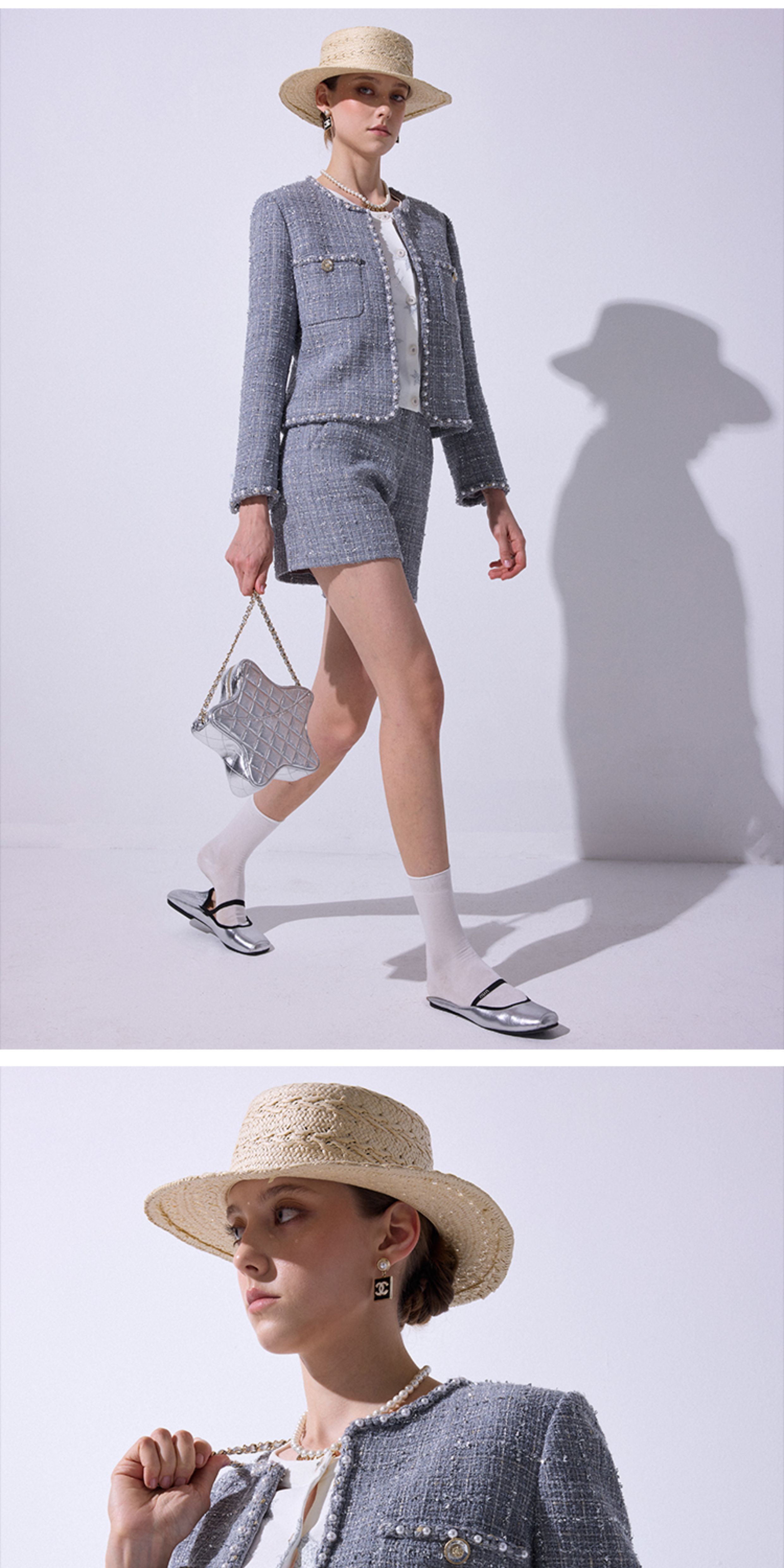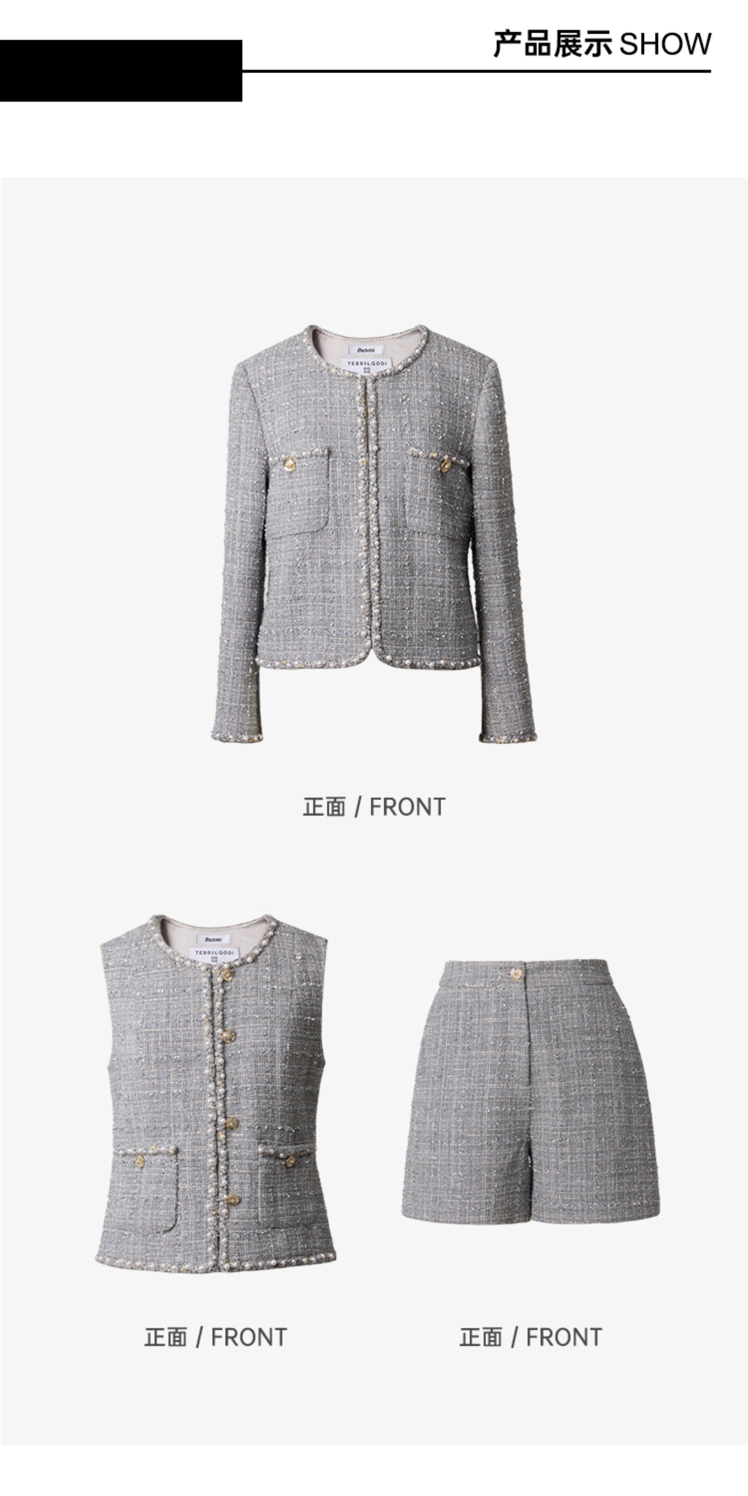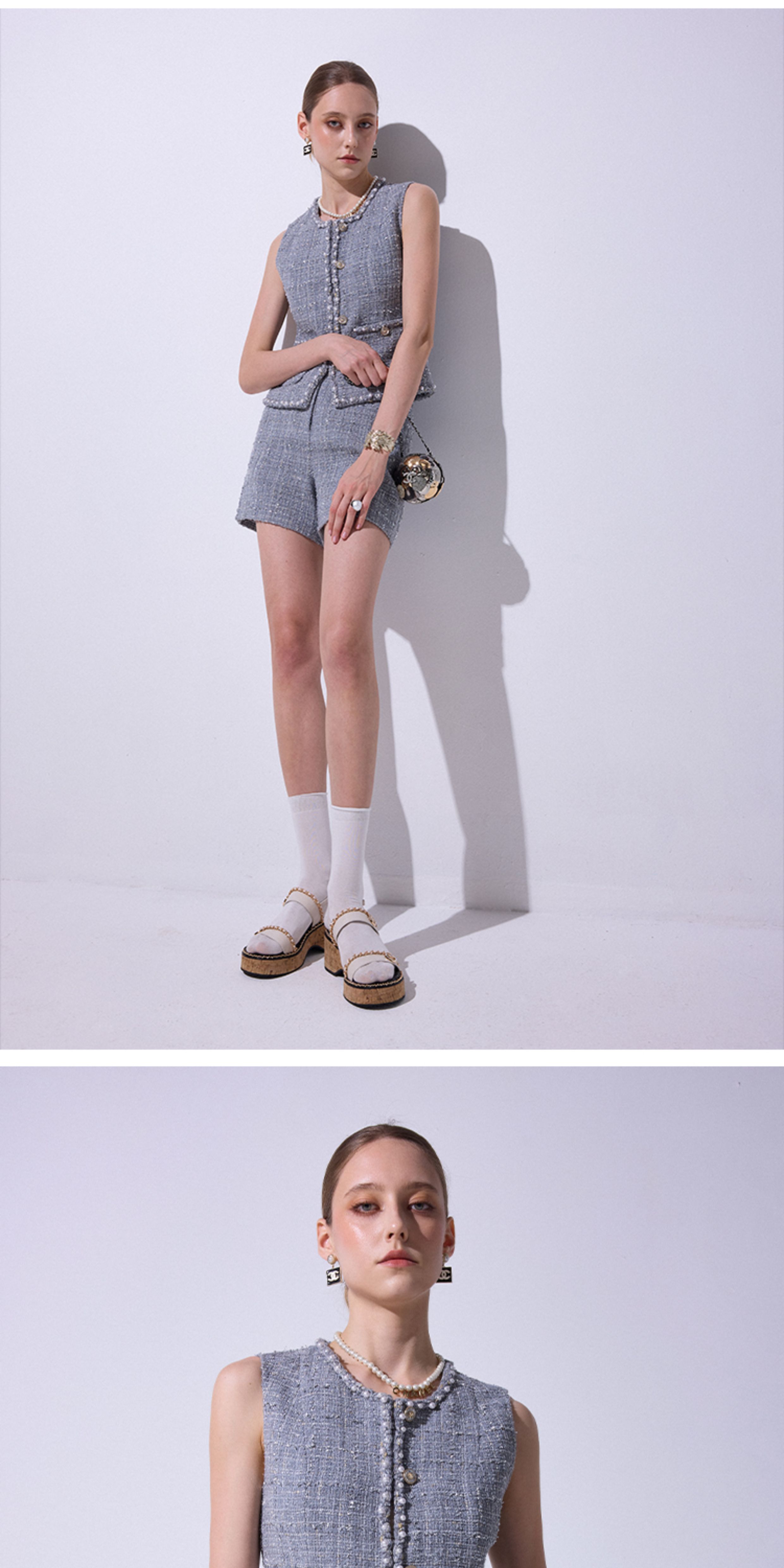 Blacknini "Gray Pearl" Italian Tessigodi Tweed Chanel-Style Jacket/Vest/Shorts