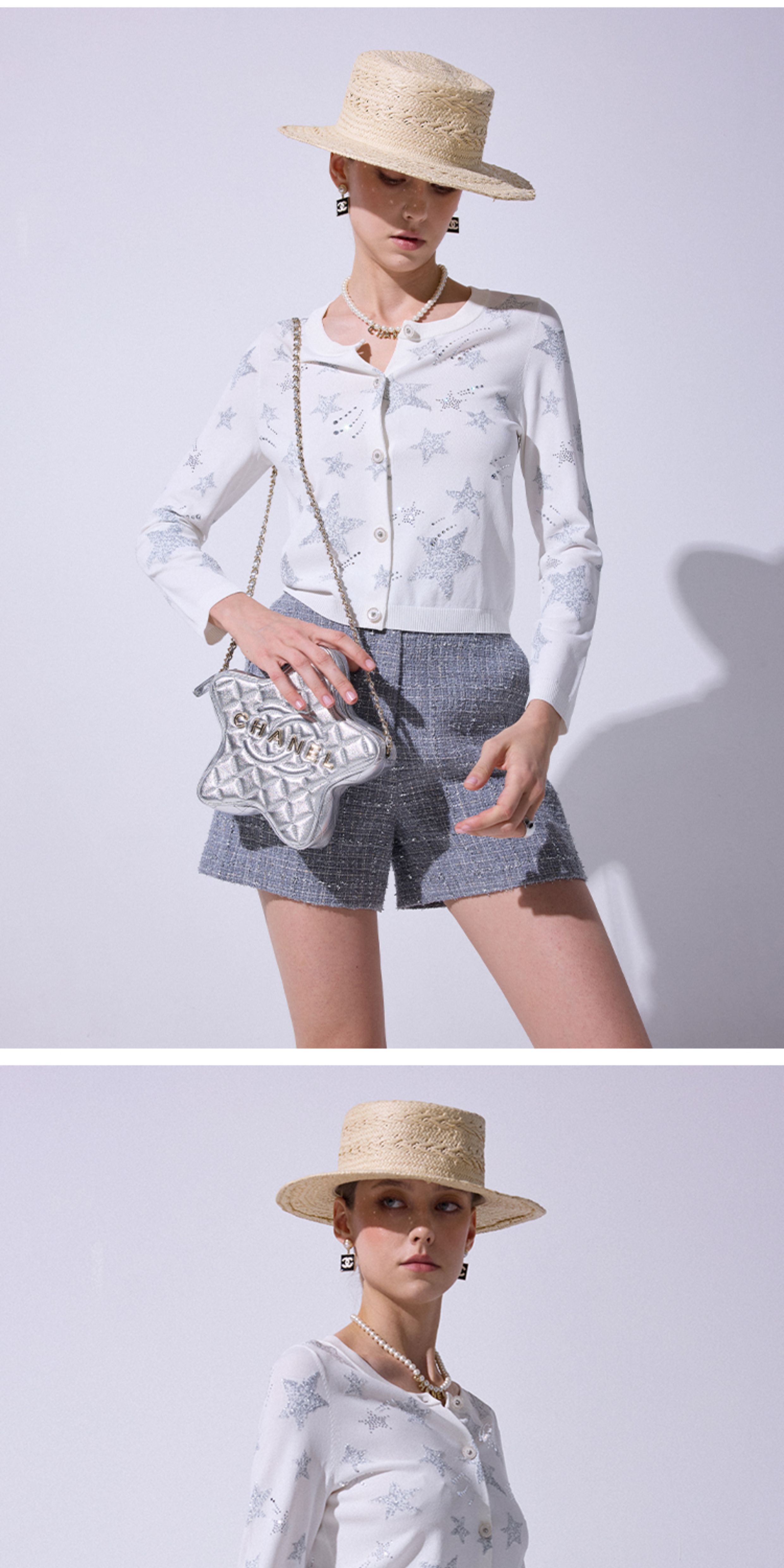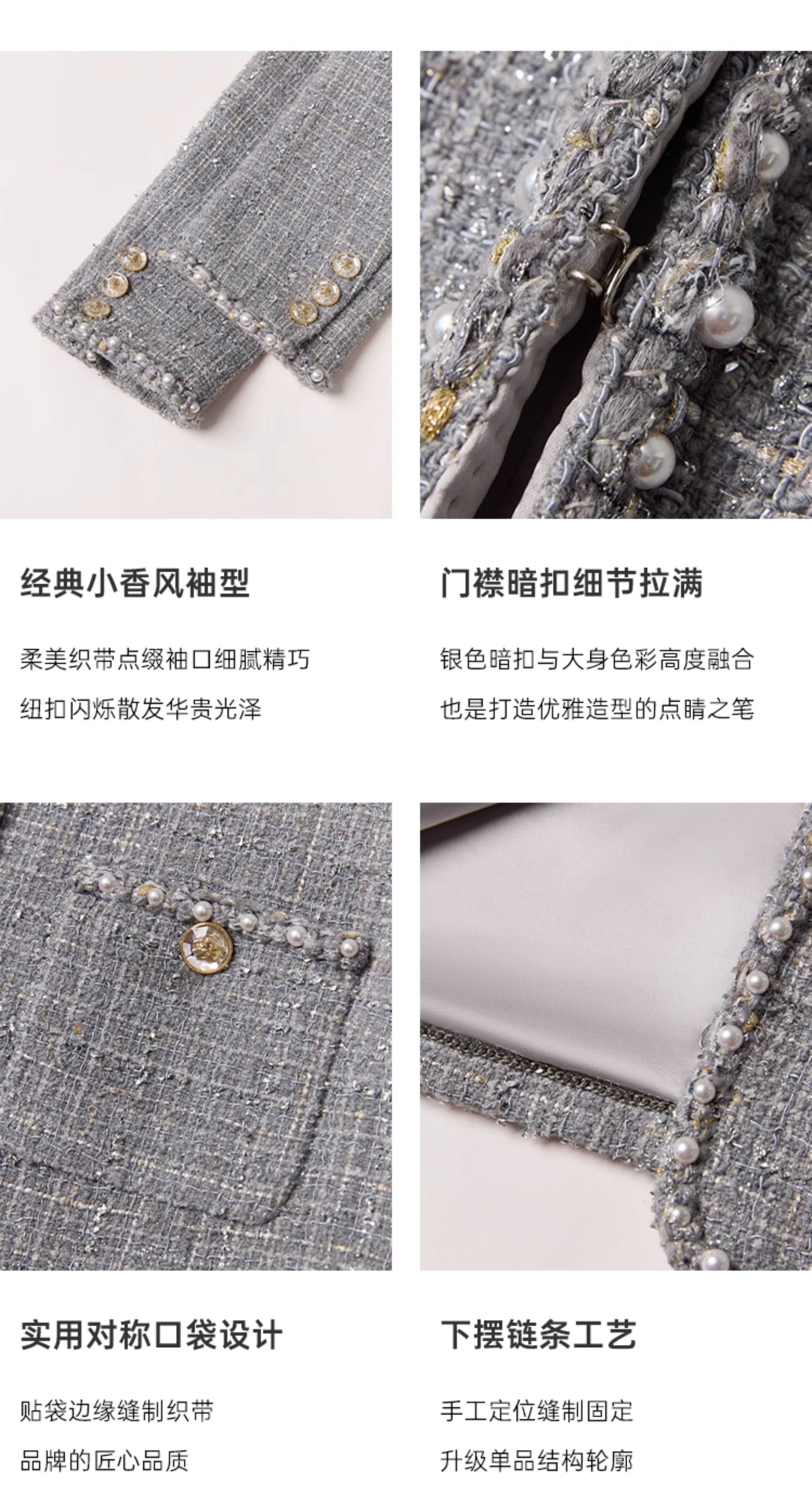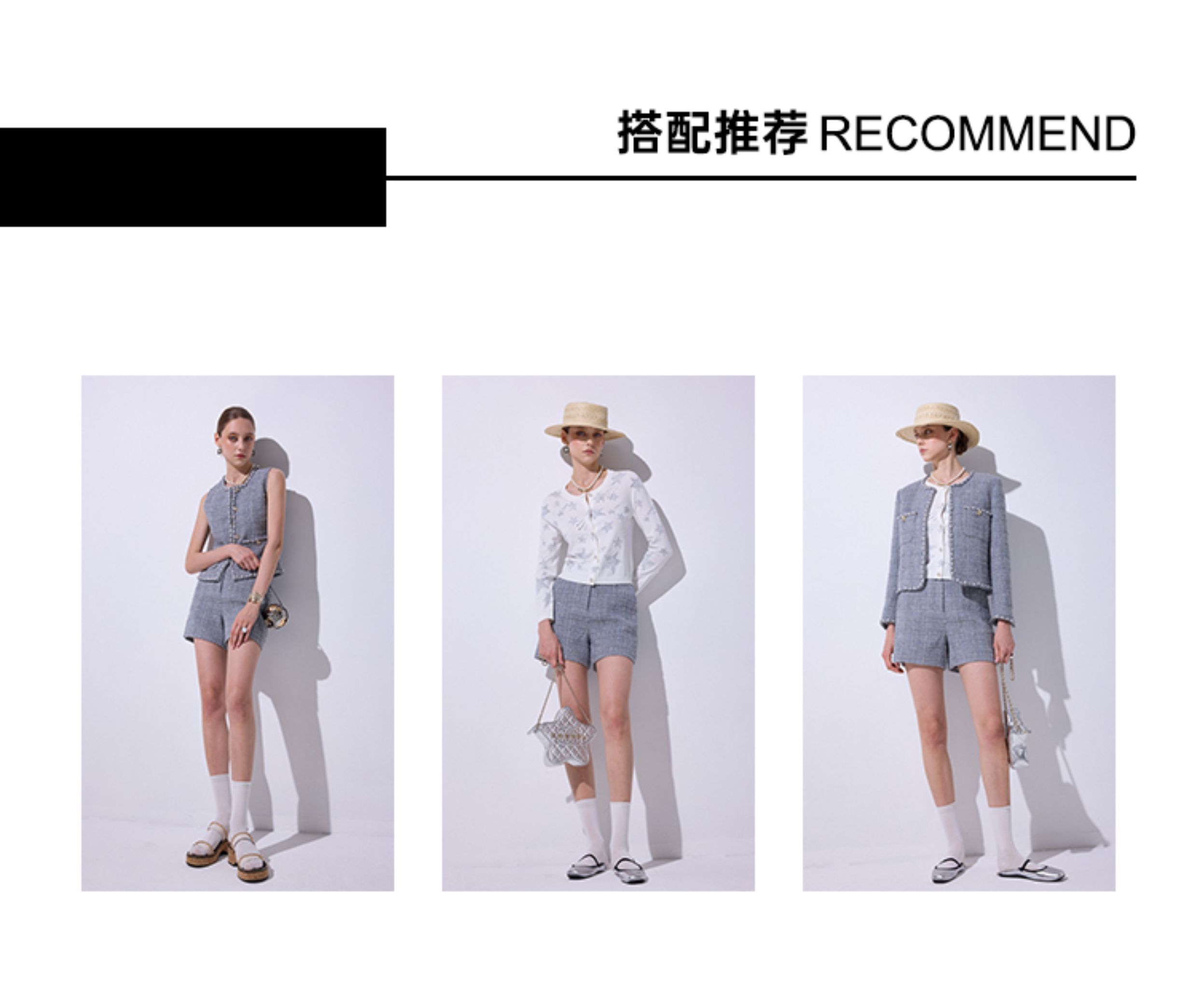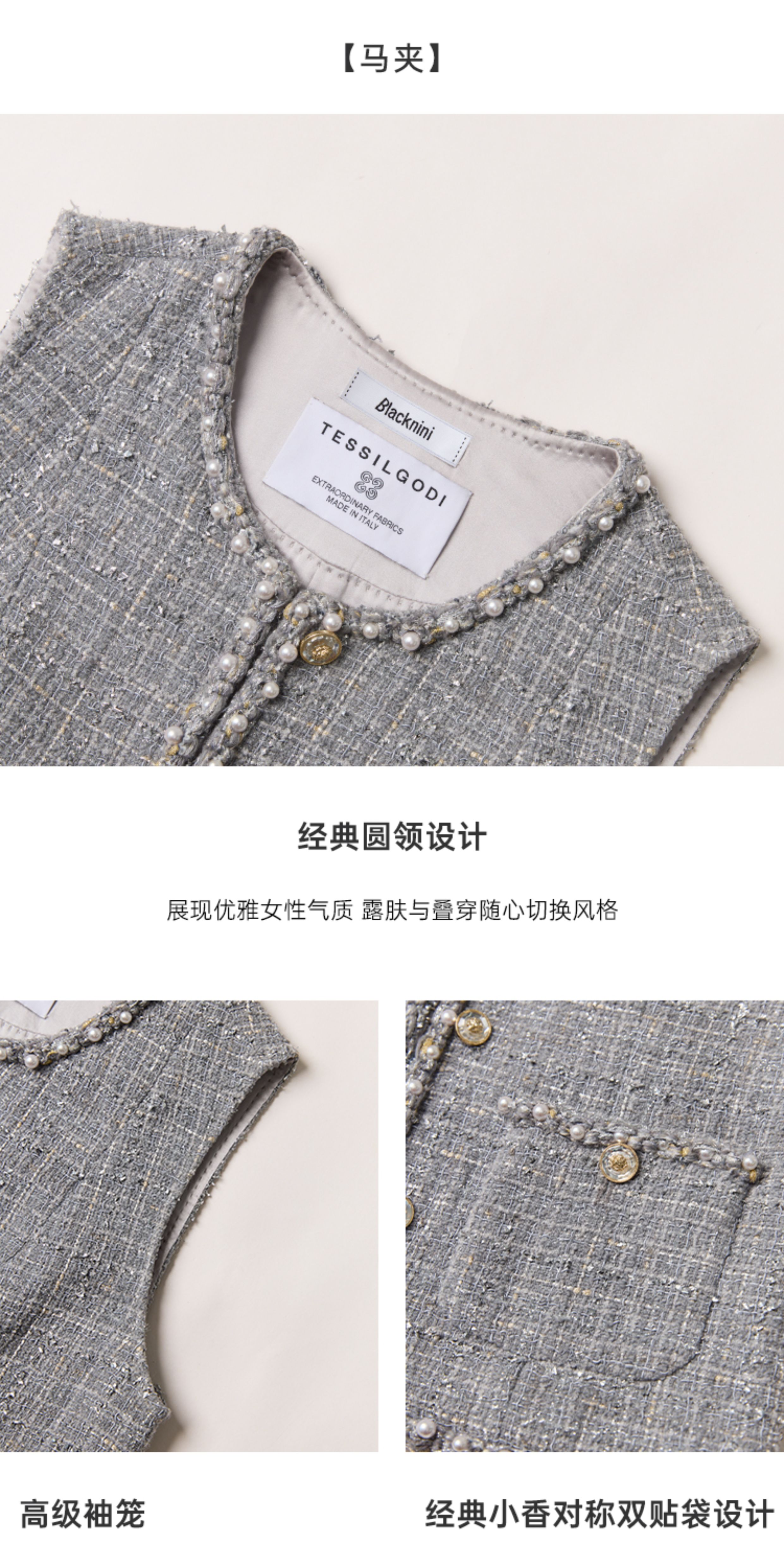 Blacknini "Gray Pearl" Italian Tessigodi Tweed Chanel-Style Jacket/Vest/Shorts
