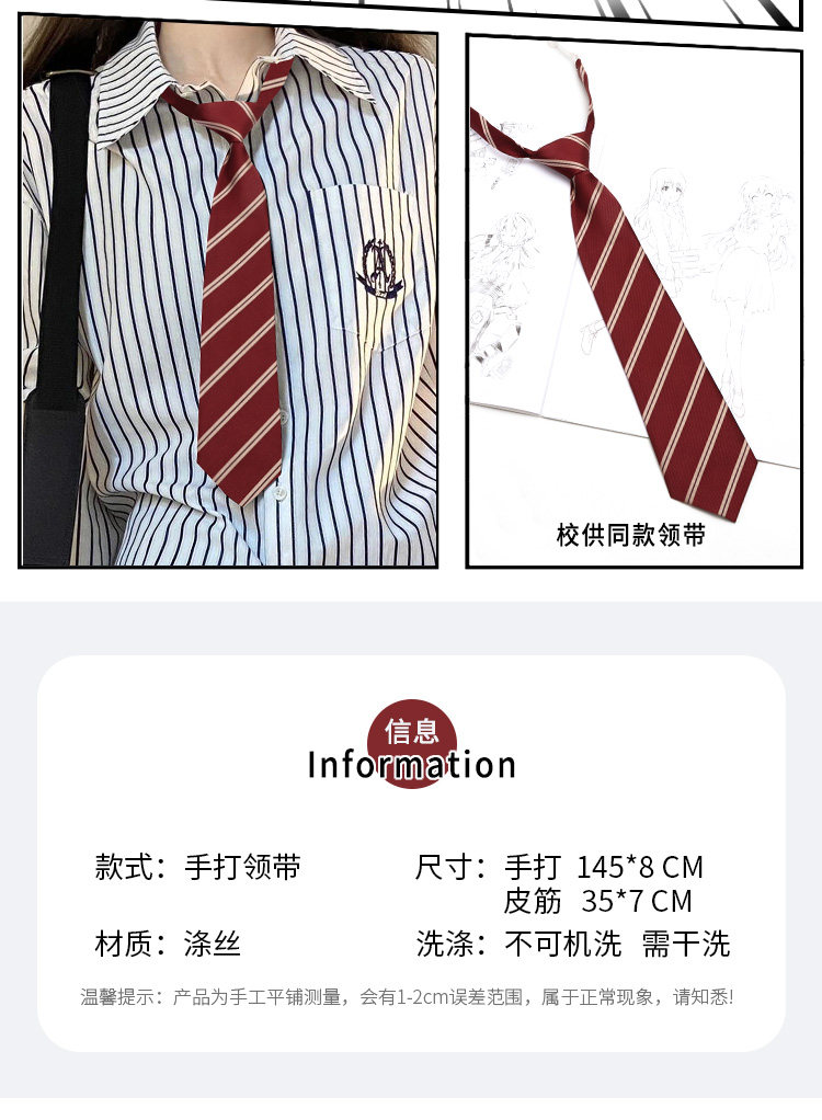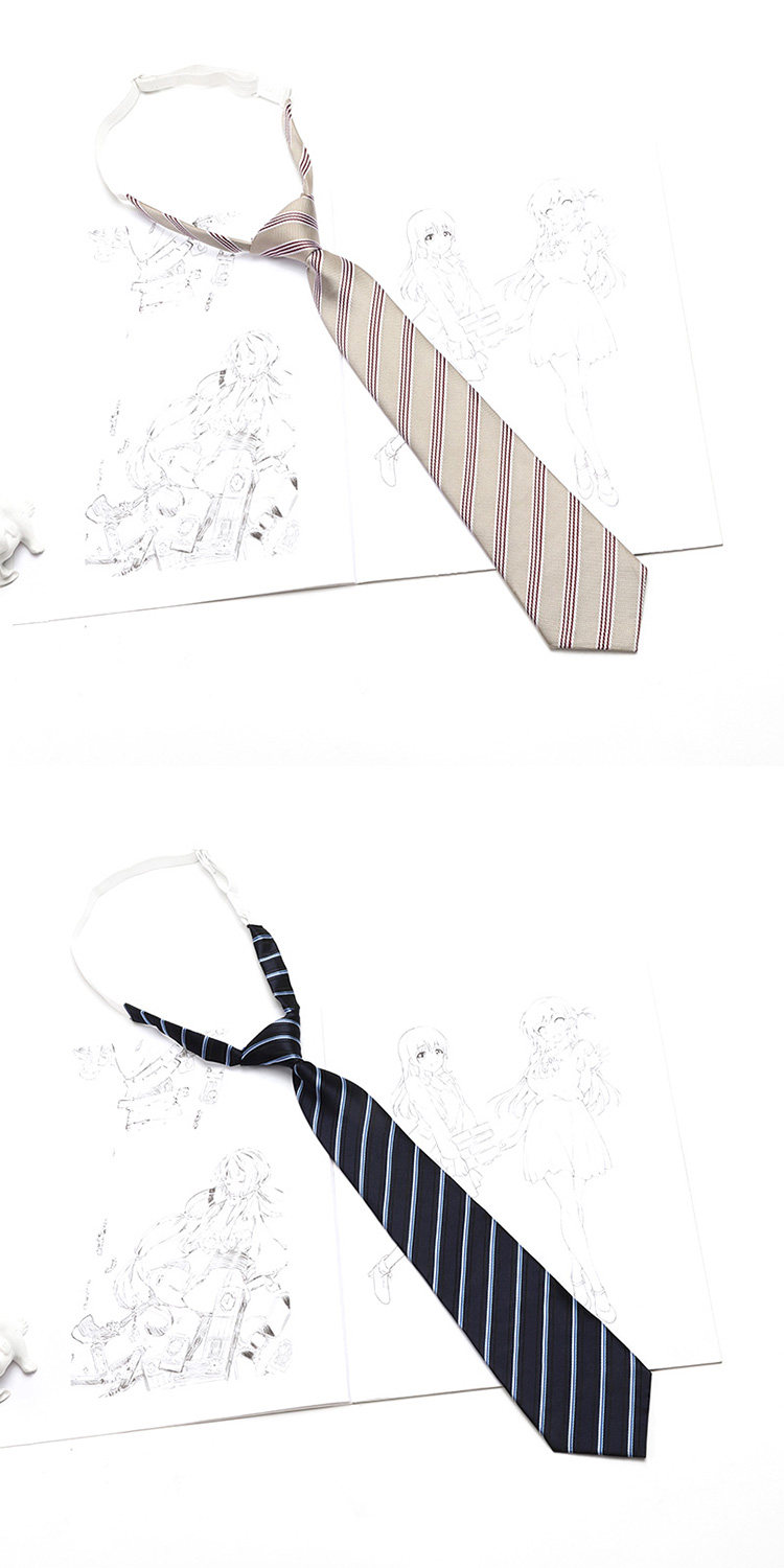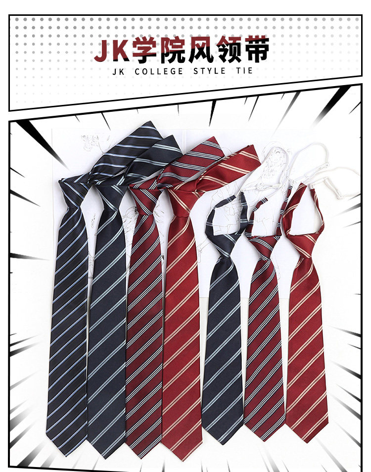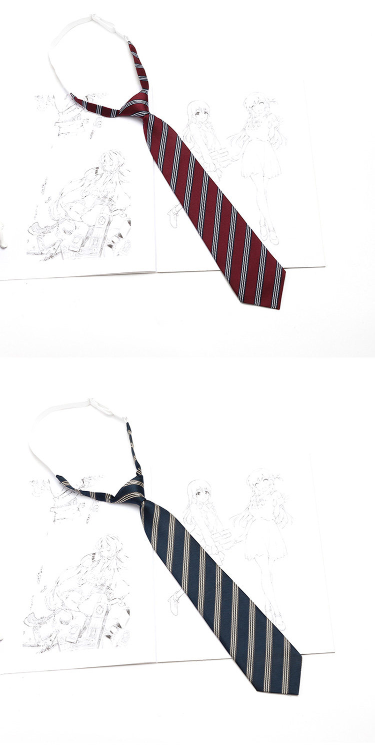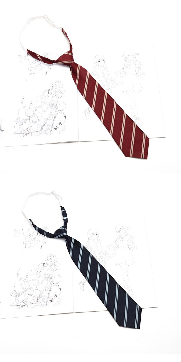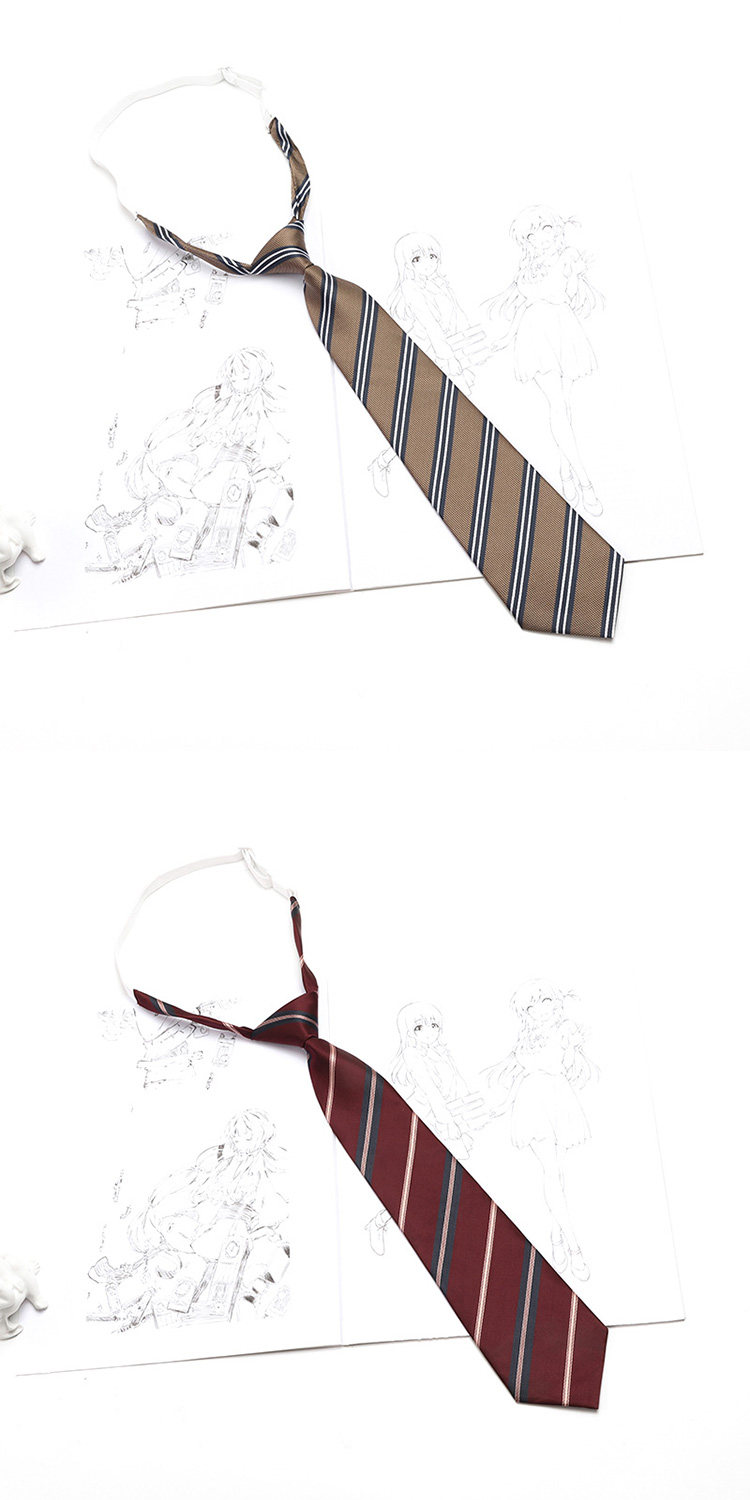 Red Striped Lazy Tie, No Need to Tie, Brown Coffee Color, Japanese Jk School Style Tie, Women's School Tie, Blue Hand-Tied Tie