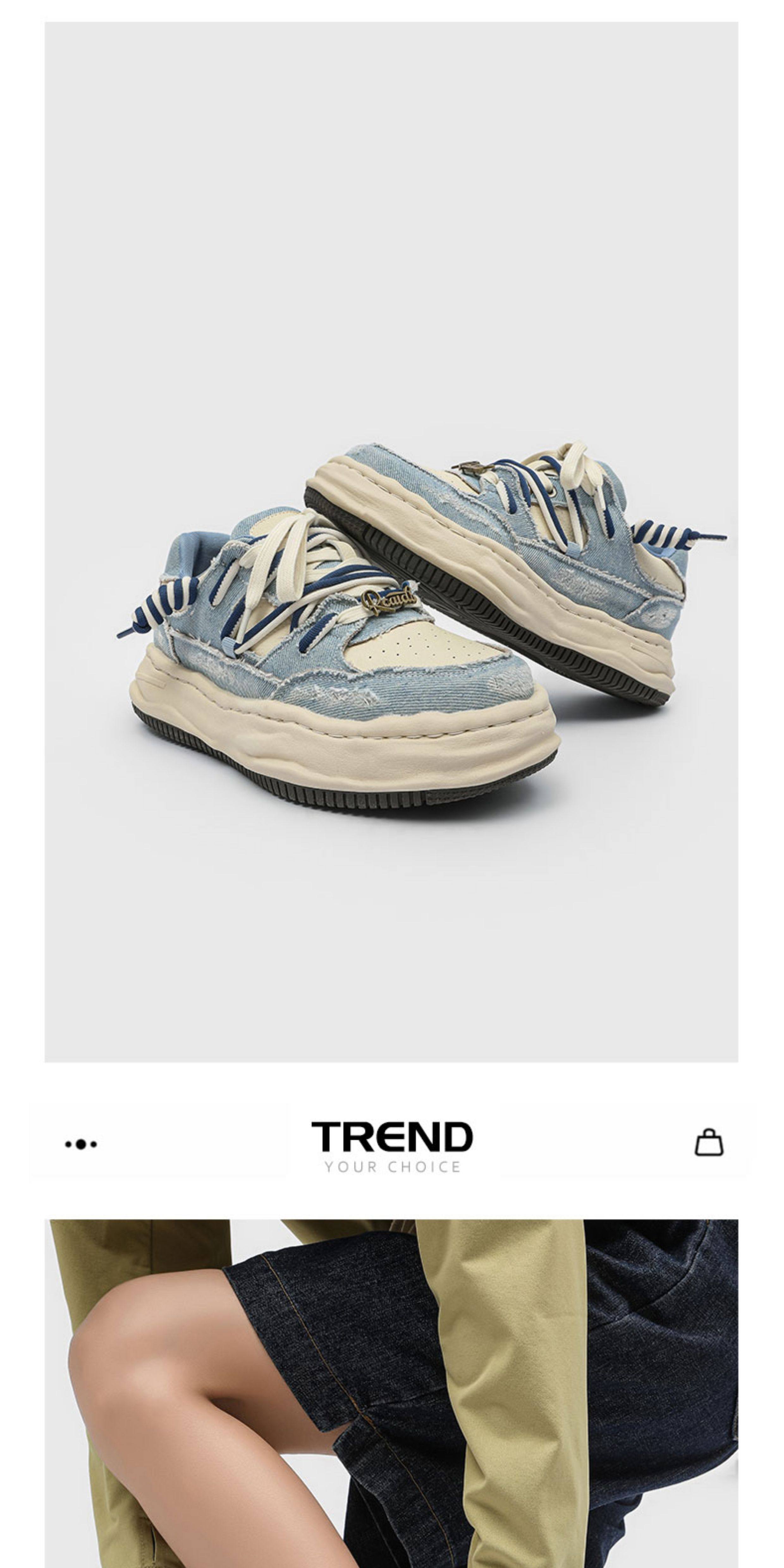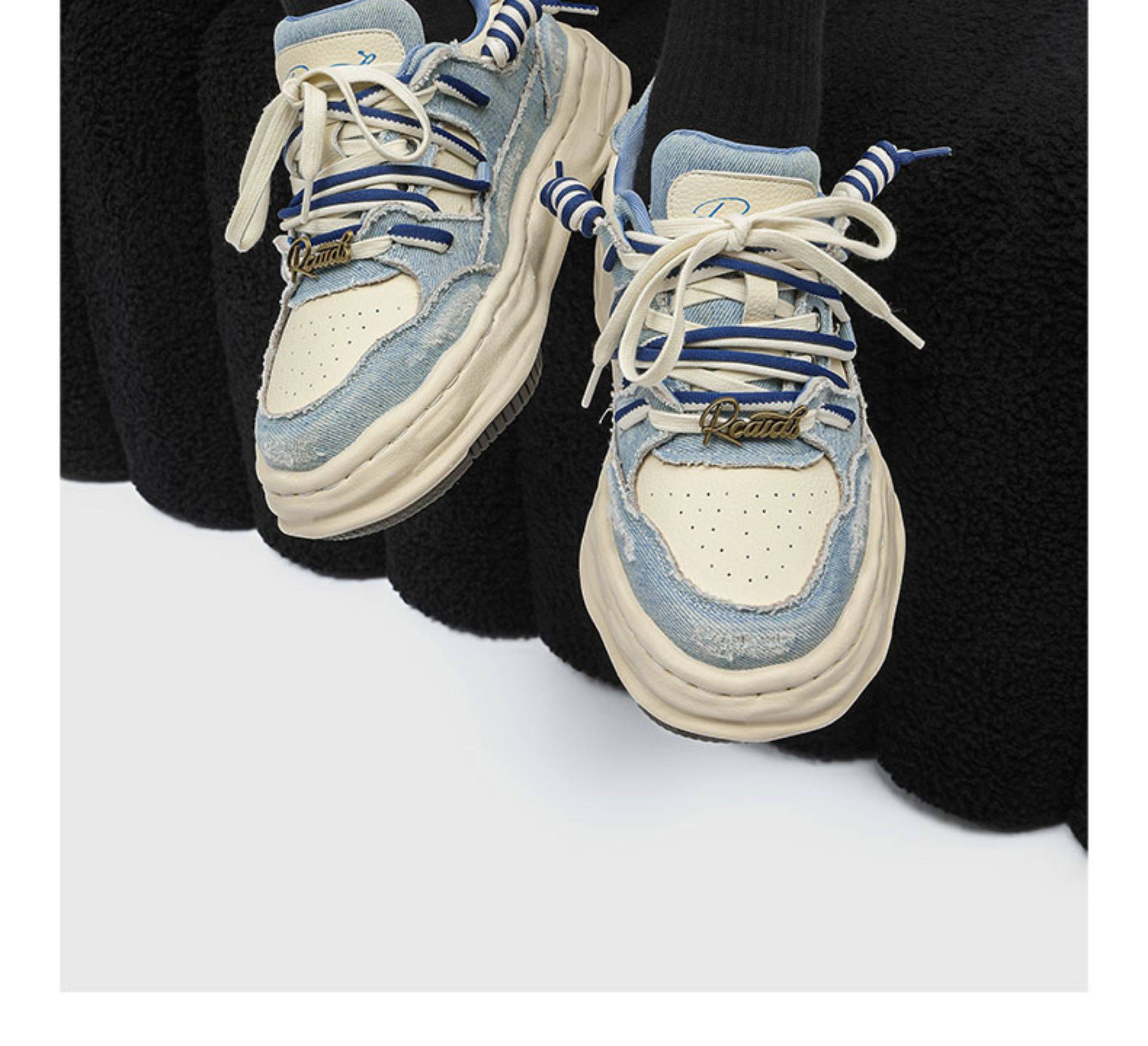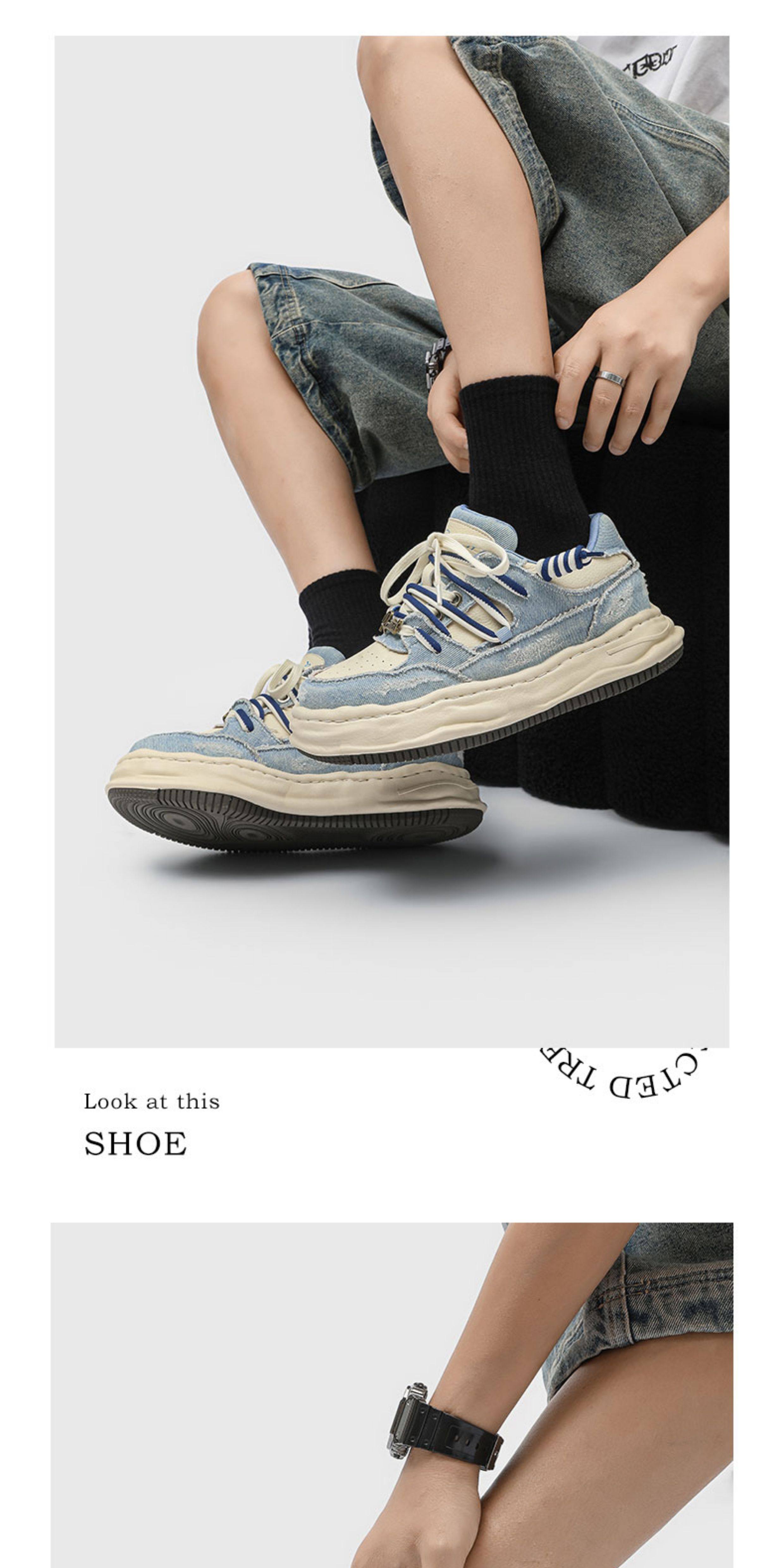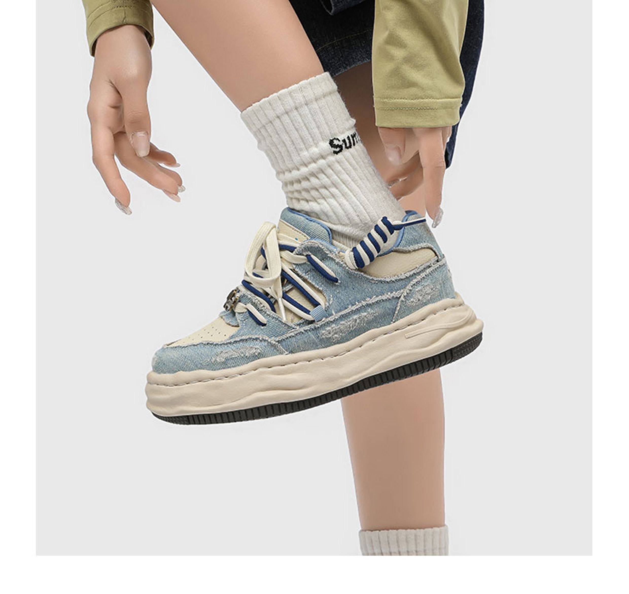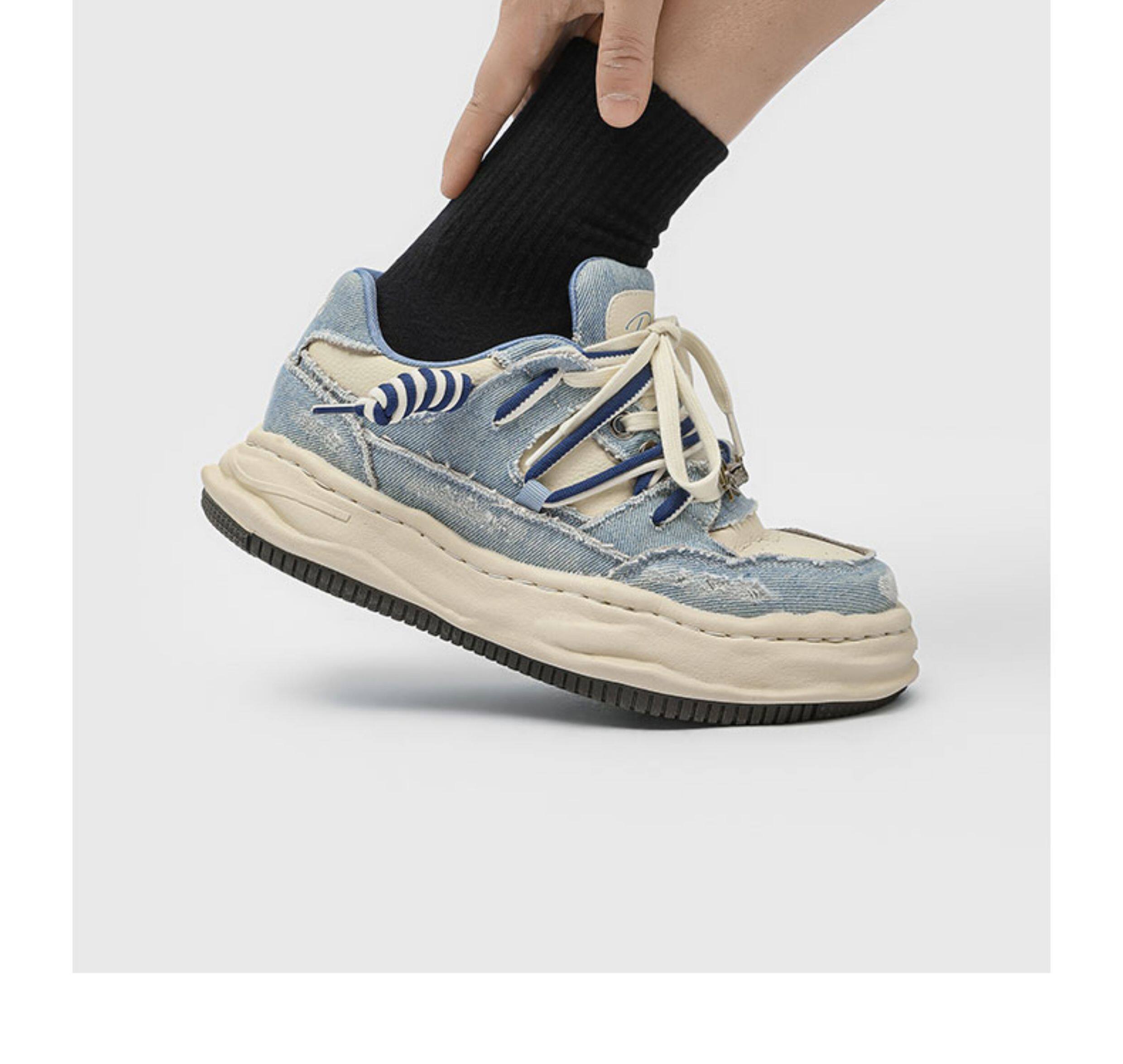 Fgmm Invisible Height Increase 7cm Thick-Soled Dissolving Shoes for Men and Women, Sports and Leisure Sneakers, Blue Washed Canvas Shoes