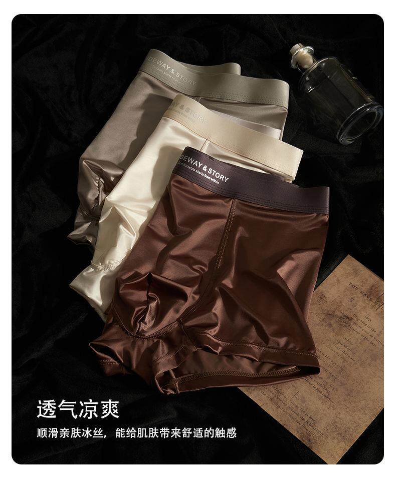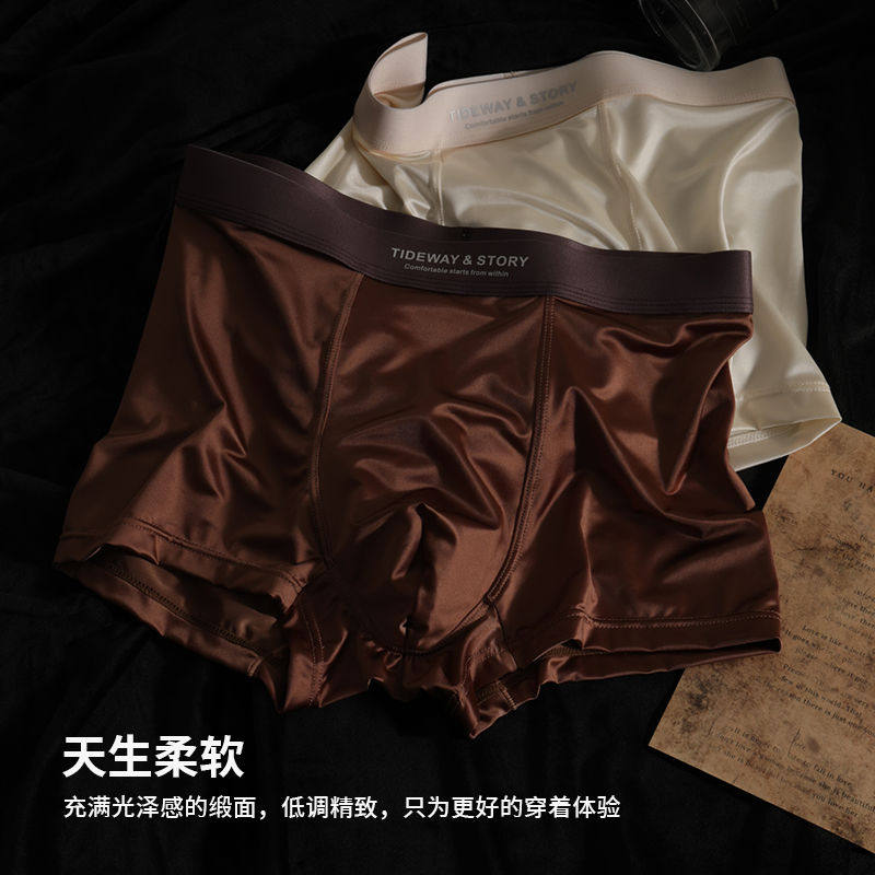 Satin Men's Underwear, Ice Silk Breathable Mulberry Silk, Light Luxury Boxer Briefs, Summer High-End Antibacterial Four-Corner Shorts for Men