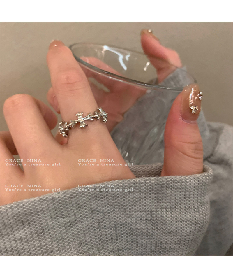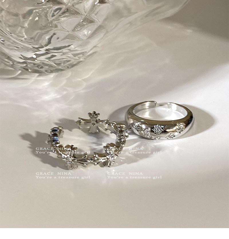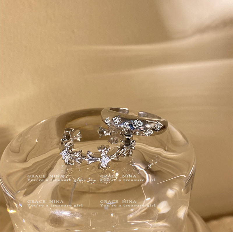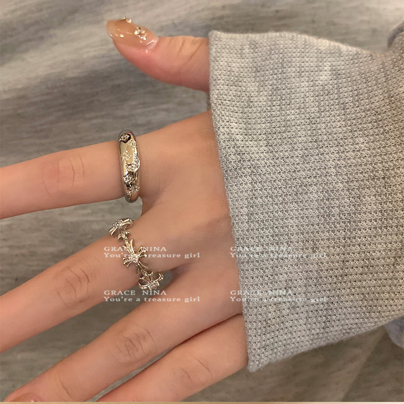 Minimalist Style ~ Silver Zircon Cross Ring for Women, Niche Design ins Light Luxury Index Finger Ring, Unique Couple Rings
