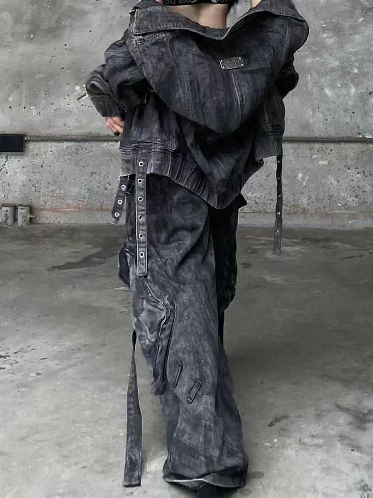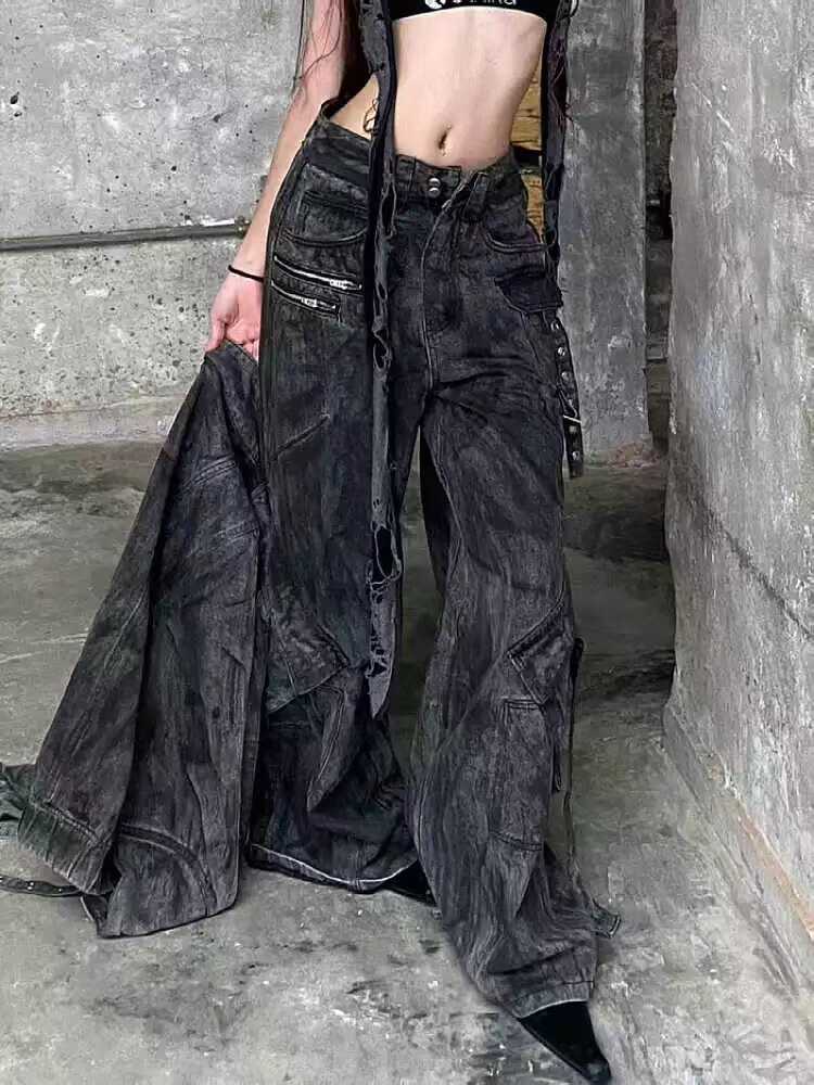 American-Style Trendy Brand Zipper Multi-Pocket Design Heavy-Duty Loose Straight-Leg Slightly Flared Workwear Heavy-Duty Denim Pants for Men