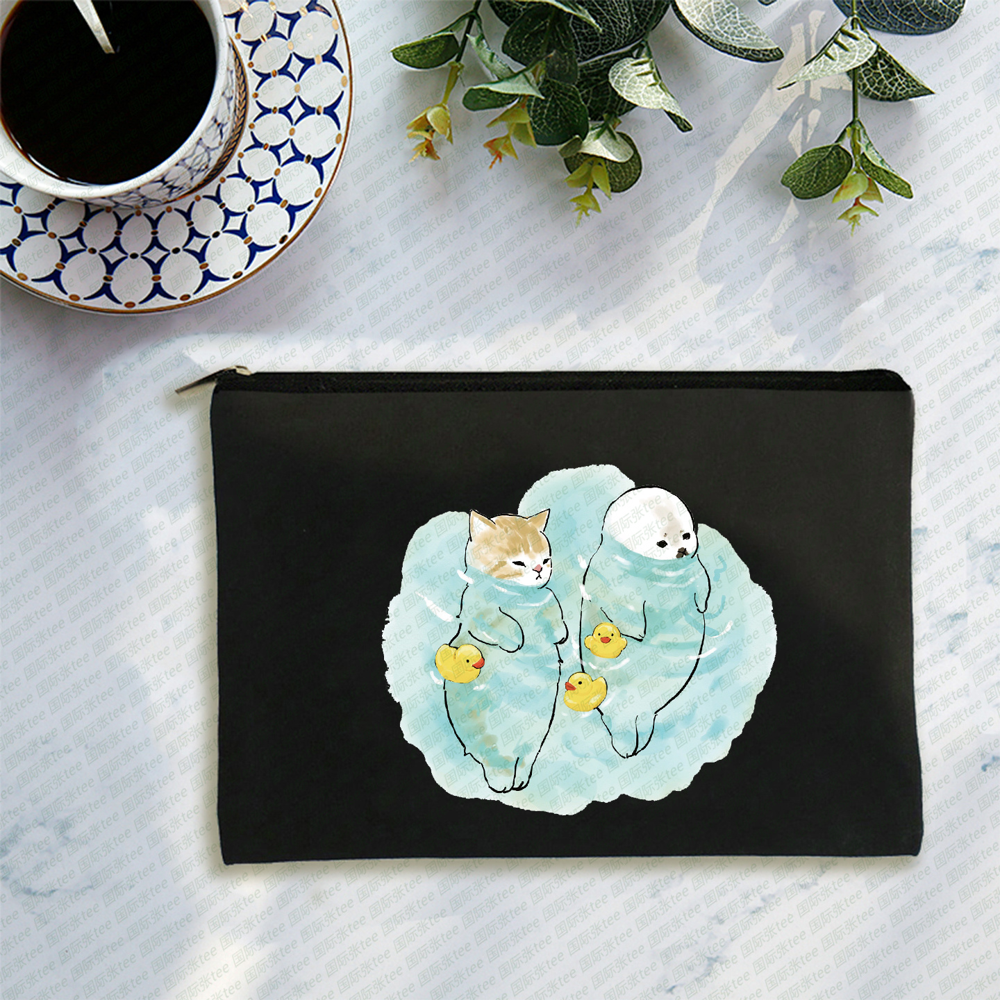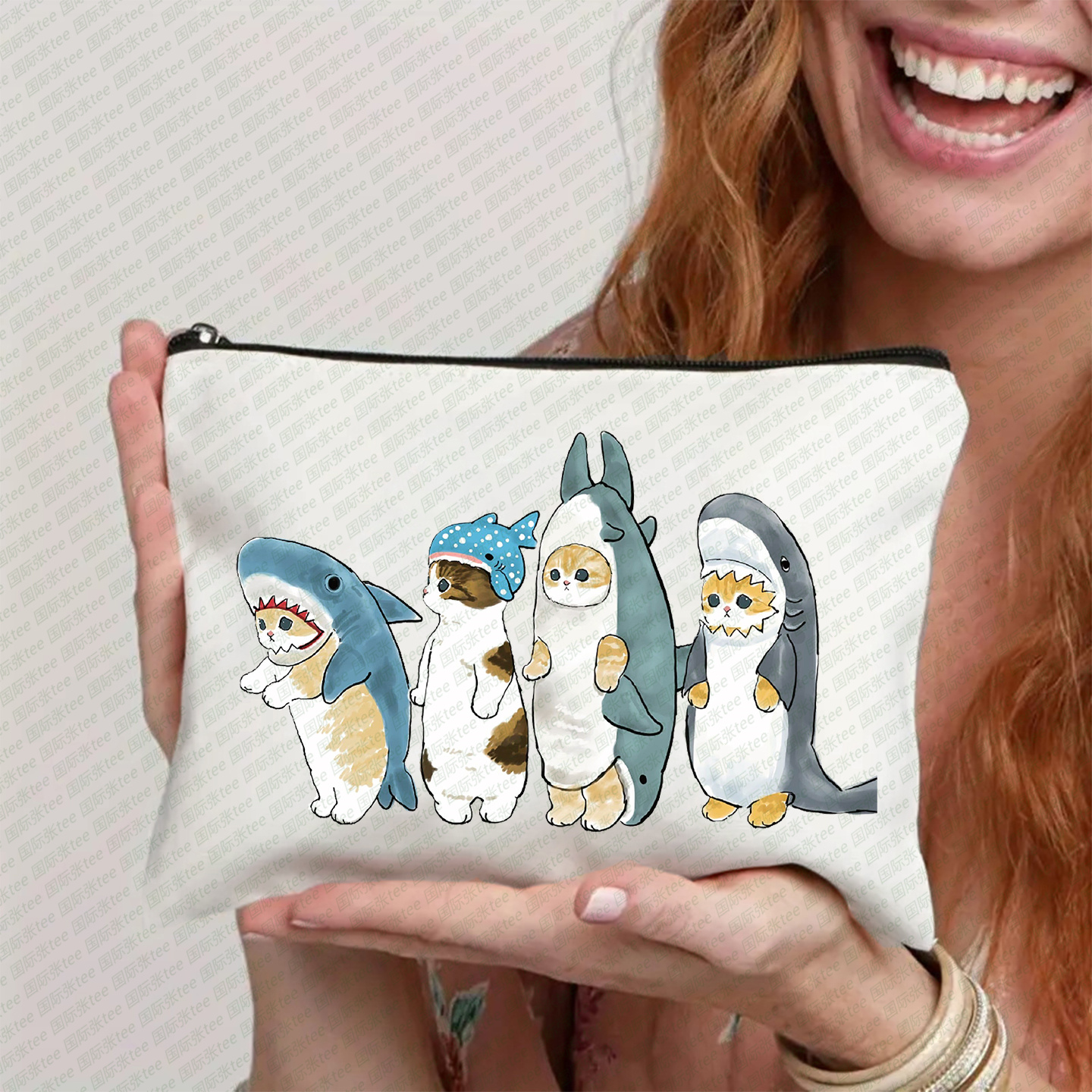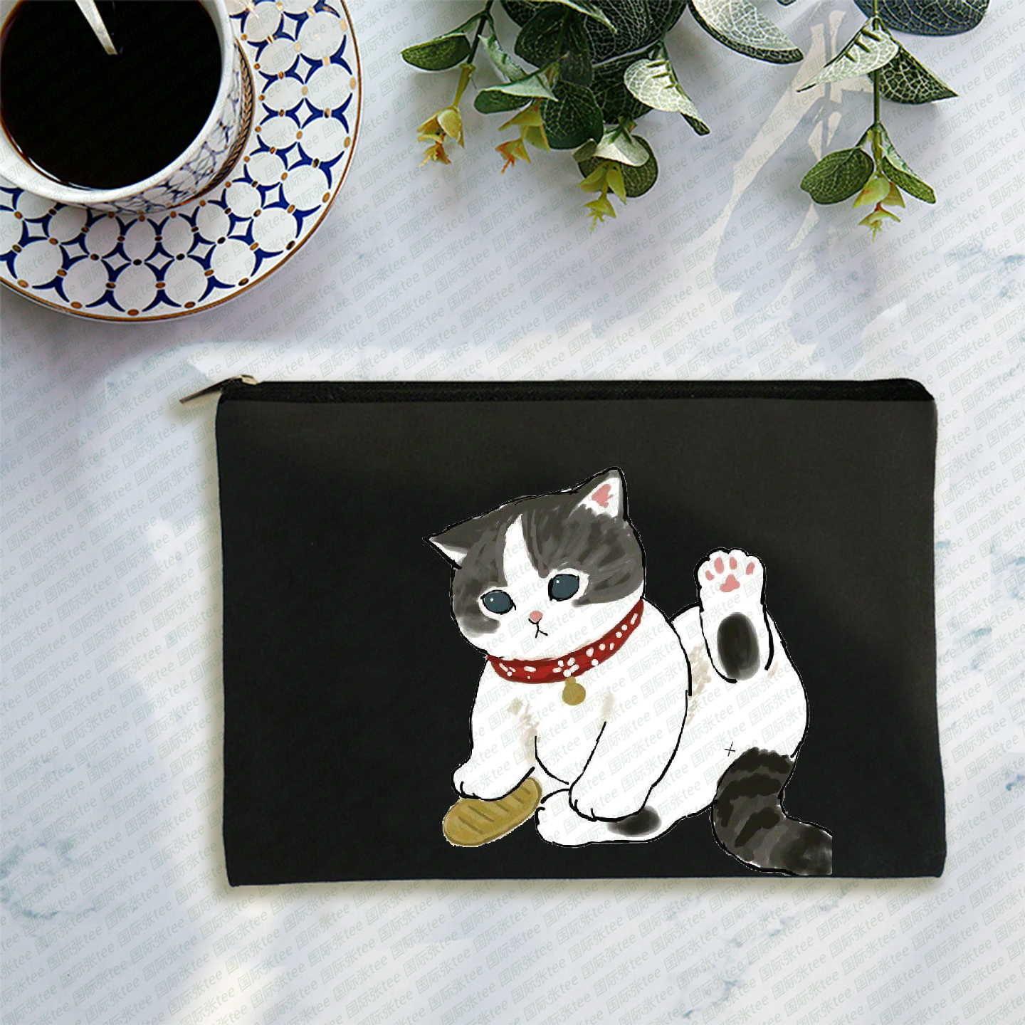 Kawaii Cat Japanese-Style Cute Cat Print Makeup Bag Harajuku Clutch Bag Student Fashion Stationery Pencil Case