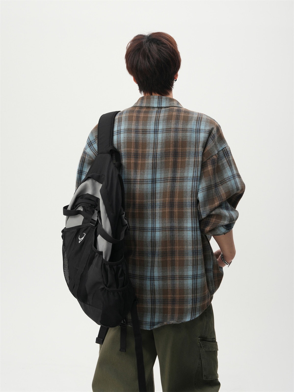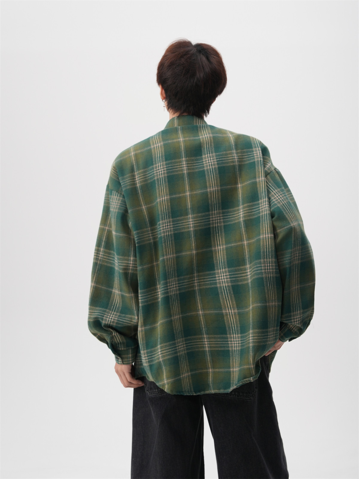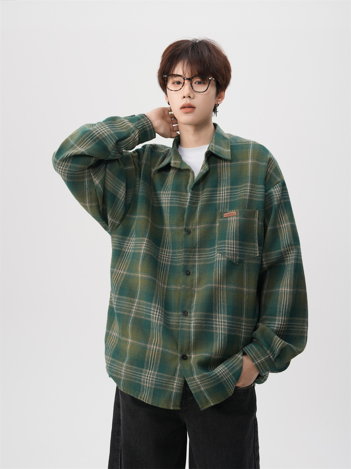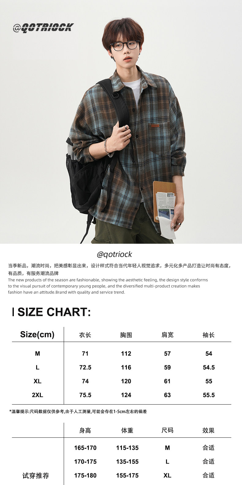 American Retro Color-Block Plaid Shirt for Men, Autumn Trendy Brand Cleanfit, Casual Loose-Fitting Versatile Jacket