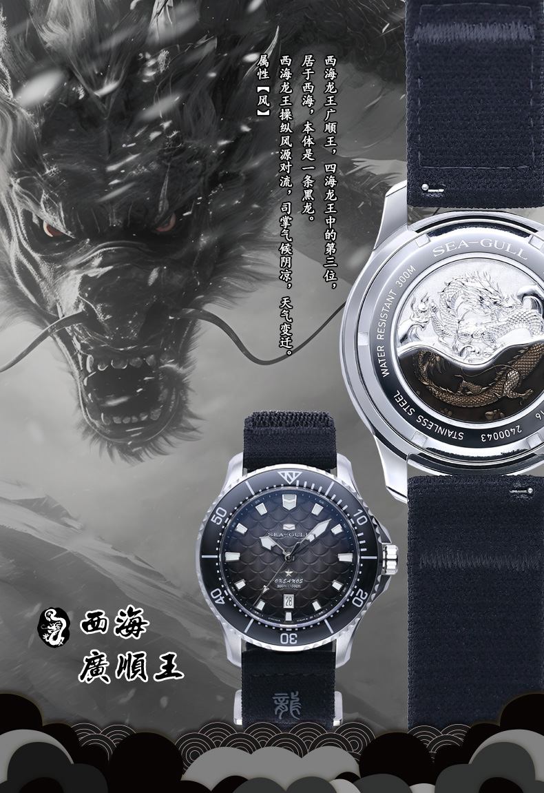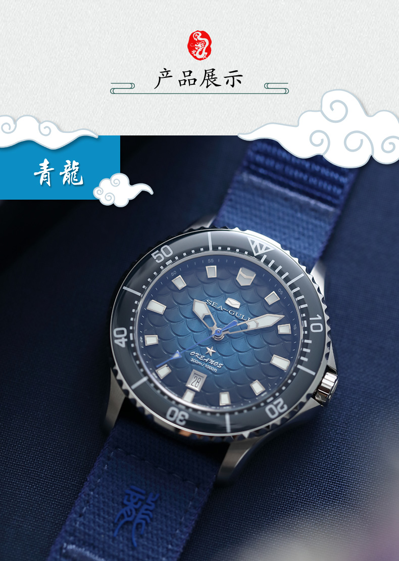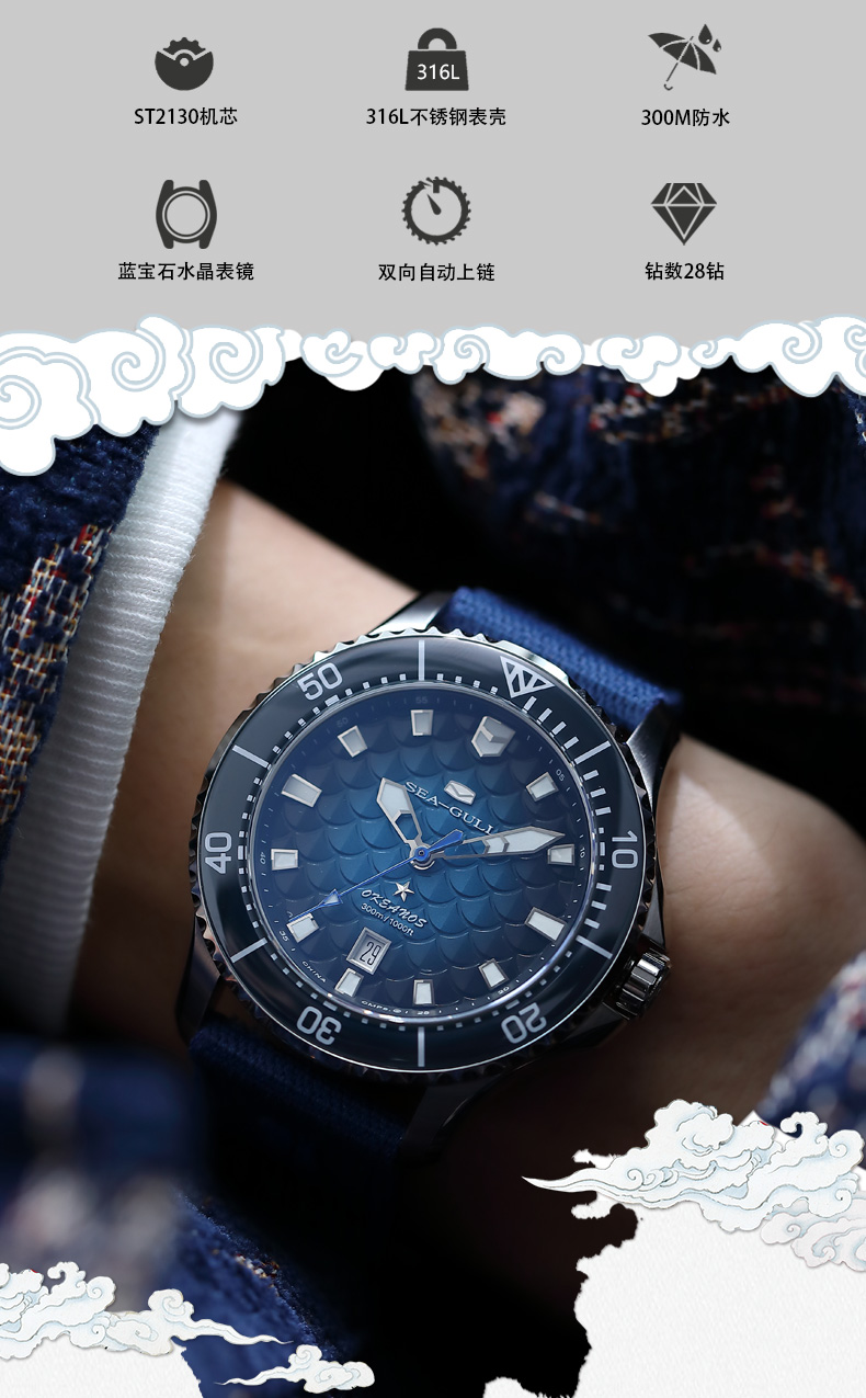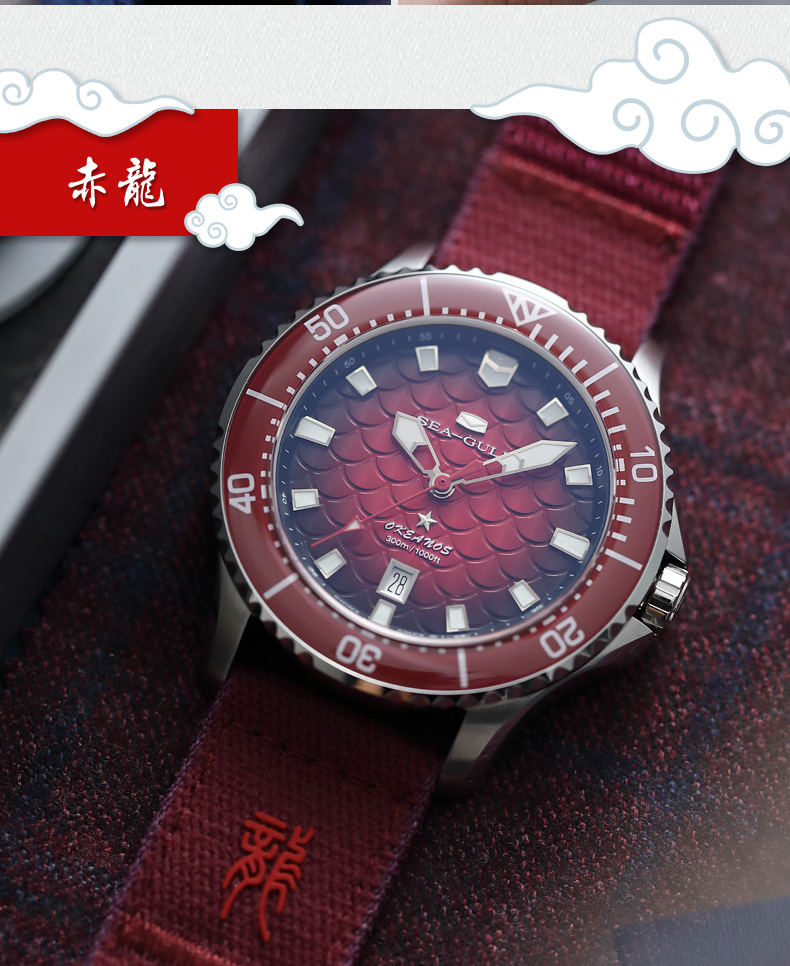 Seagull Watch Ocean Series Pro Four Sea Dragon King Series 300m Waterproof Diving Men's Watch Dragon Scale Dial 1216