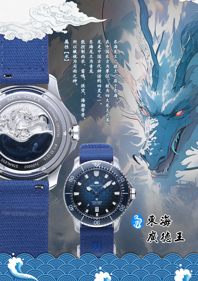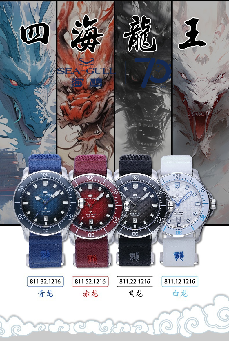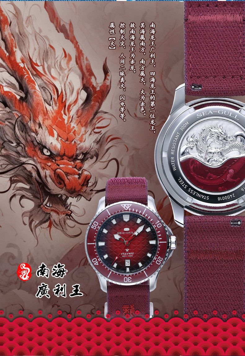 Seagull Watch Ocean Series Pro Four Sea Dragon King Series 300m Waterproof Diving Men's Watch Dragon Scale Dial 1216