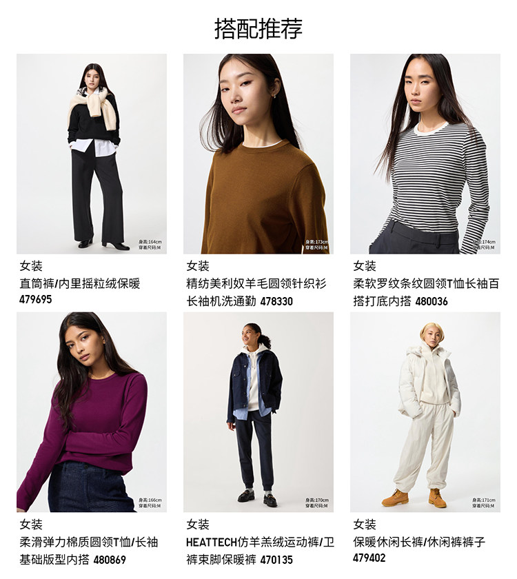 Uniqlo Women's Straight-Leg Pants/Fleece-Lined Extended Length 25 Autumn/Winter New Model 481406