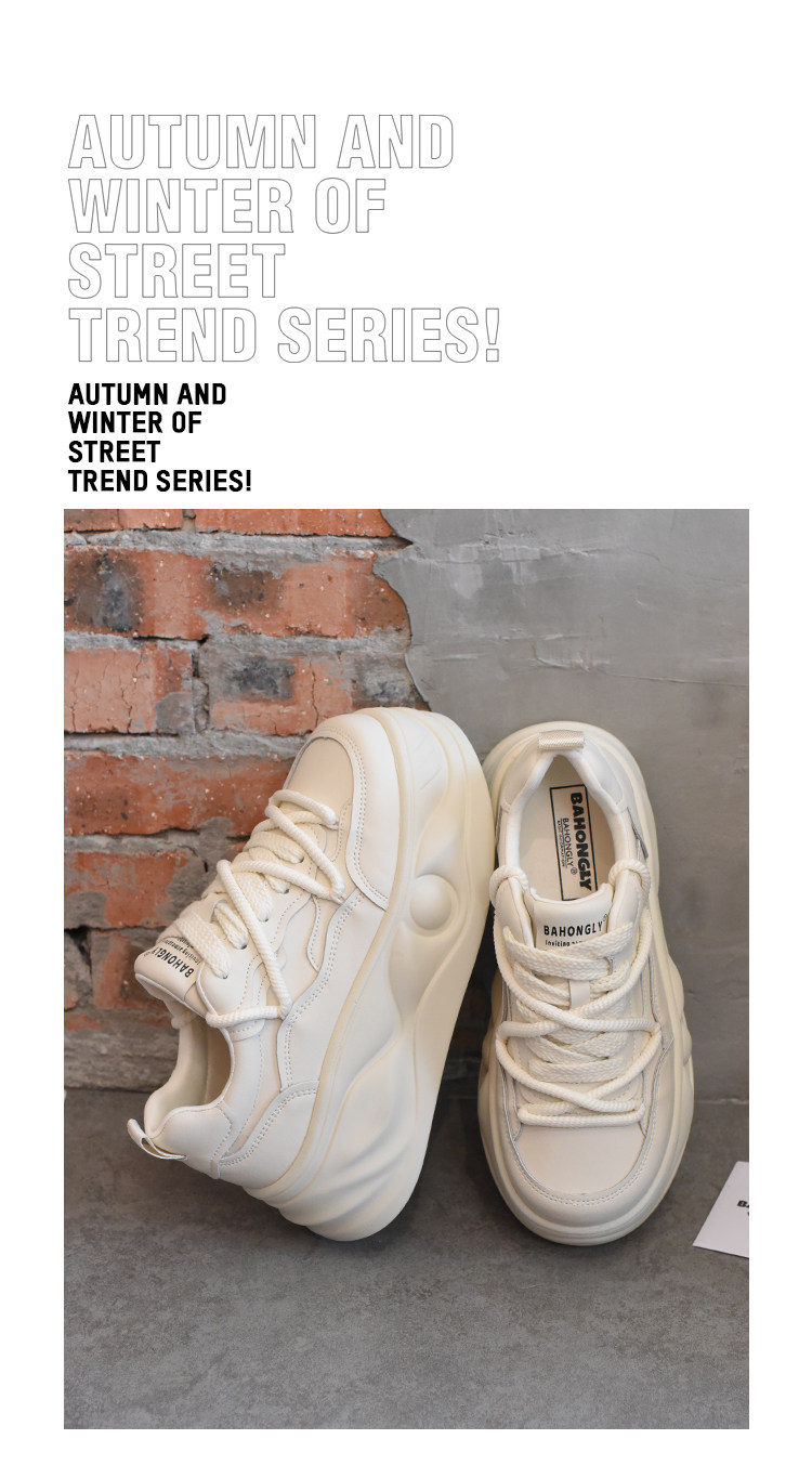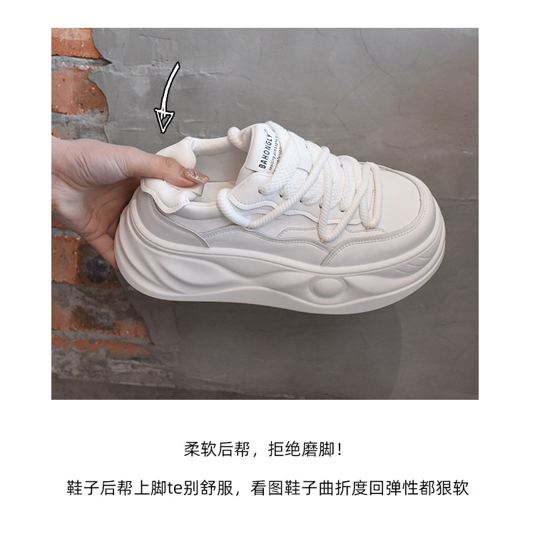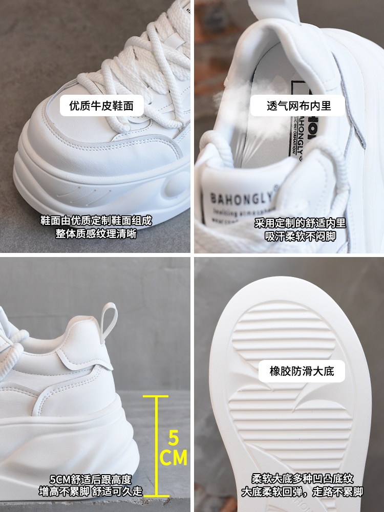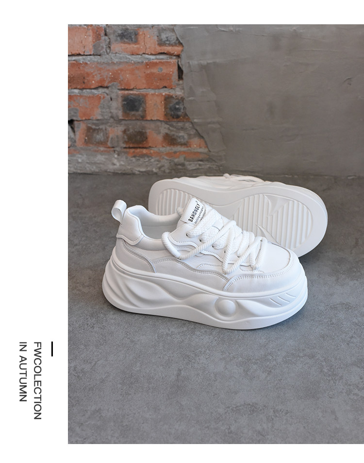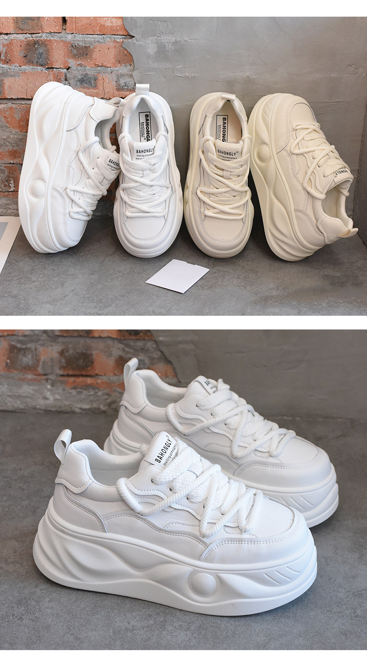 Hong Kong Genuine Leather Loafers Sneakers for Women 2025 Spring and Autumn Versatile Platform Thick-Soled Panda White Shoes Sports Casual Shoes