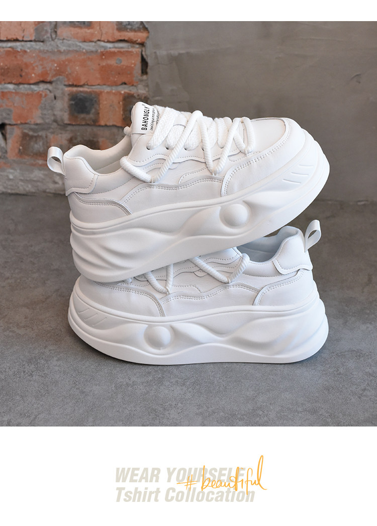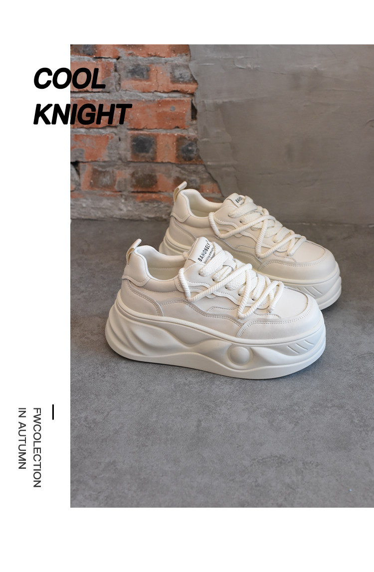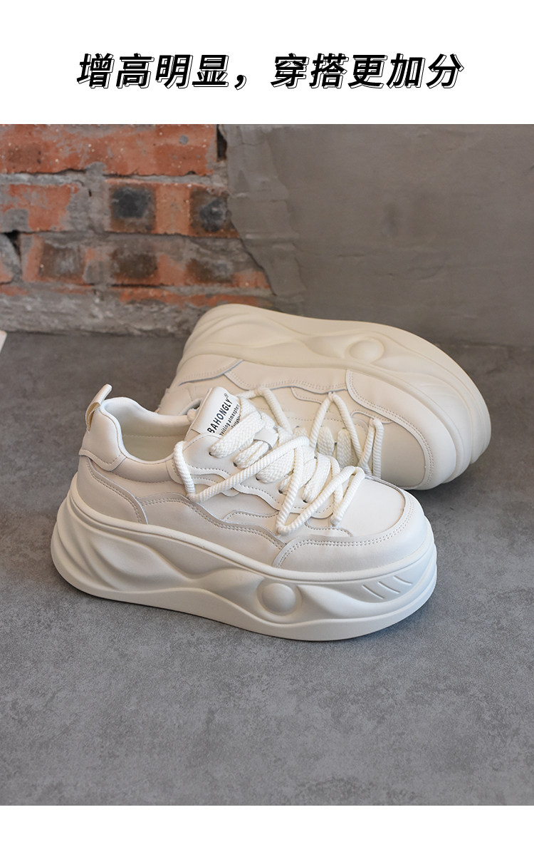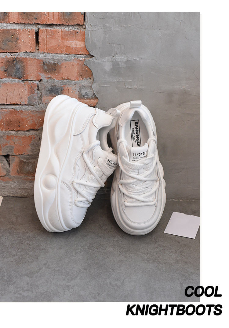 Hong Kong Genuine Leather Loafers Sneakers for Women 2025 Spring and Autumn Versatile Platform Thick-Soled Panda White Shoes Sports Casual Shoes