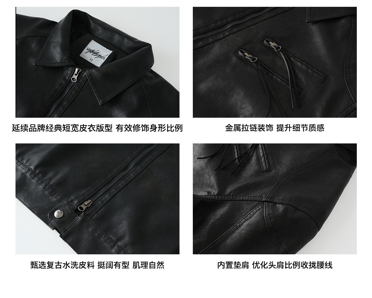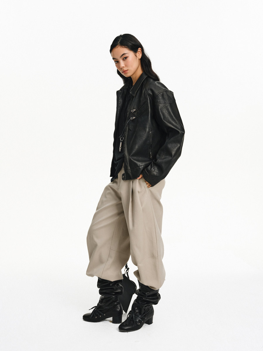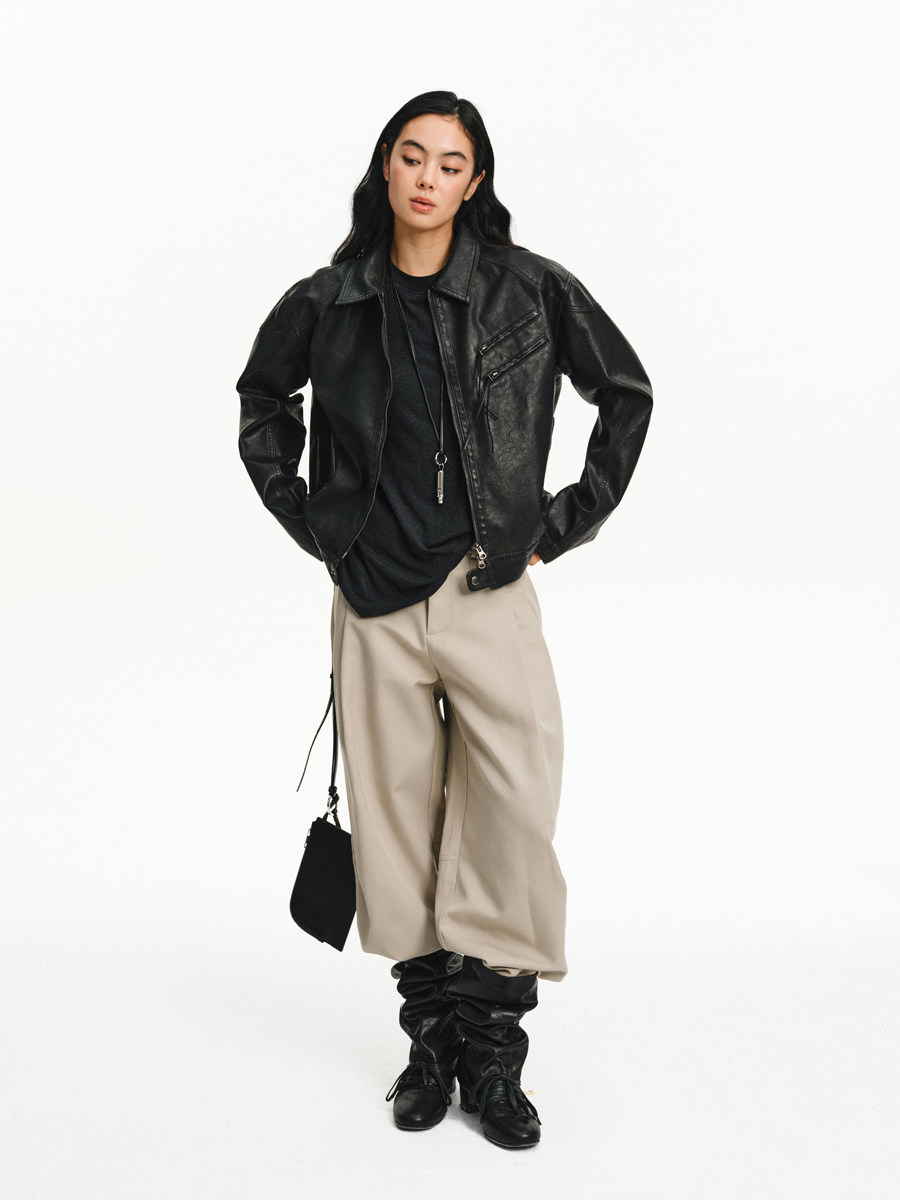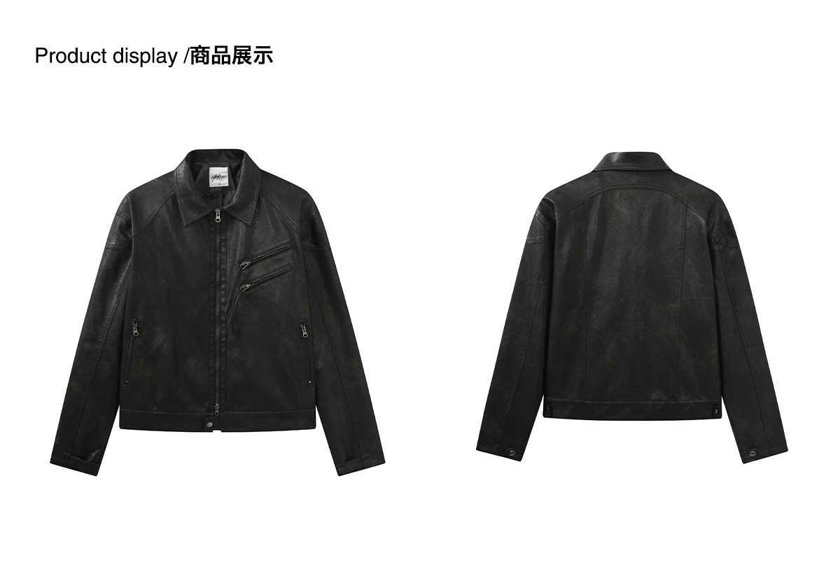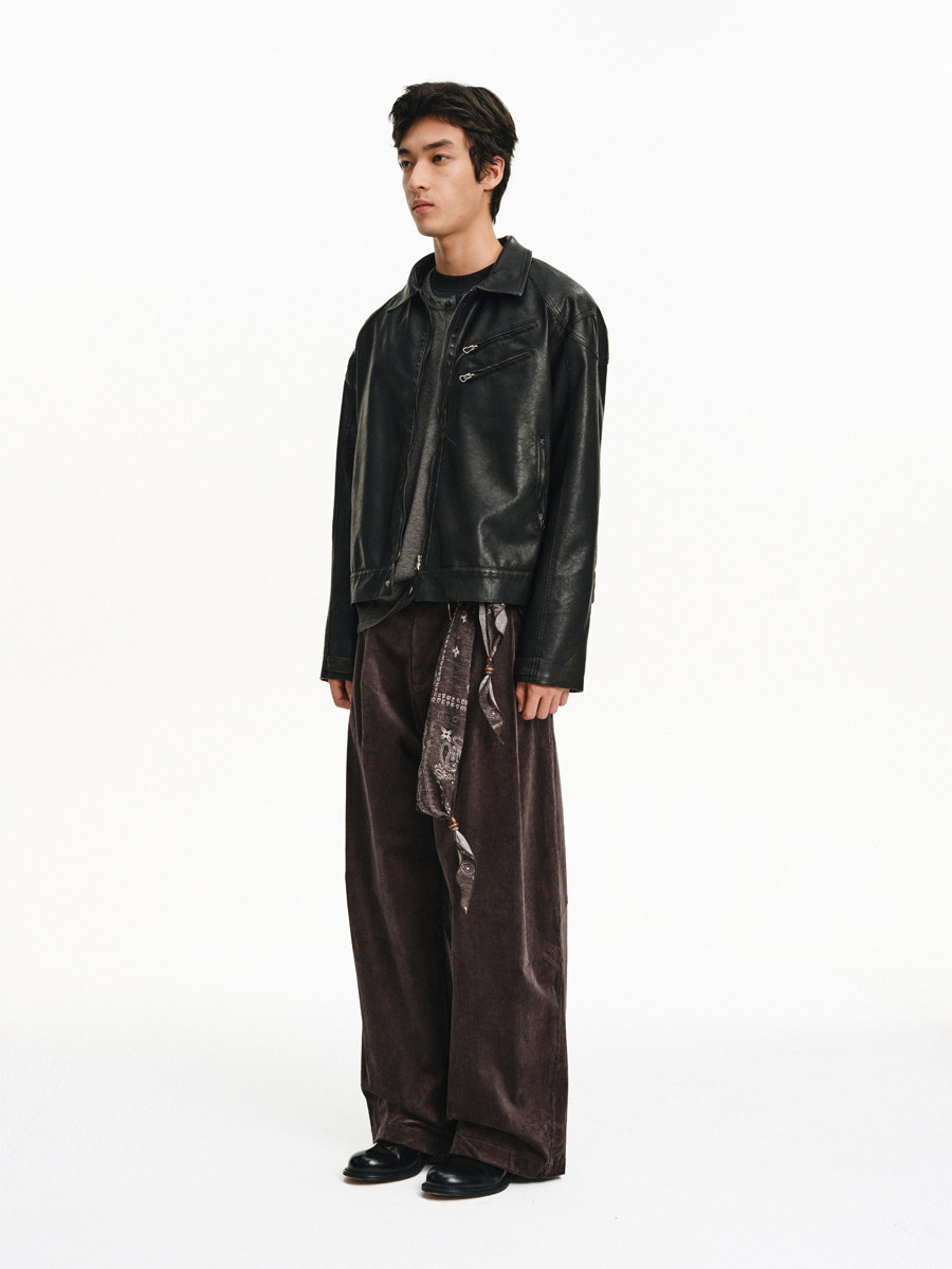 Limpidoculus Multi-Pocket Washed Leather Silhouette Jacket, Color-Washed Leather Jacket