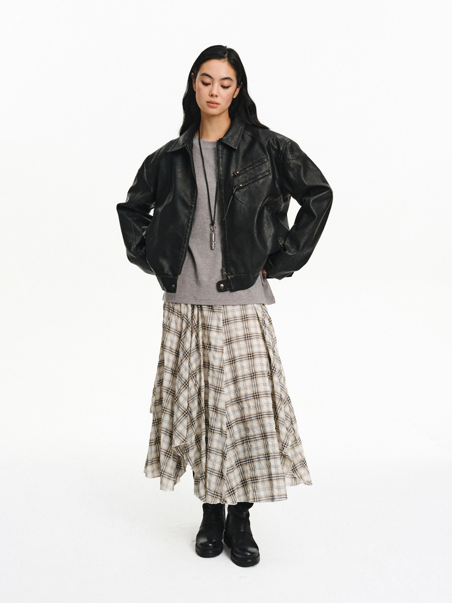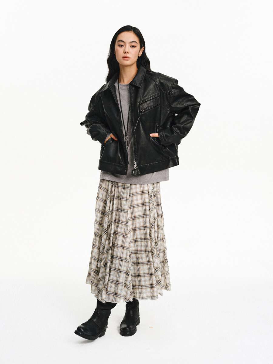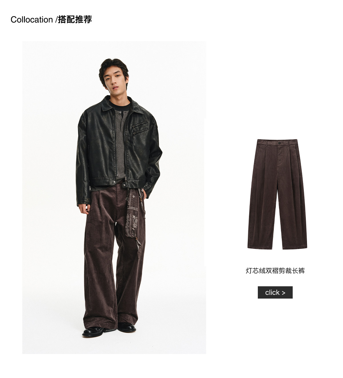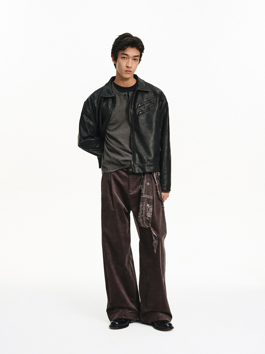 Limpidoculus Multi-Pocket Washed Leather Silhouette Jacket, Color-Washed Leather Jacket