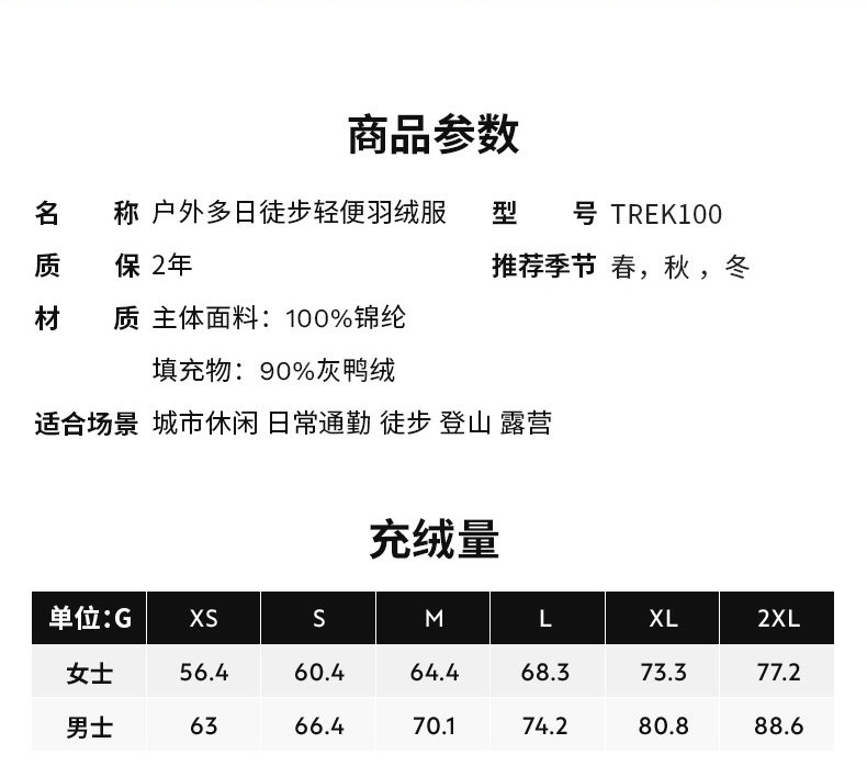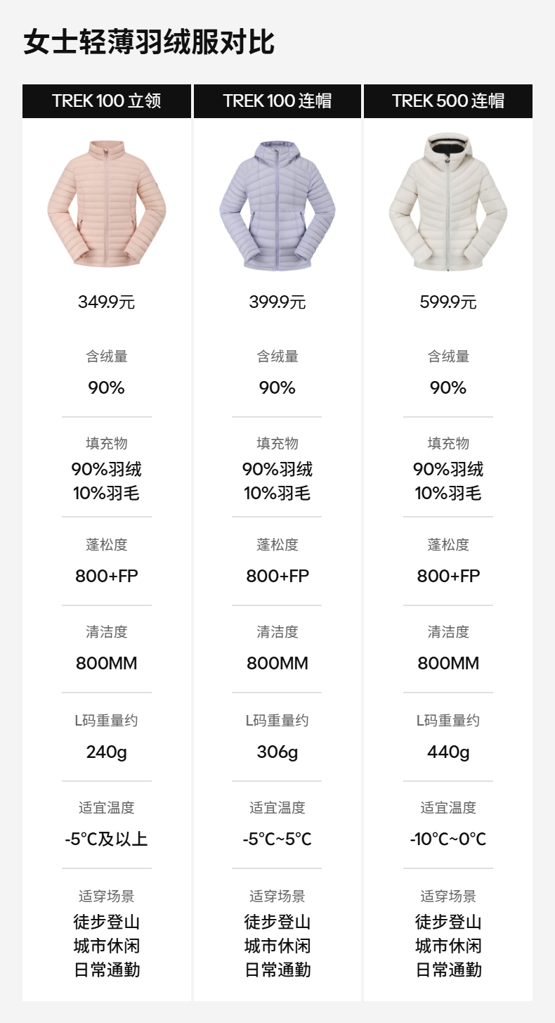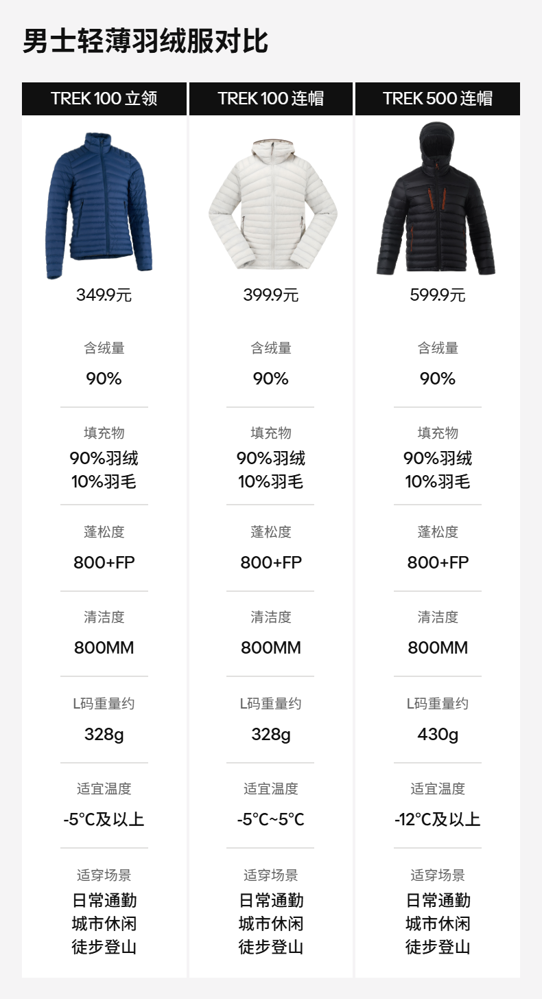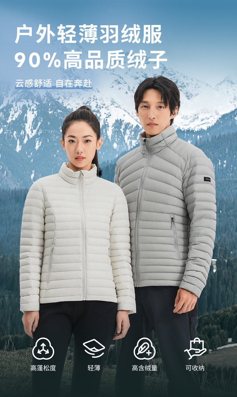 Decathlon down Jacket Trek100 Lightweight Stand-Up Collar Autumn and Winter Unisex Outdoor Sports Inner Layer Ribbed Jacket Odt3