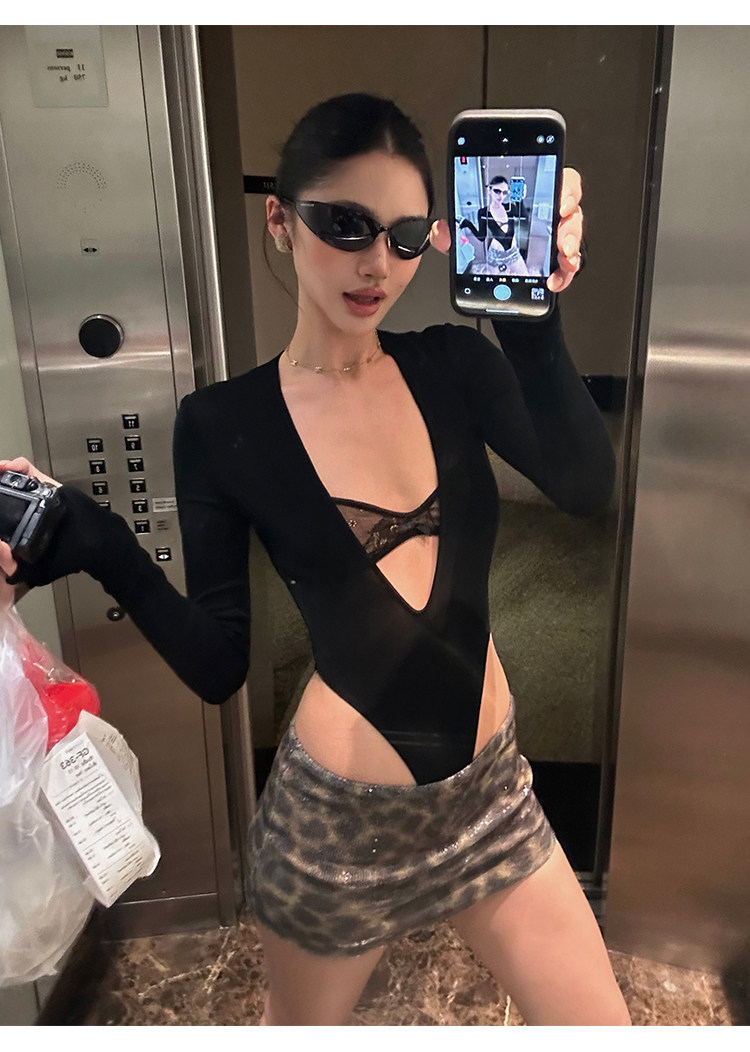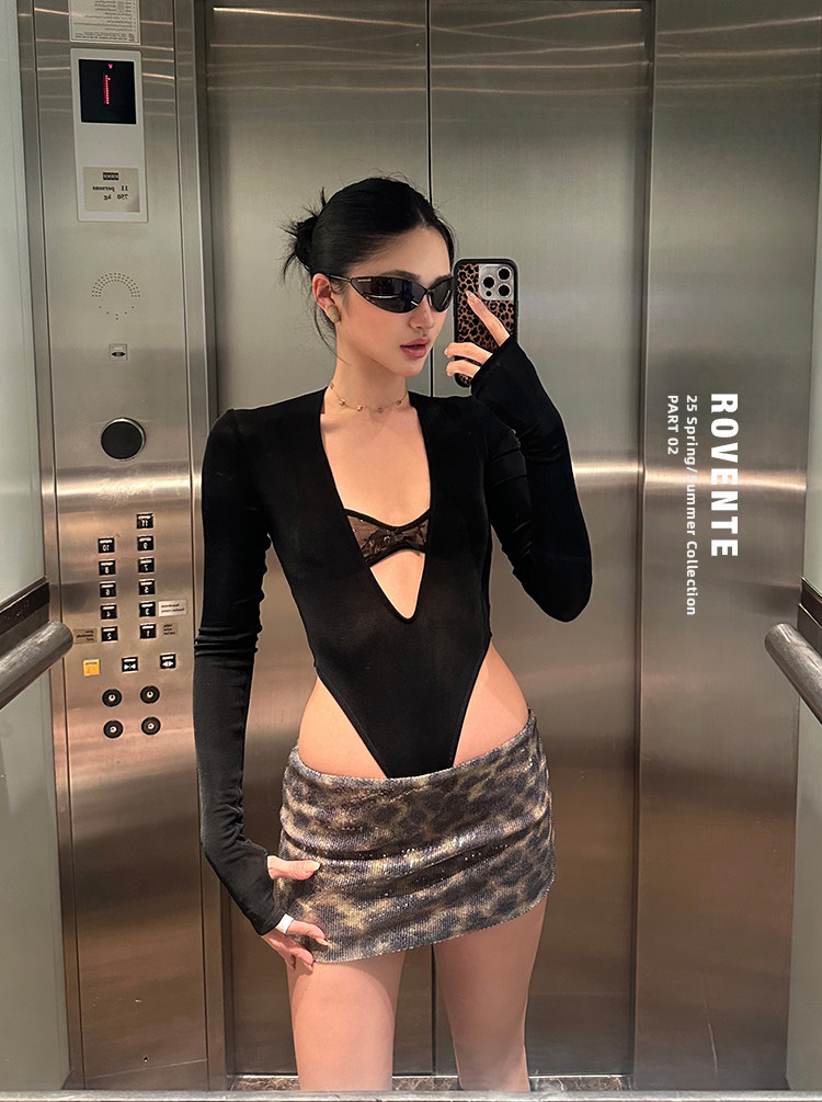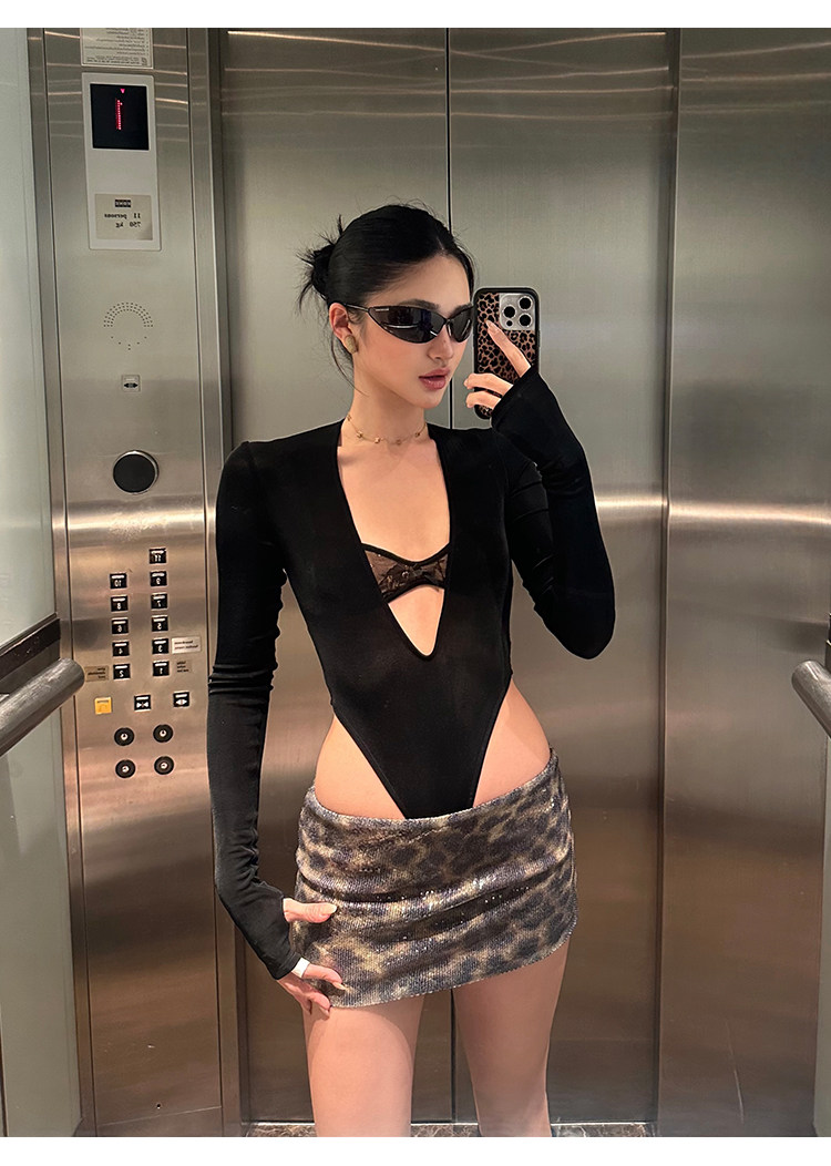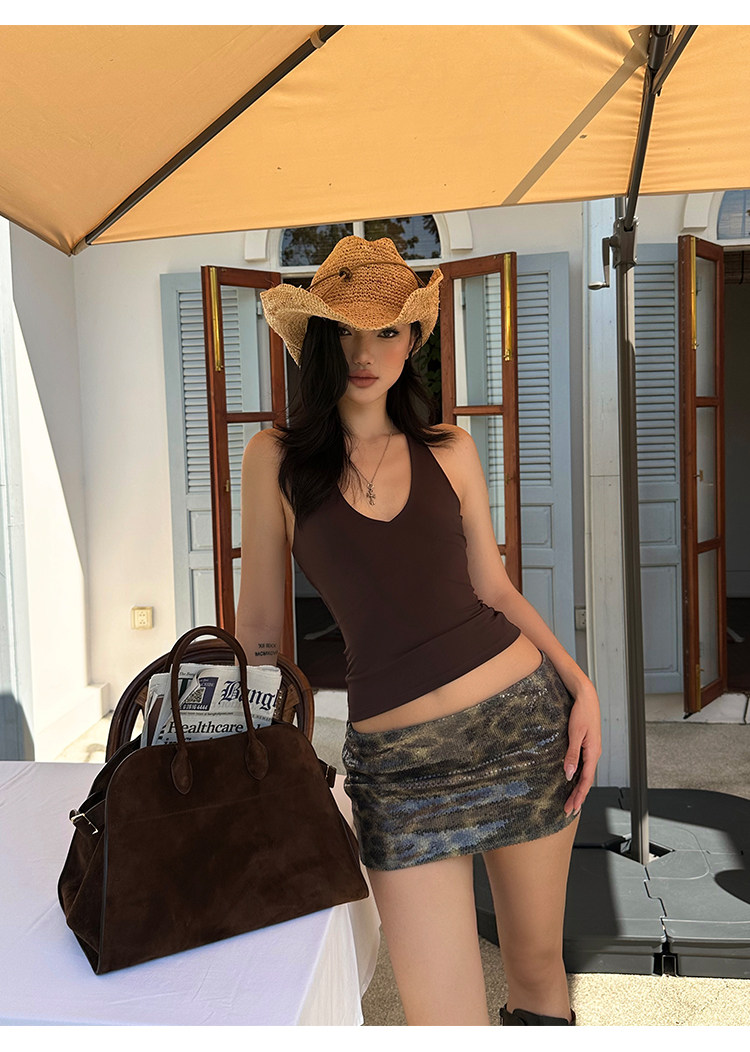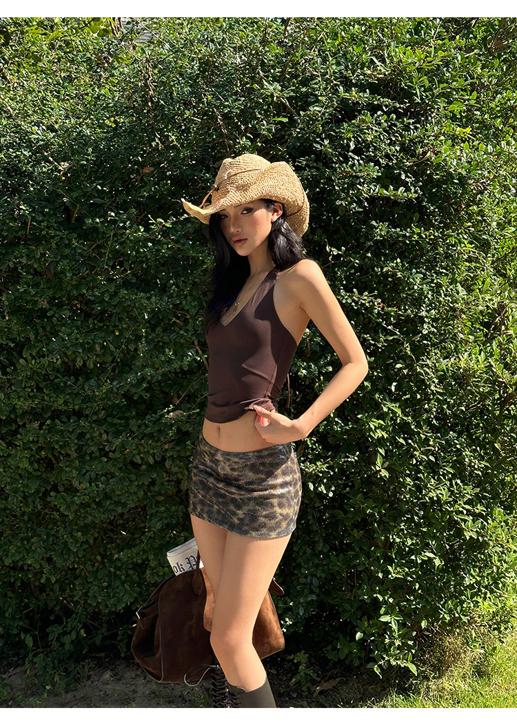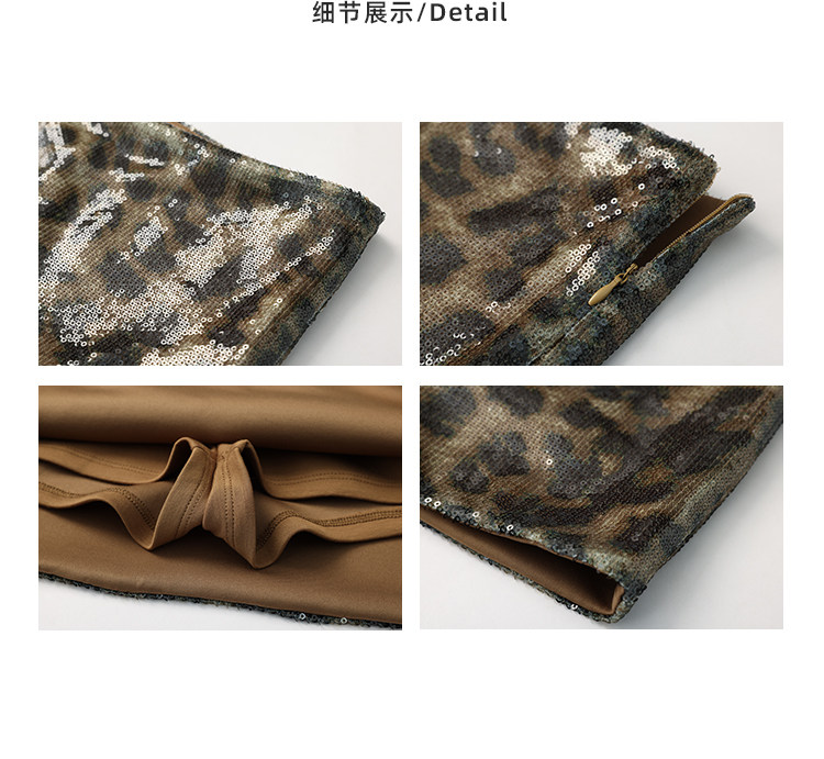 Rovente Brown Leopard Print Short Skirt for Women, Summer American Style Sexy Hot Girl Slim Fit Sequin Short Bodycon Skirt