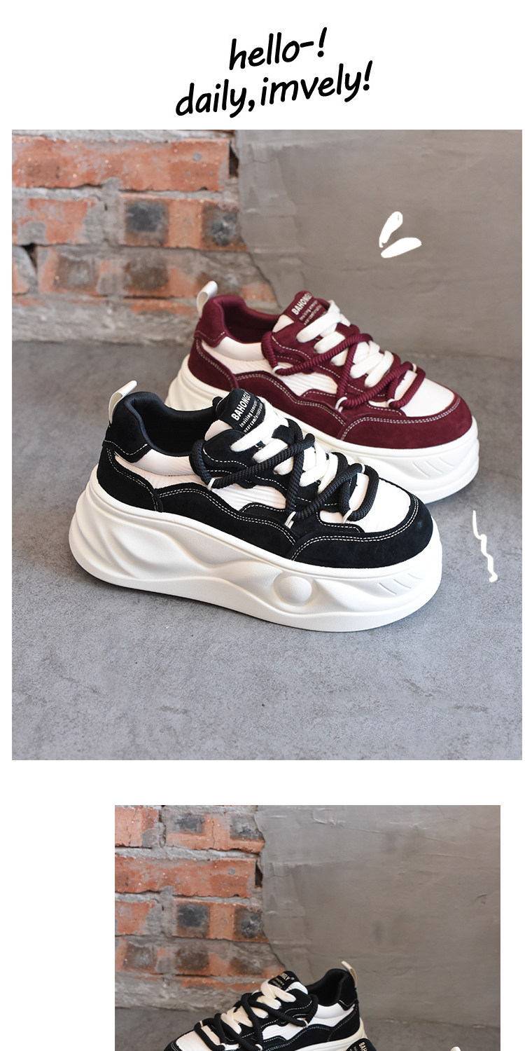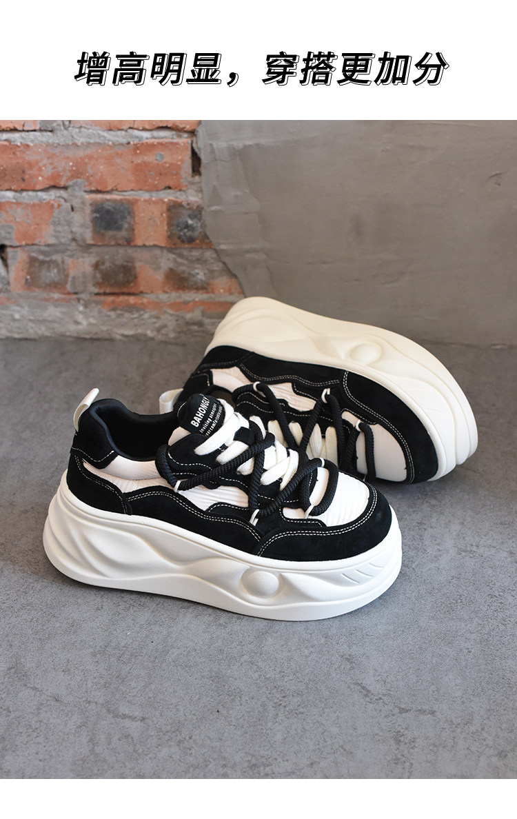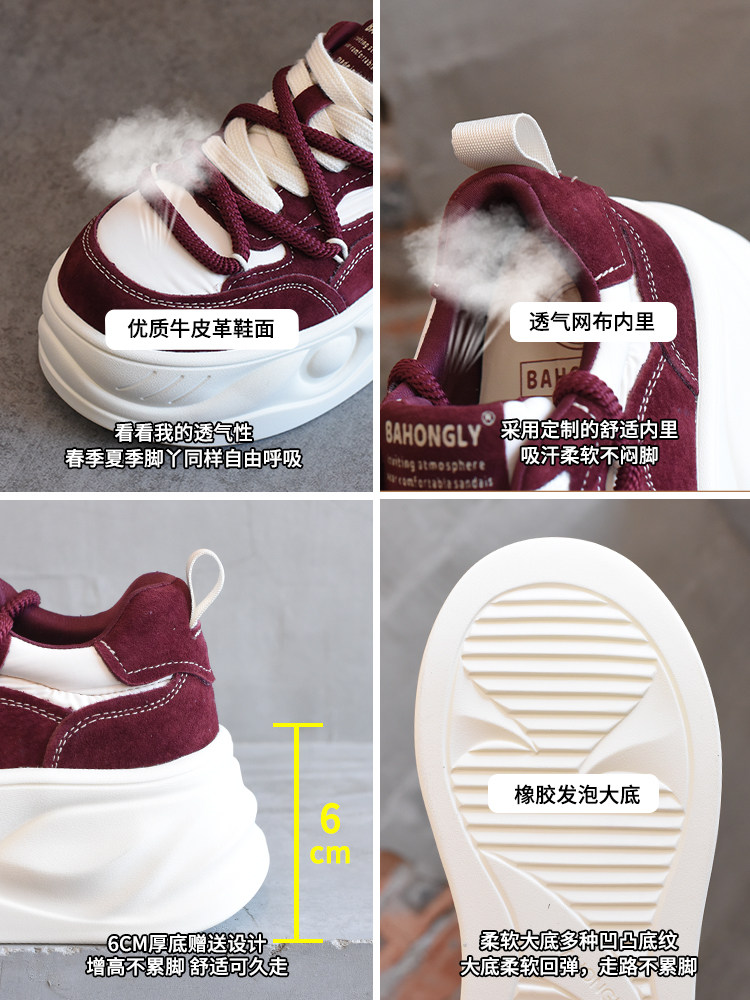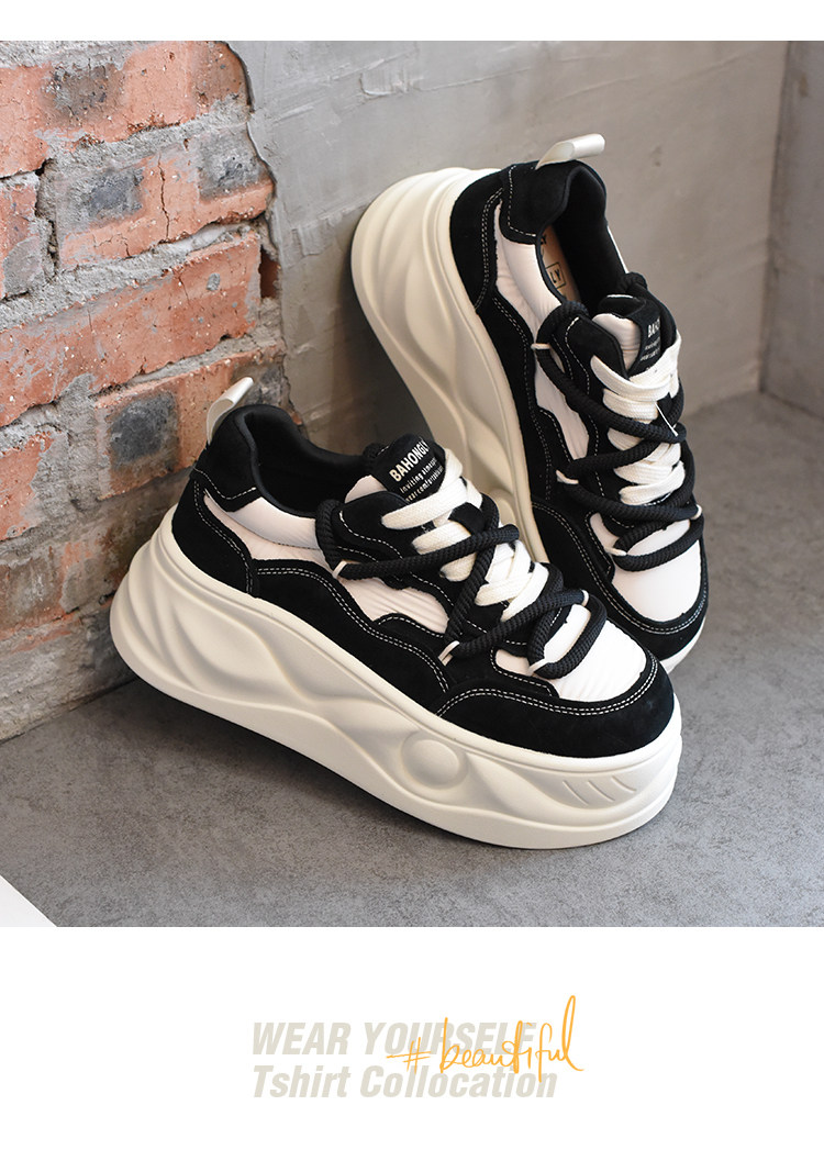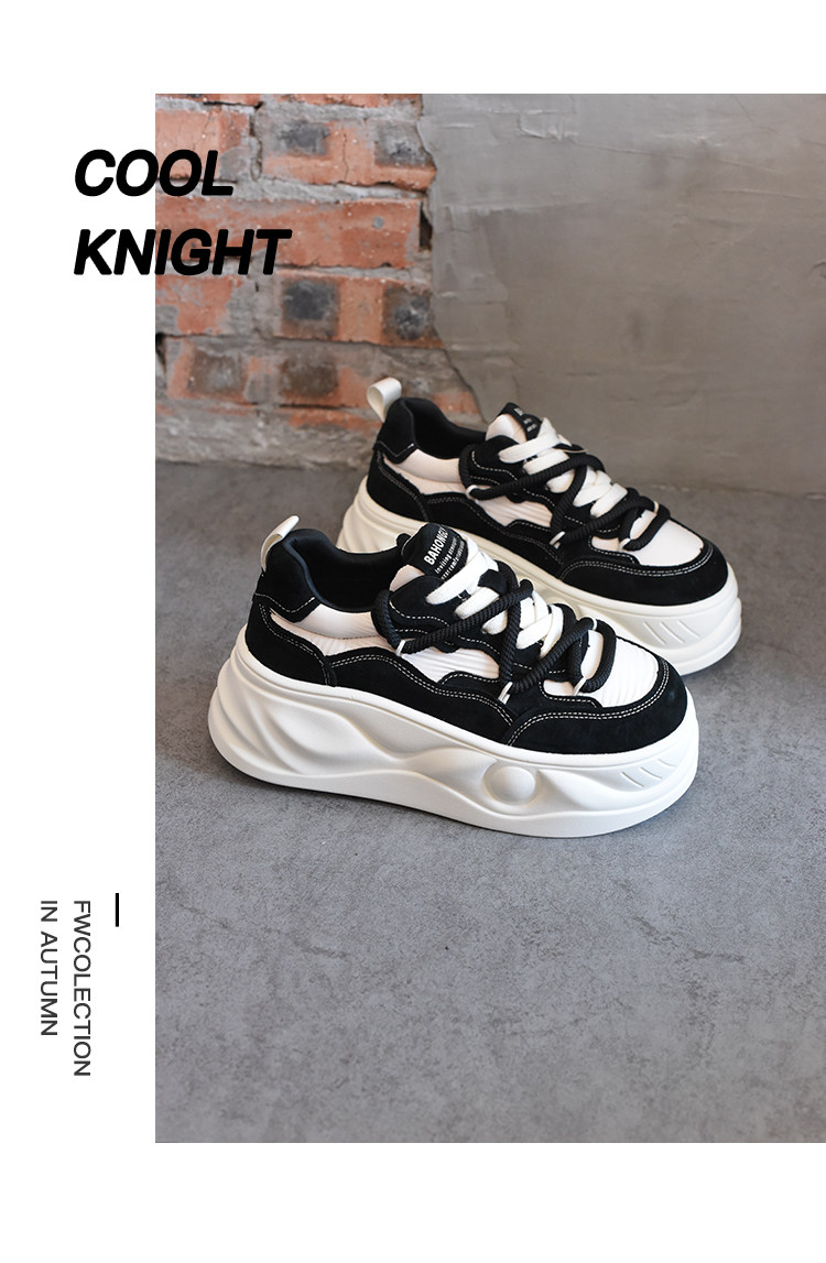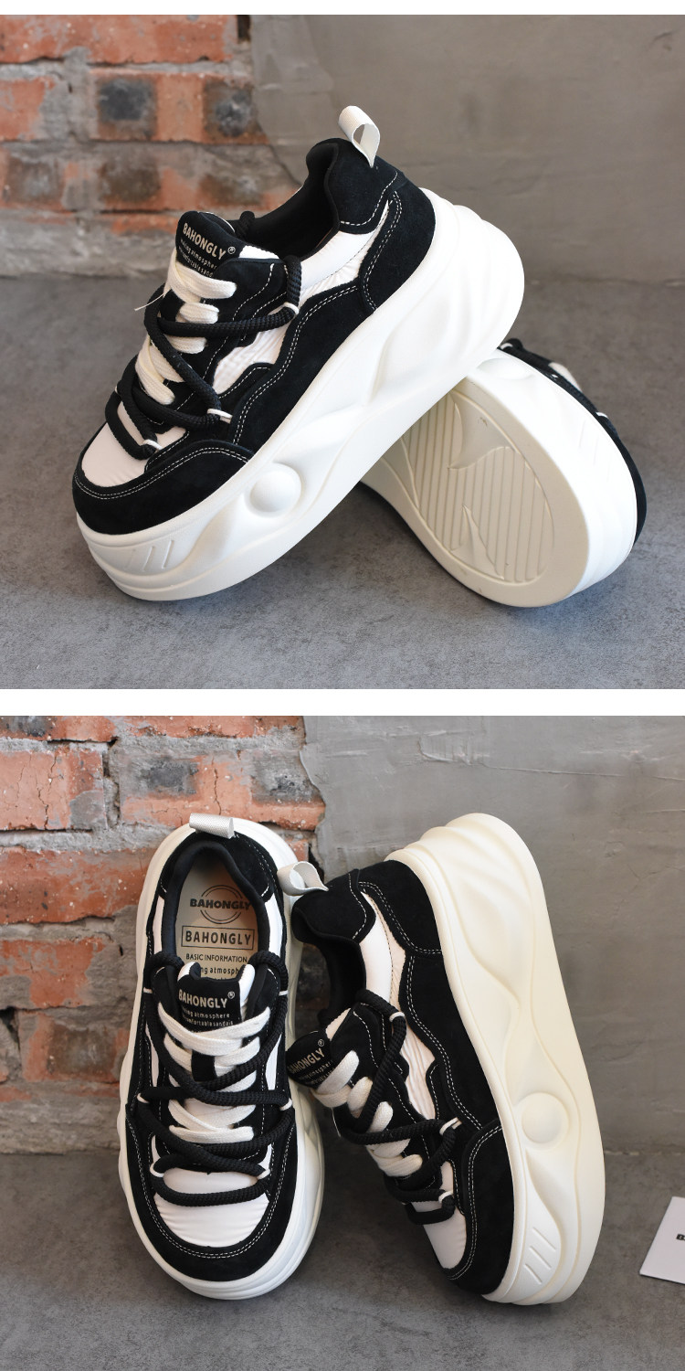 Hong Kong Style Platform Shoes for Women, Versatile Genuine Leather Platform Shoes, Popular White Shoes, Thick-Soled Height-Increasing Casual Sneakers