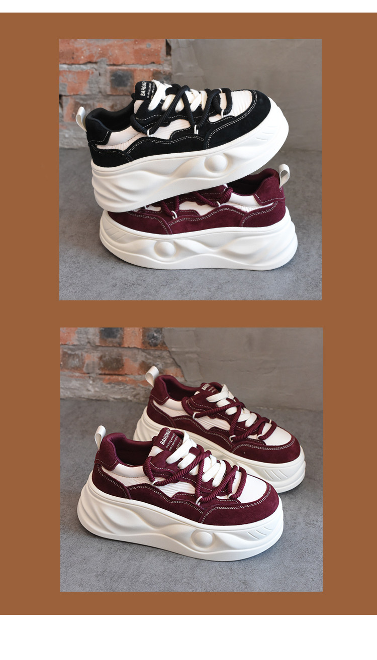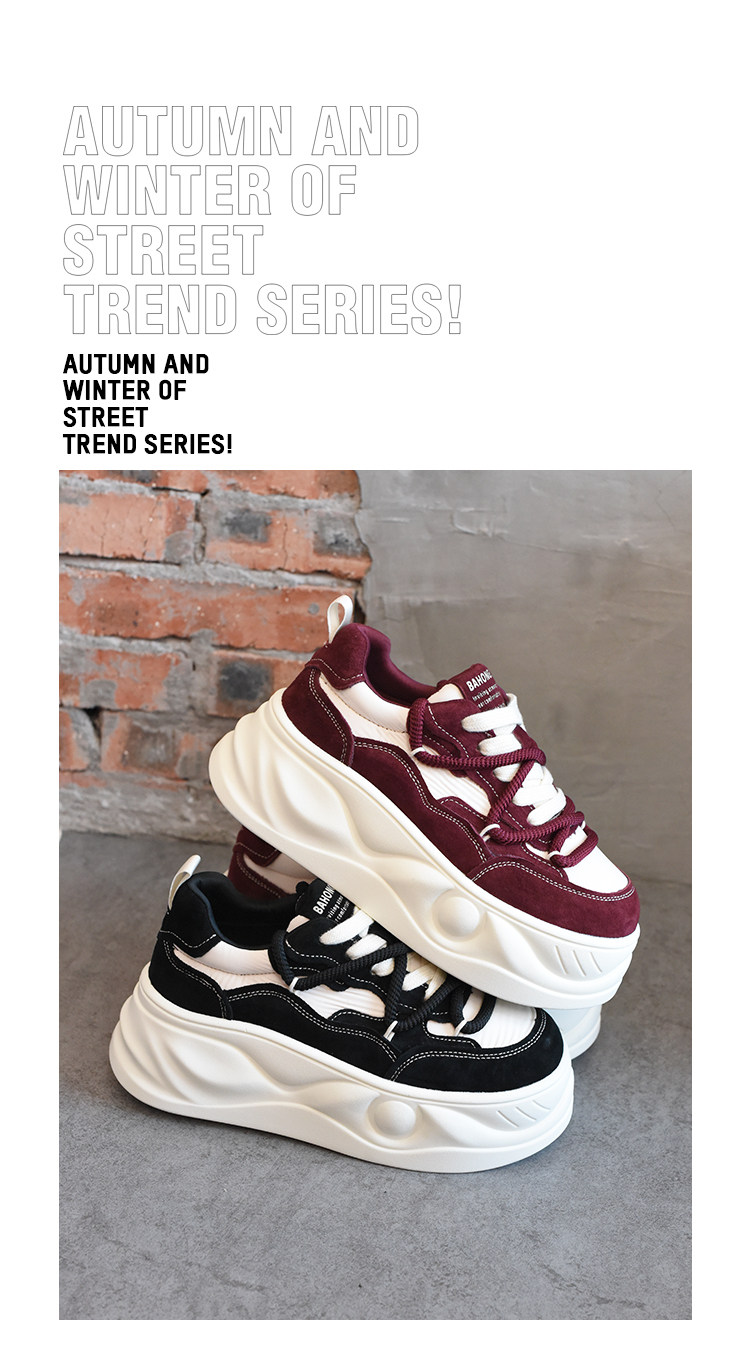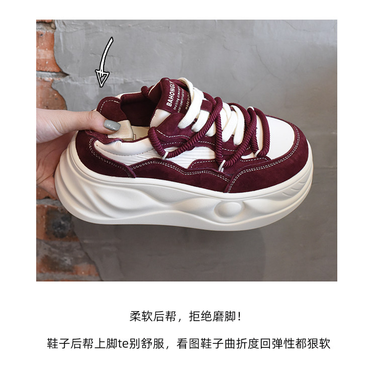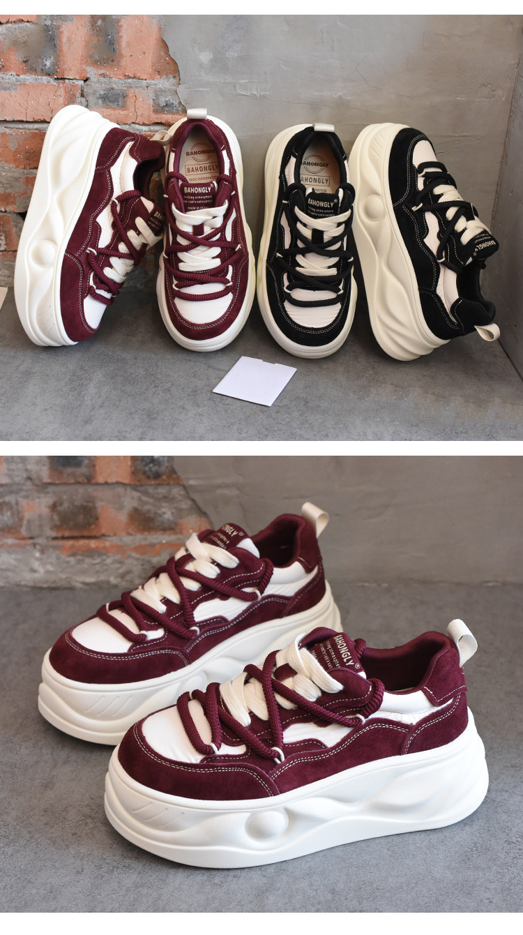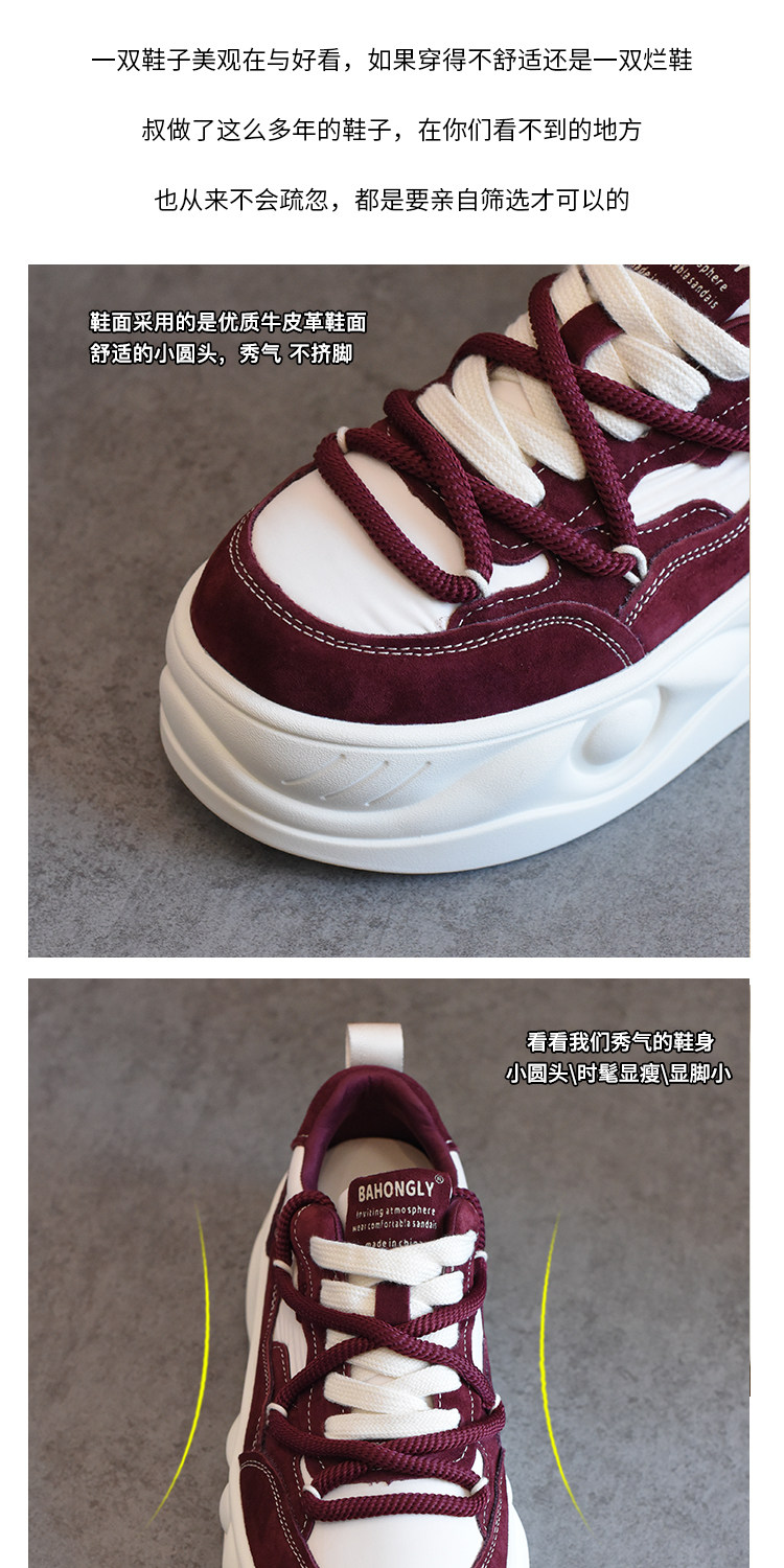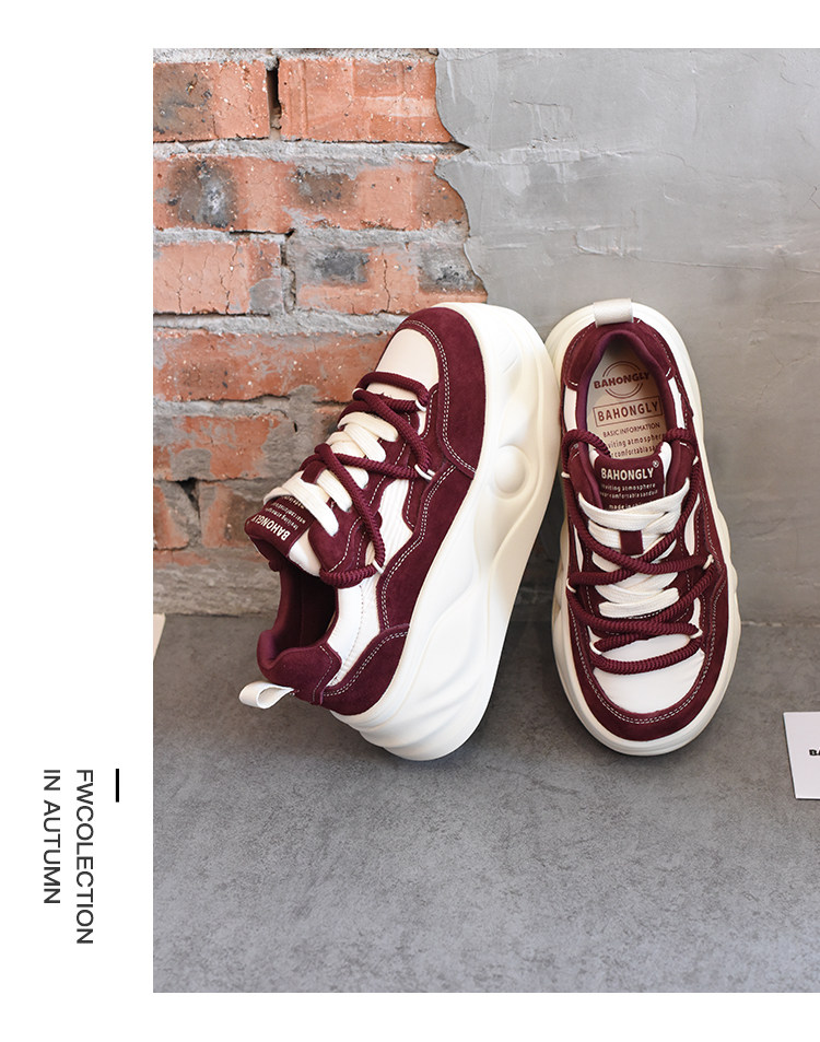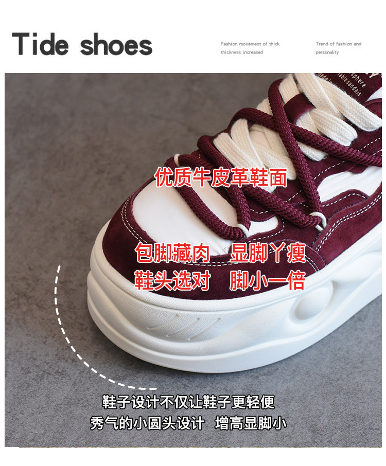 Hong Kong Style Platform Shoes for Women, Versatile Genuine Leather Platform Shoes, Popular White Shoes, Thick-Soled Height-Increasing Casual Sneakers