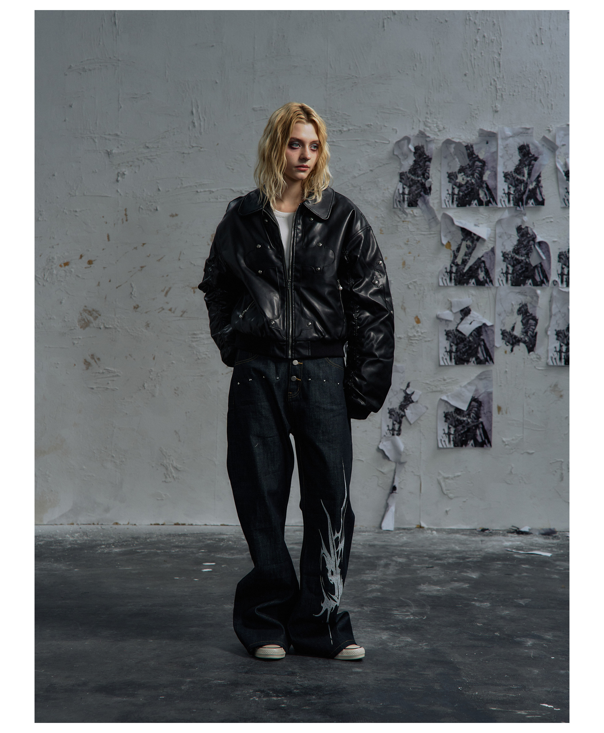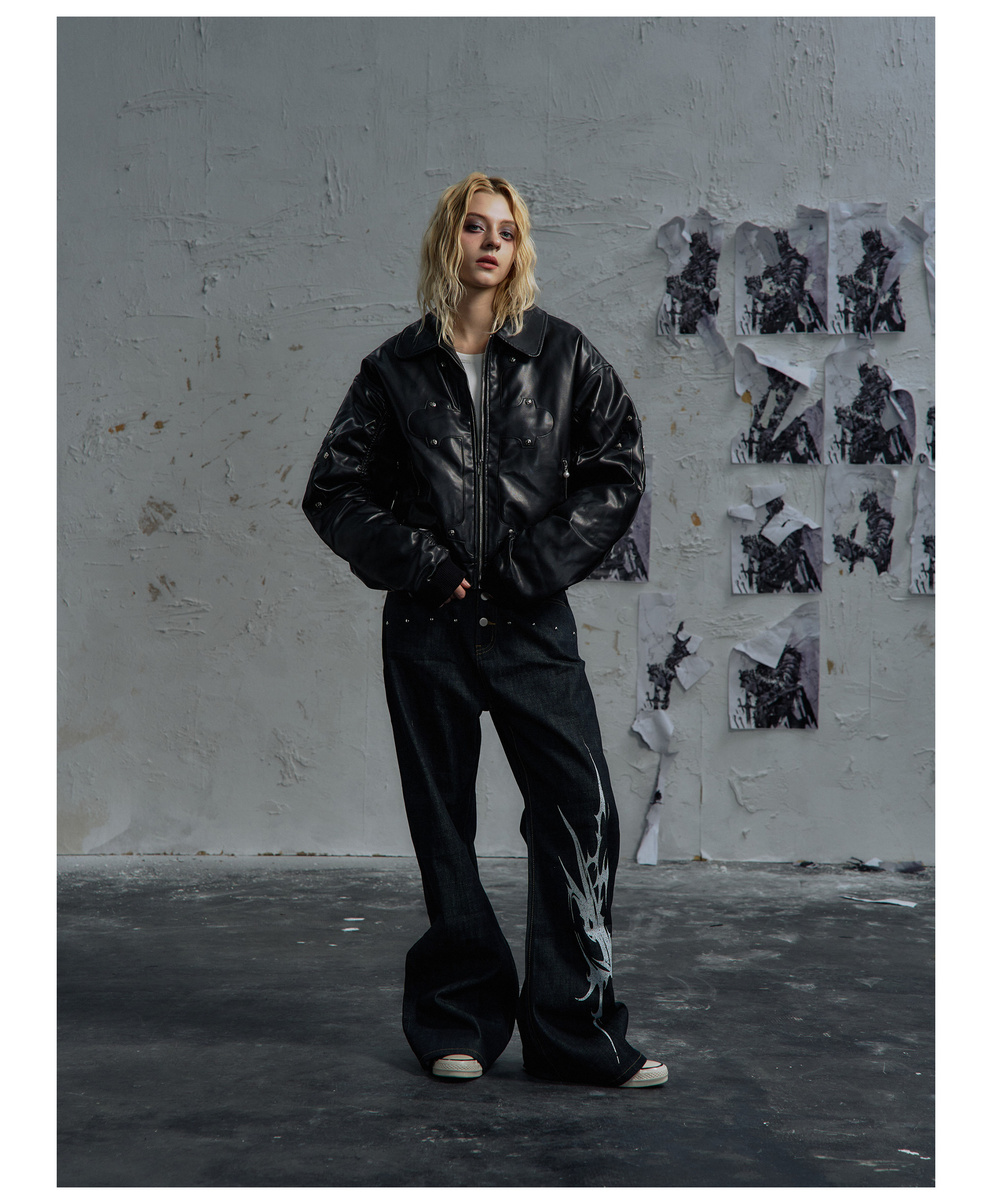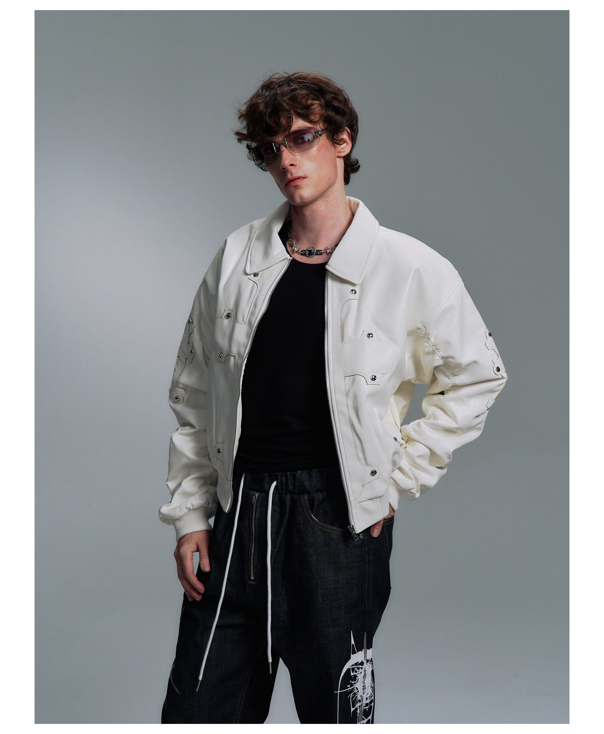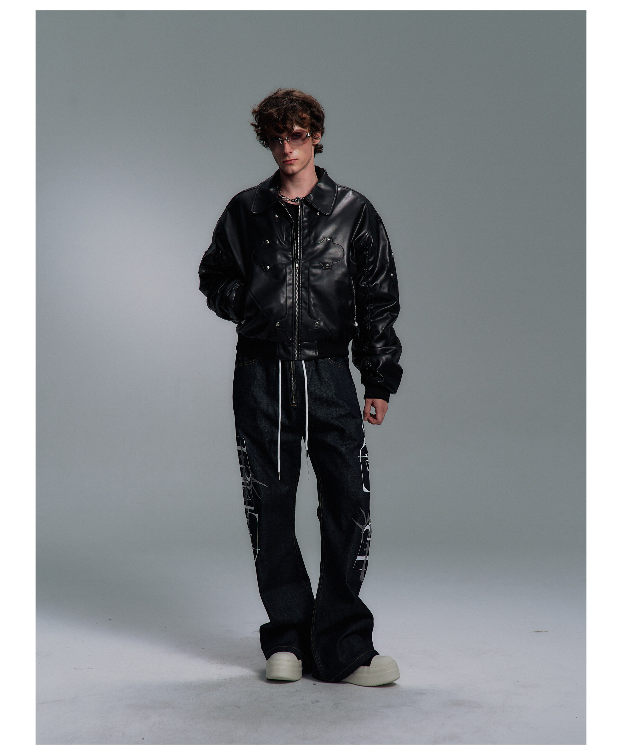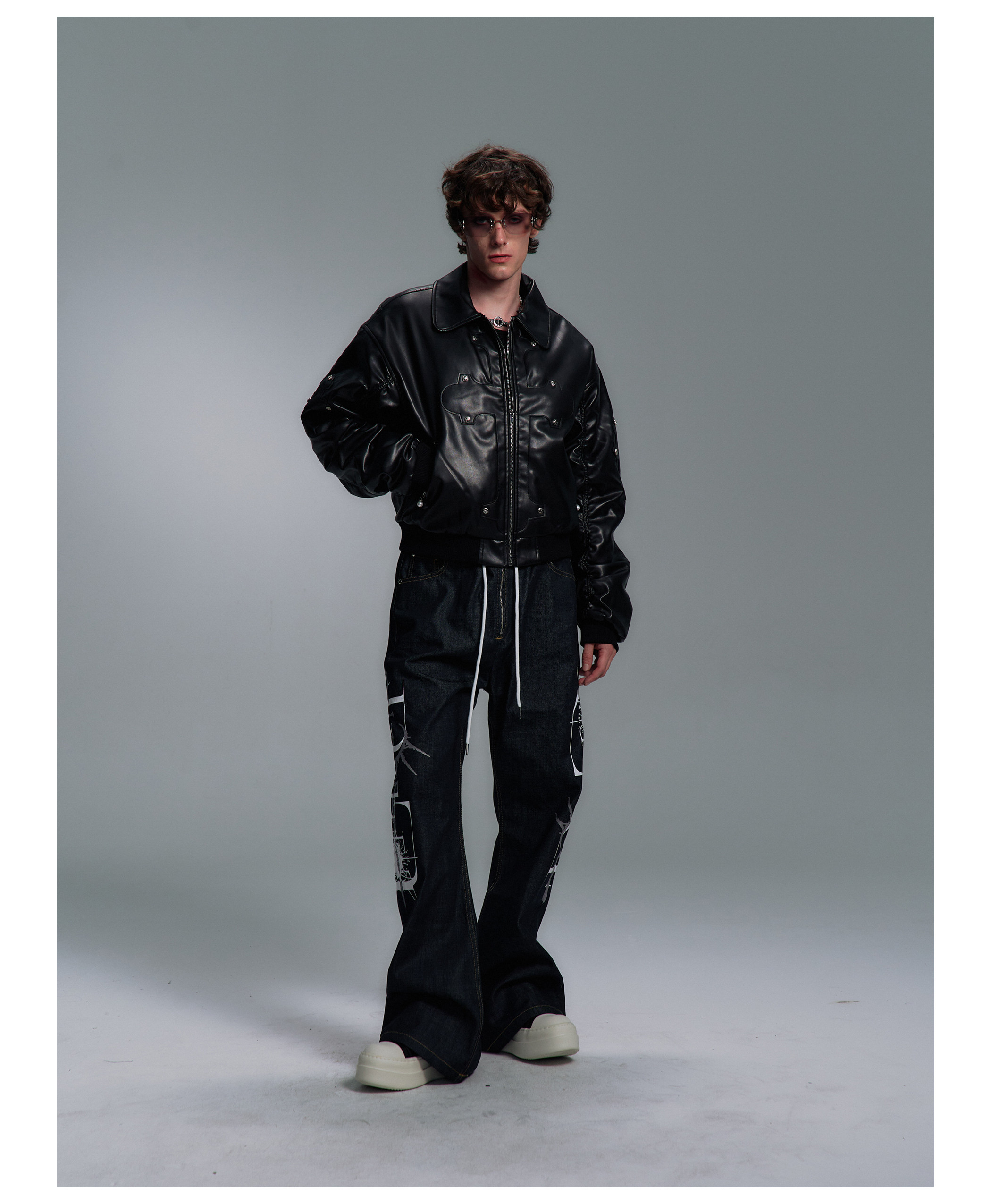 Paiki'Cyrus Empire' Holy Cross Fur Collar Patch Leather Bomber Jacket Air Force Jacket Cotton Coat