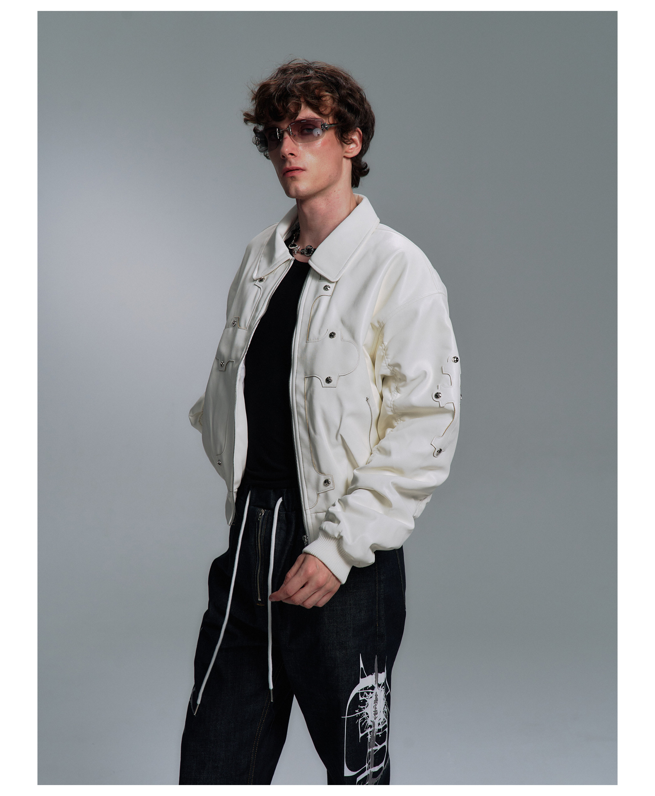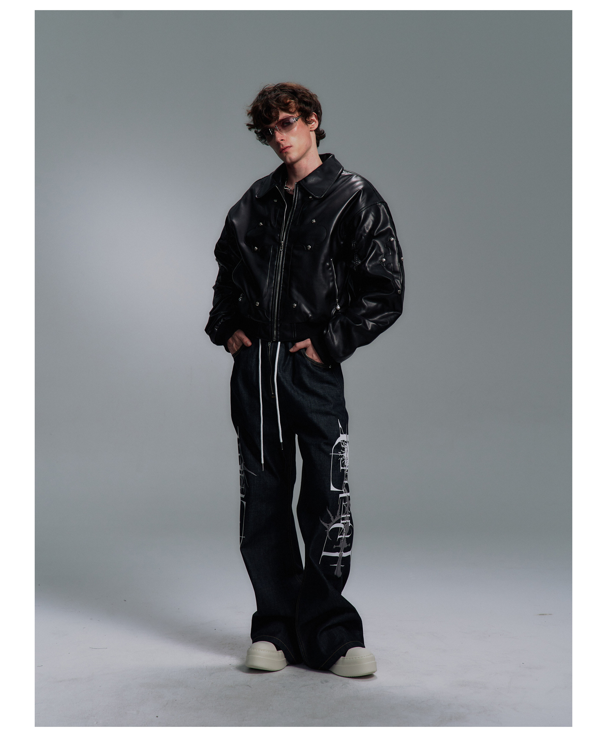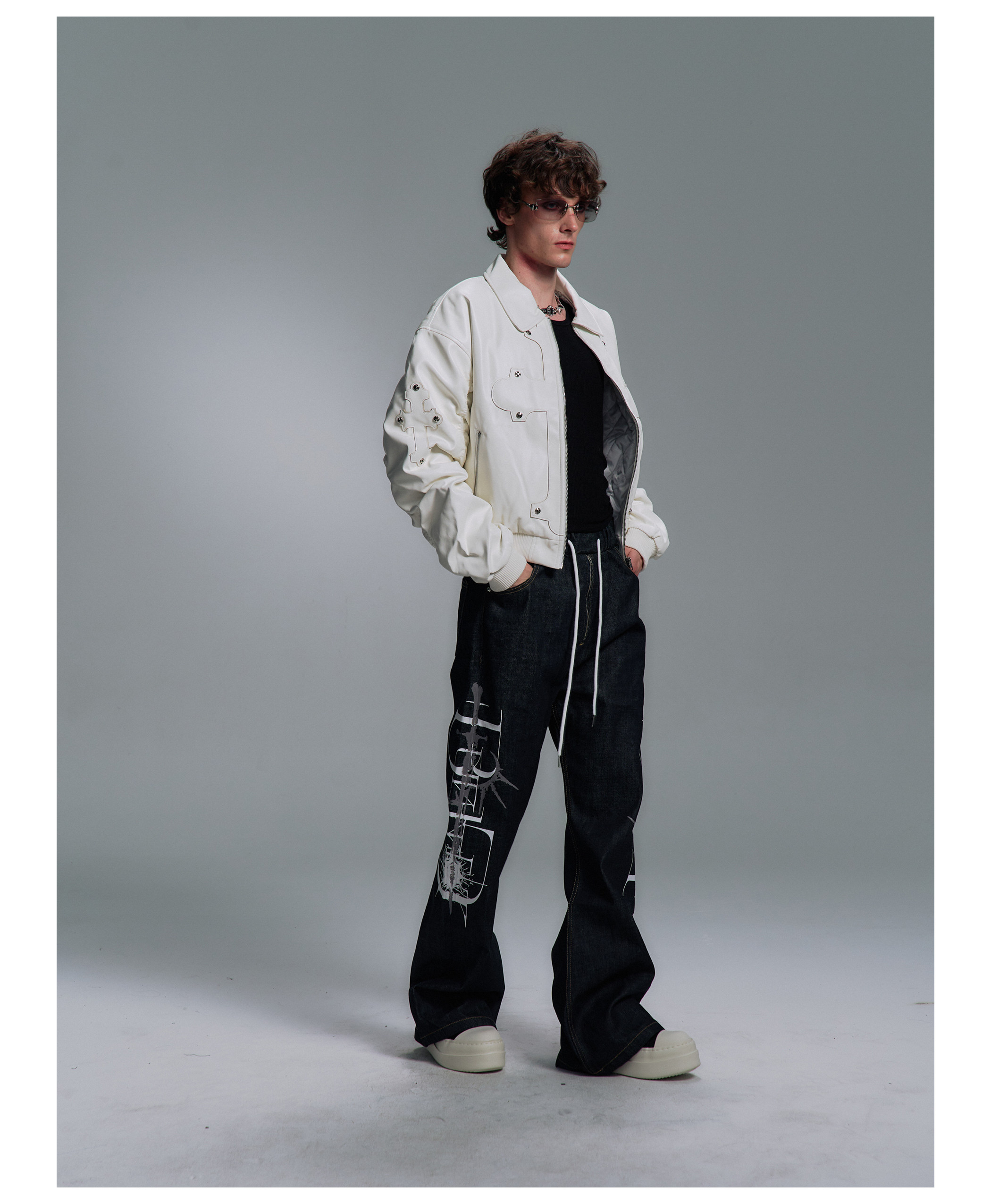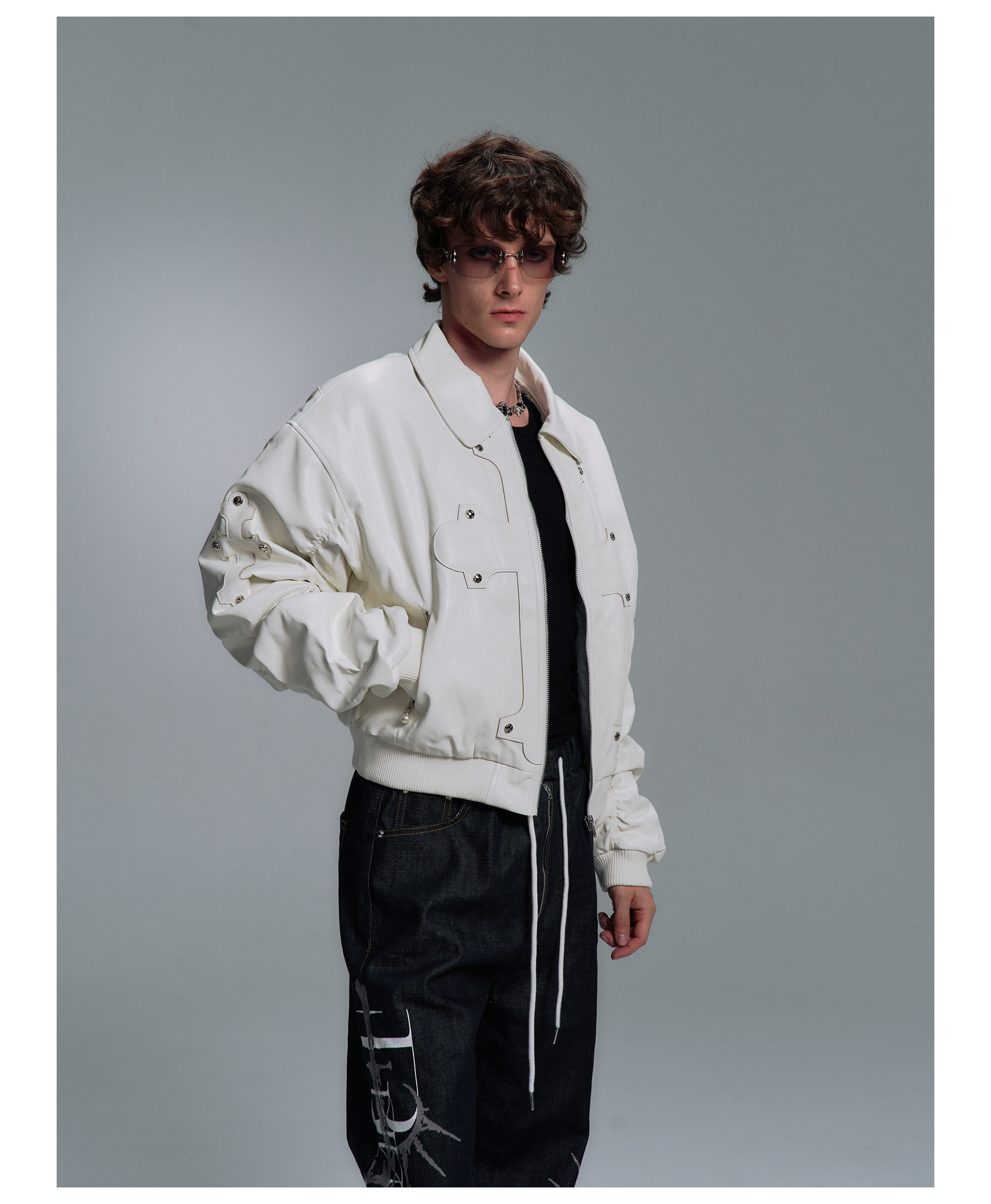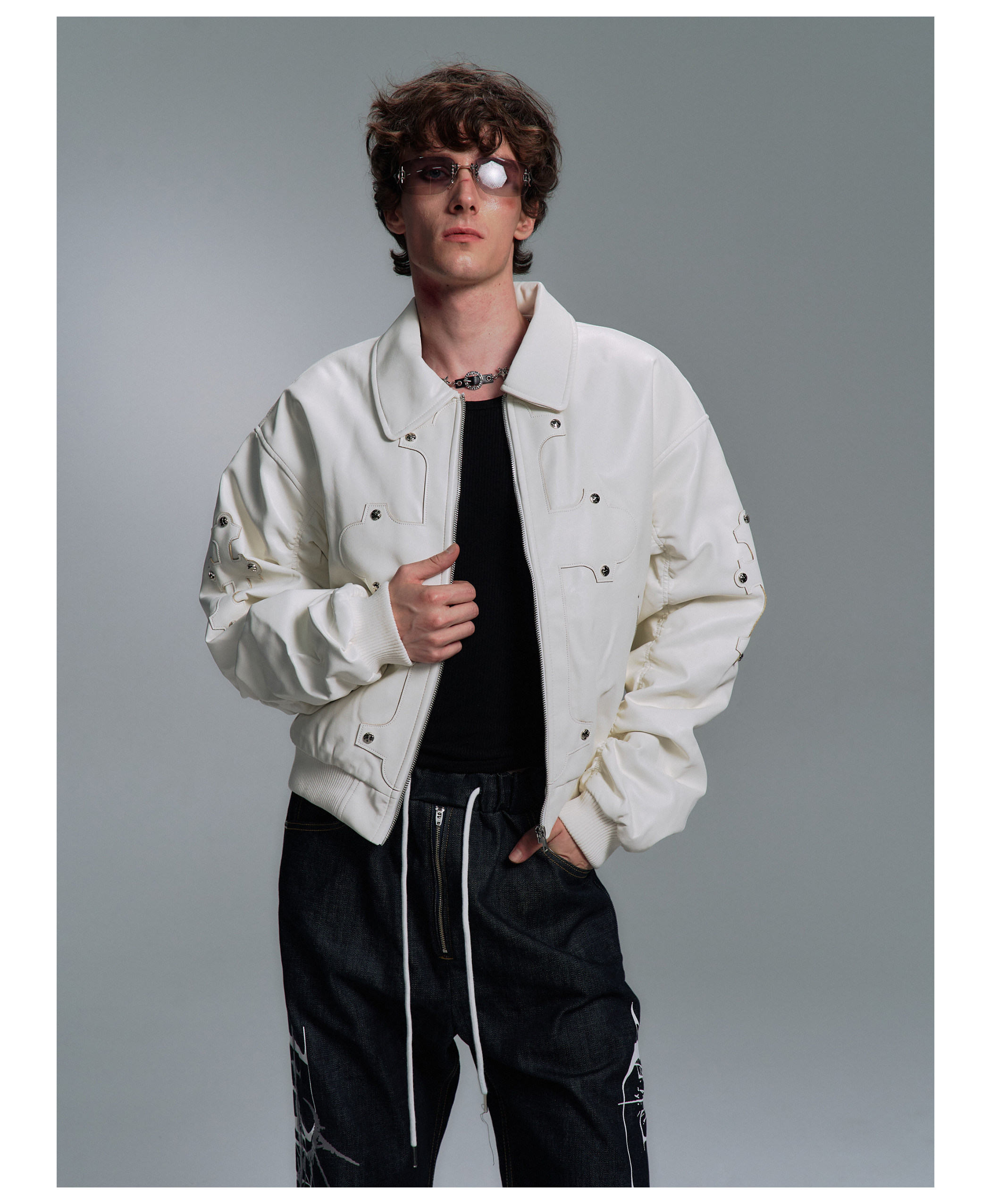 Paiki'Cyrus Empire' Holy Cross Fur Collar Patch Leather Bomber Jacket Air Force Jacket Cotton Coat