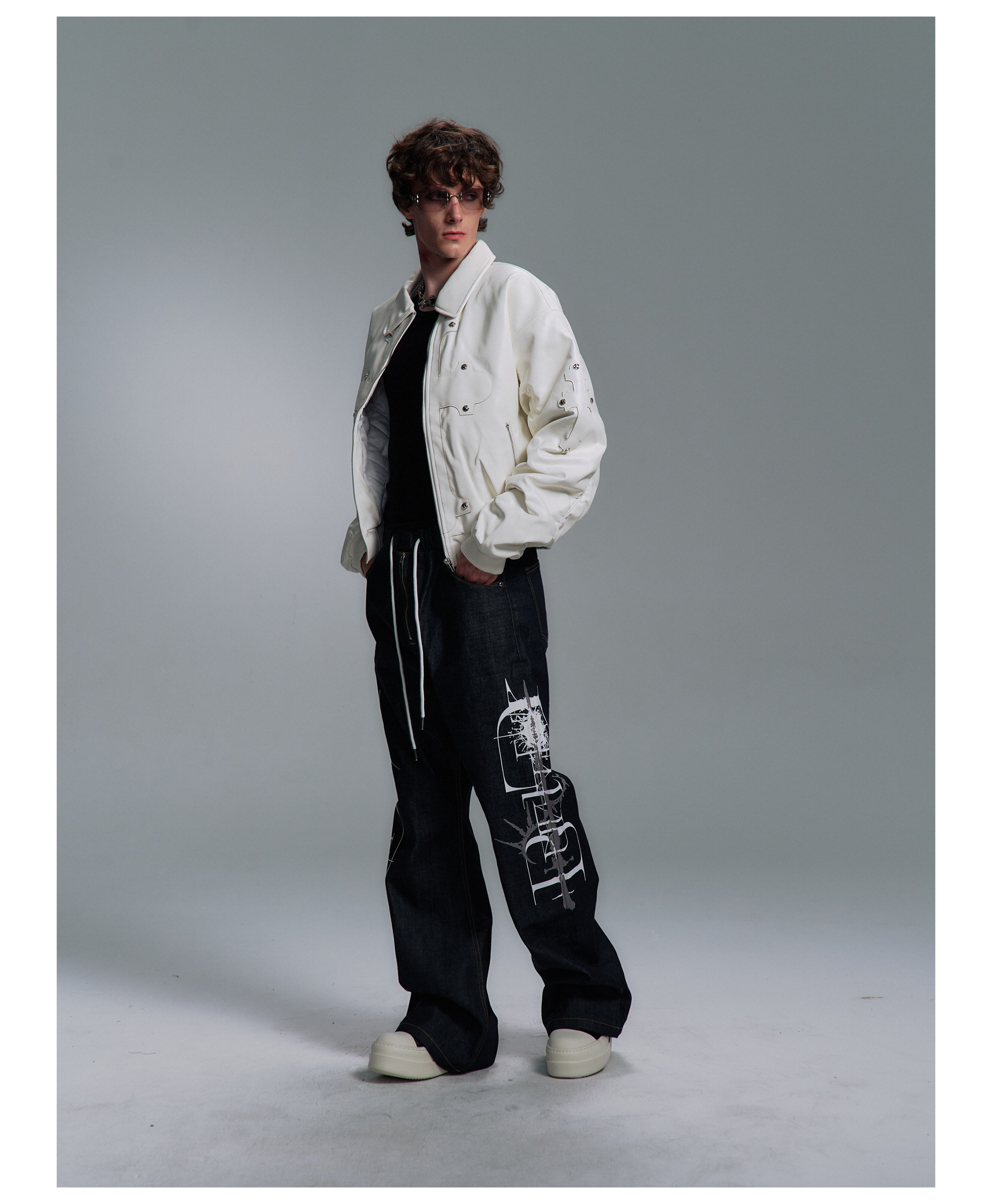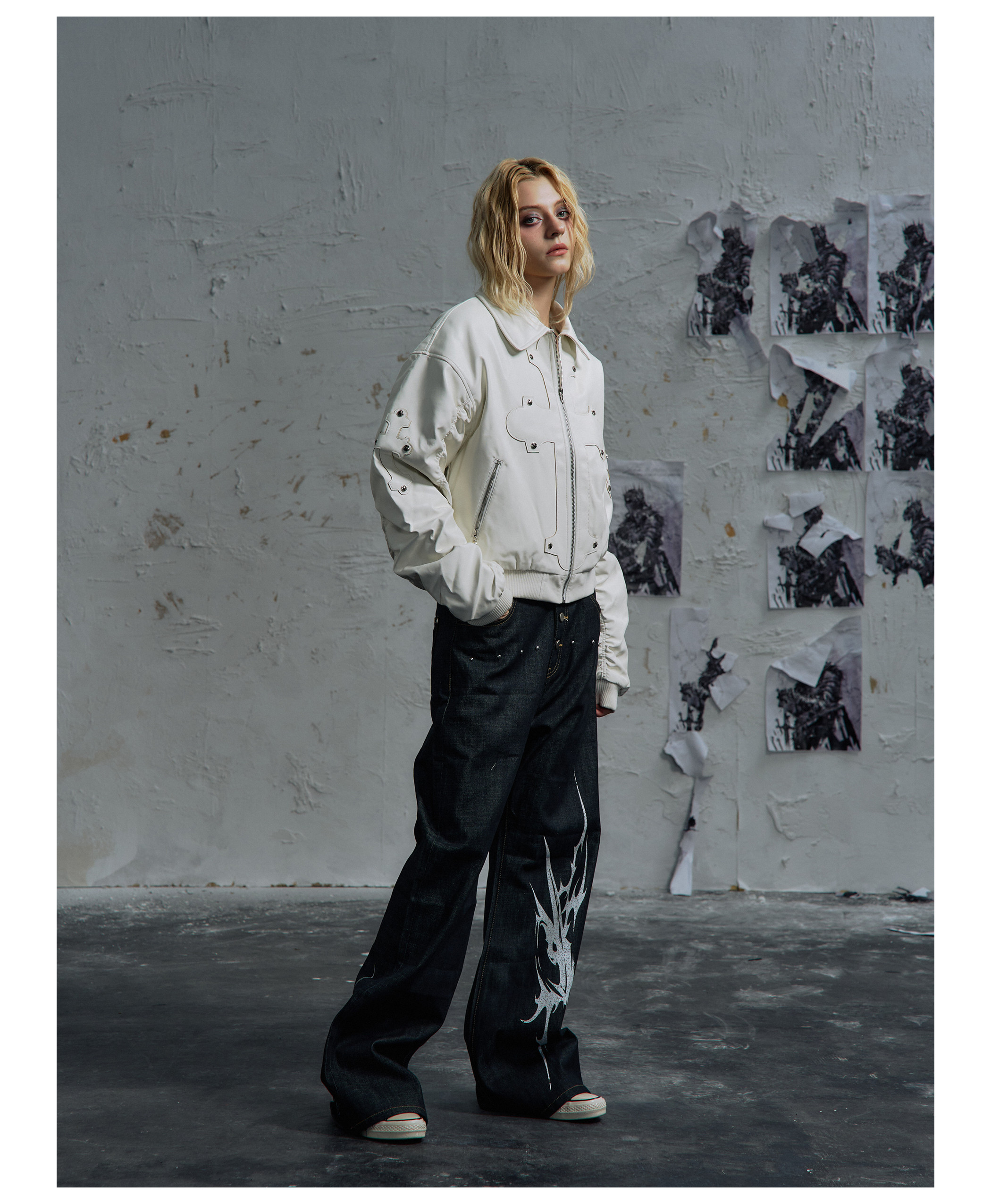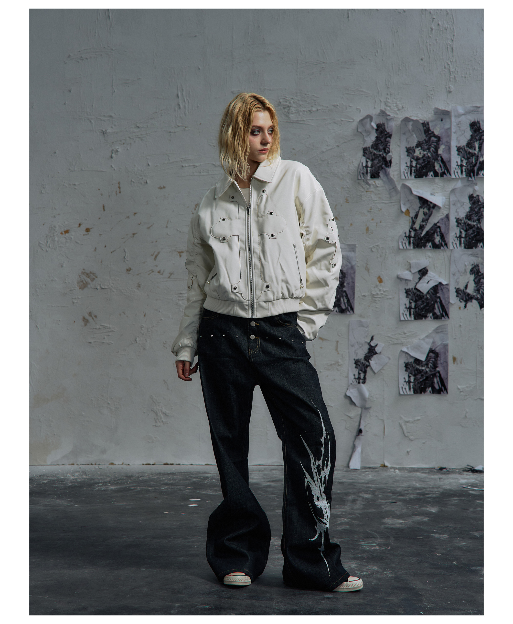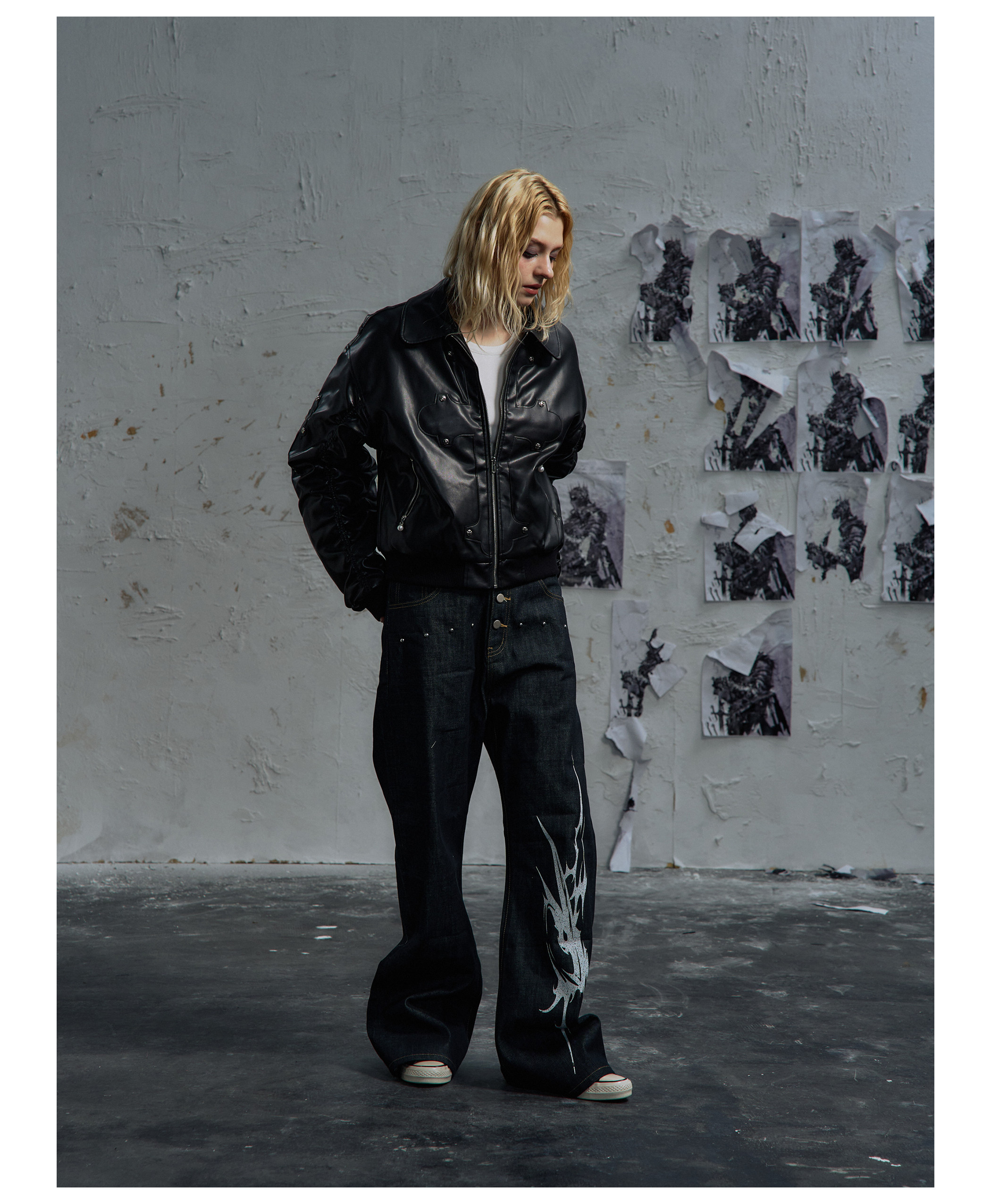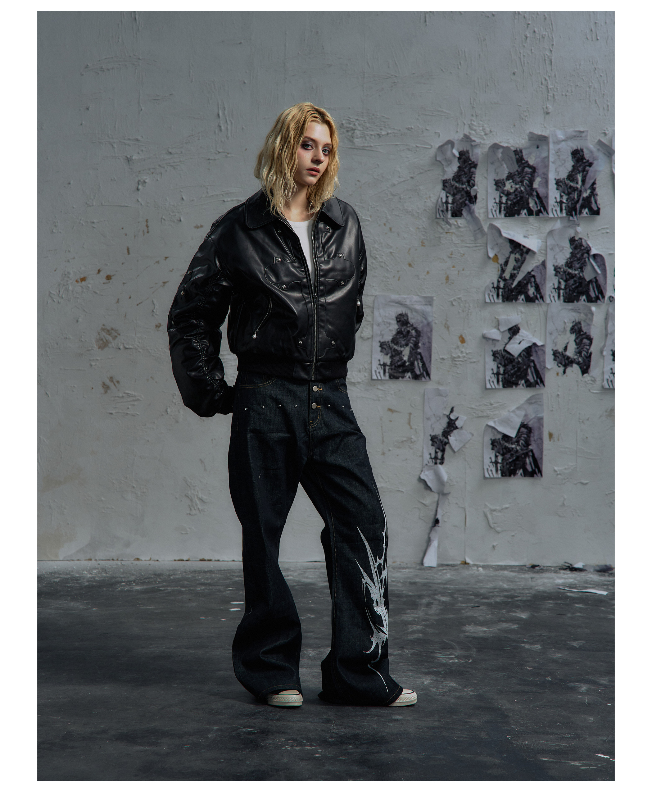 Paiki'Cyrus Empire' Holy Cross Fur Collar Patch Leather Bomber Jacket Air Force Jacket Cotton Coat