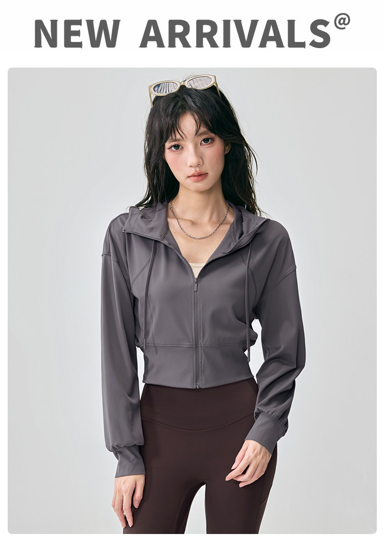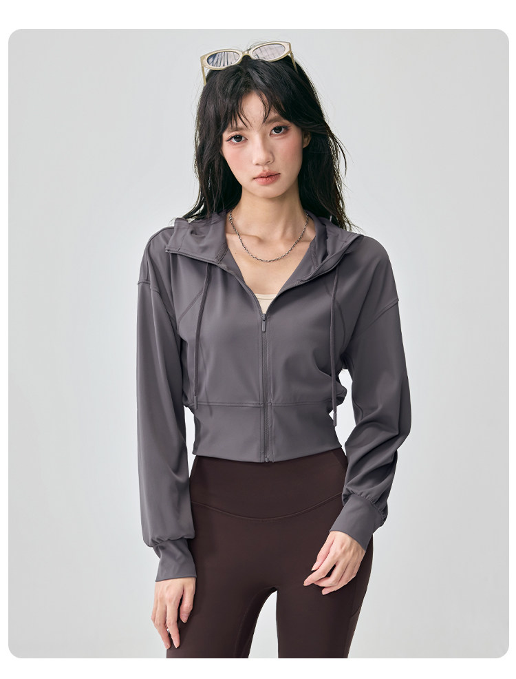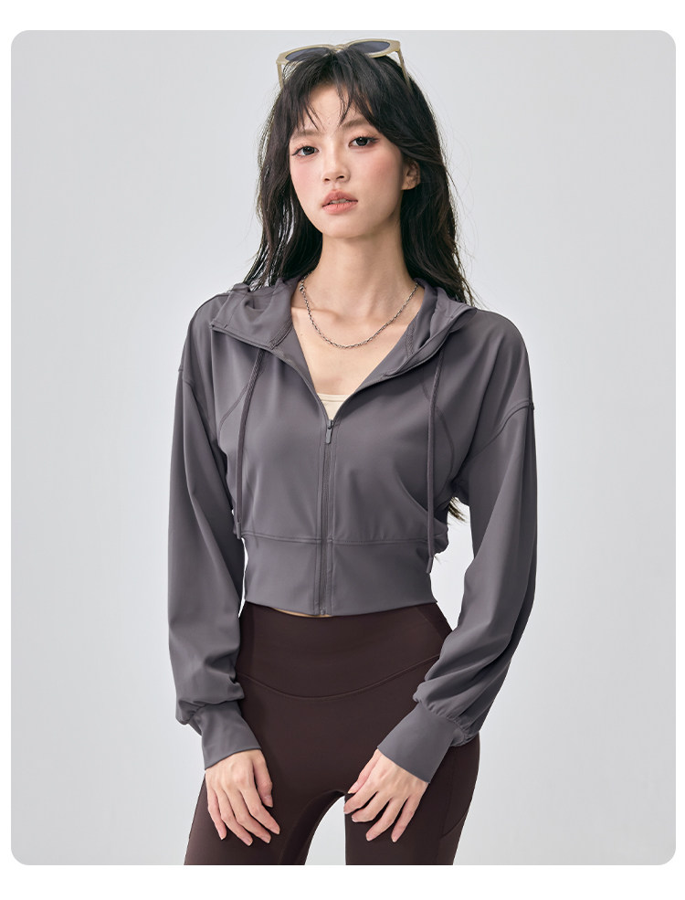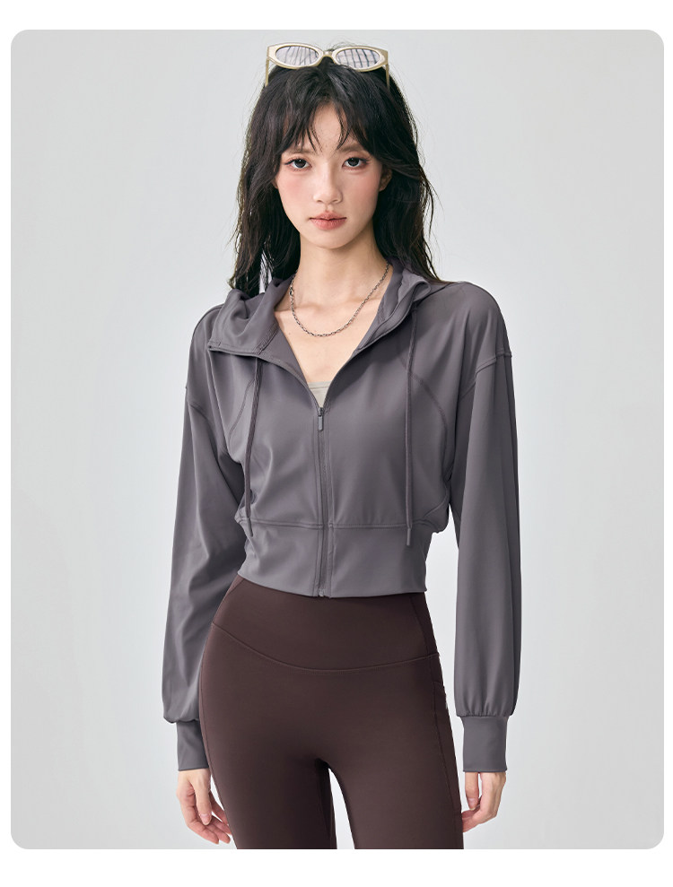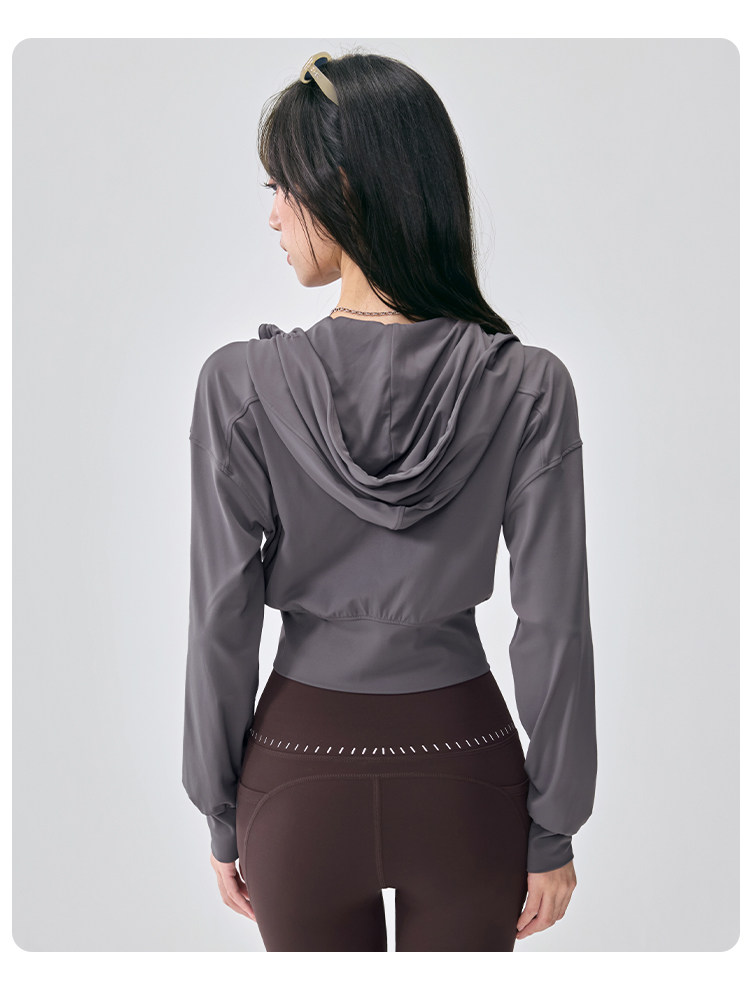 Hooded Sports Jacket for Women, Loose and Slimming, Yoga Wear, Long-Sleeved, New Style, Running, Pilates Training, Fitness Top, Autumn