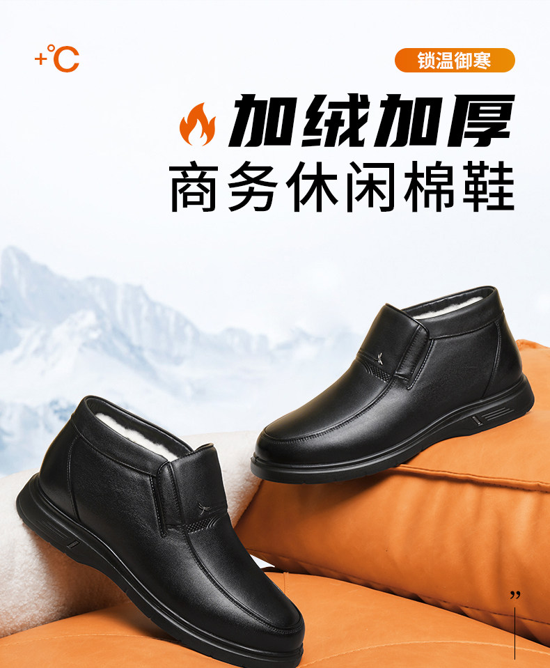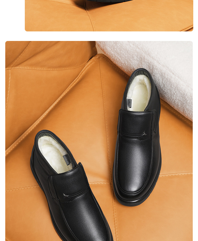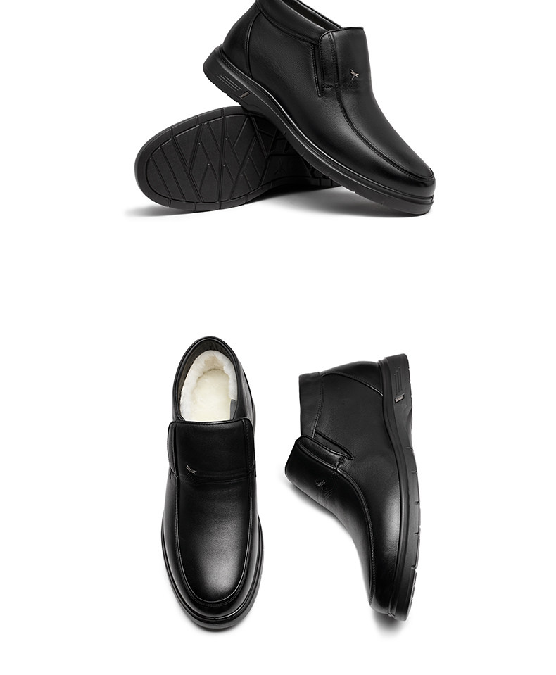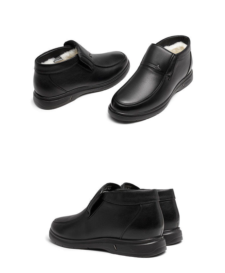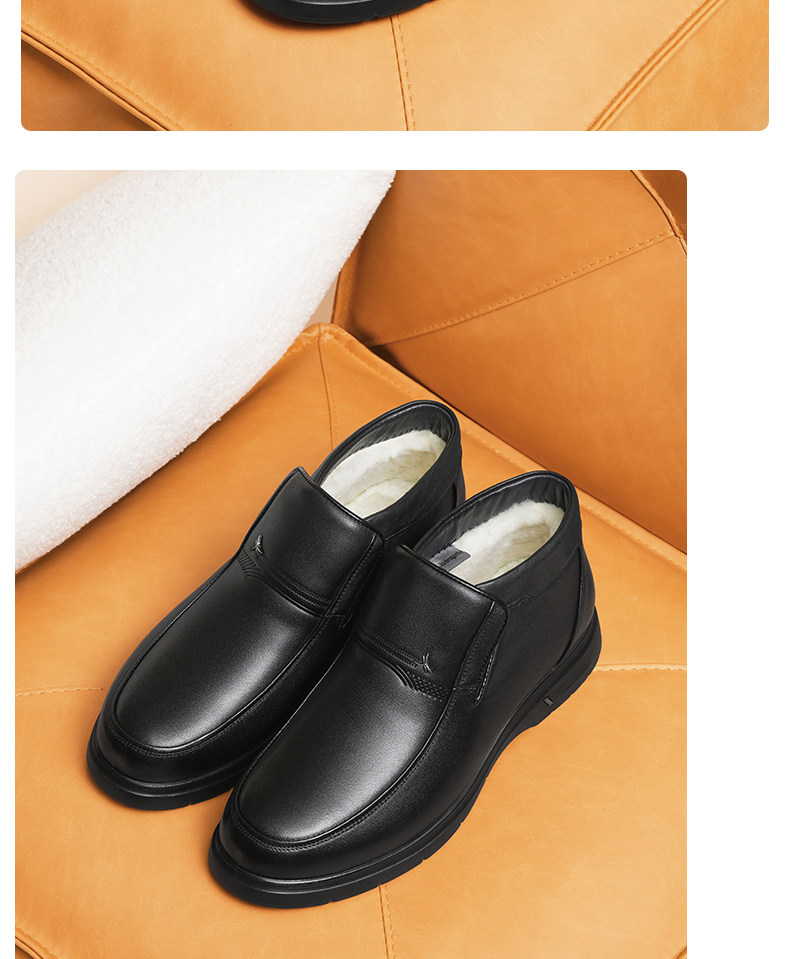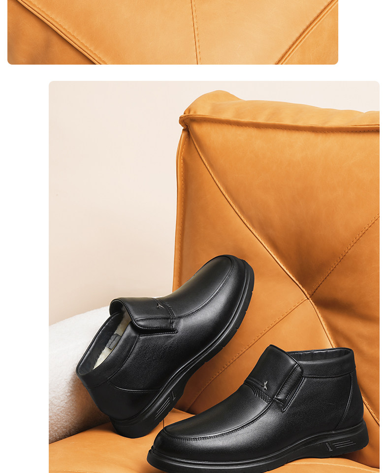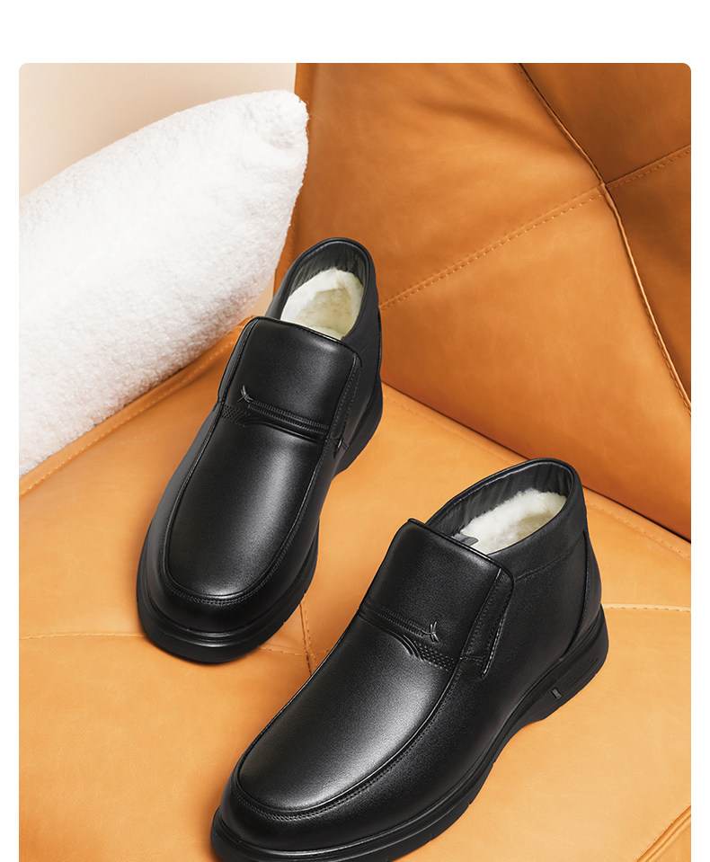 Red Dragonfly Dad's Cotton Shoes Winter Men's High-Top Fleece-Lined Leather Shoes Thickened Warm Wool Genuine Leather Shoes for Middle-Aged and Elderly Men