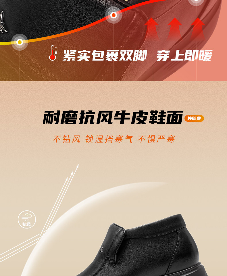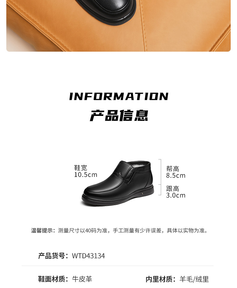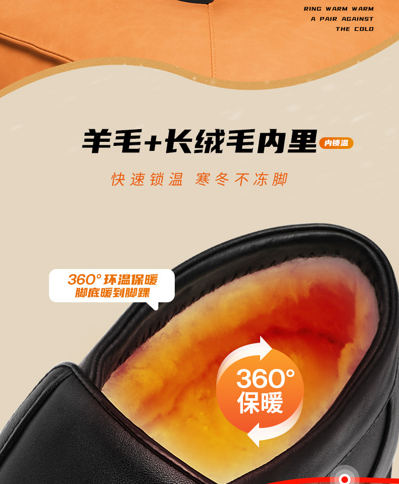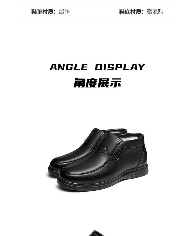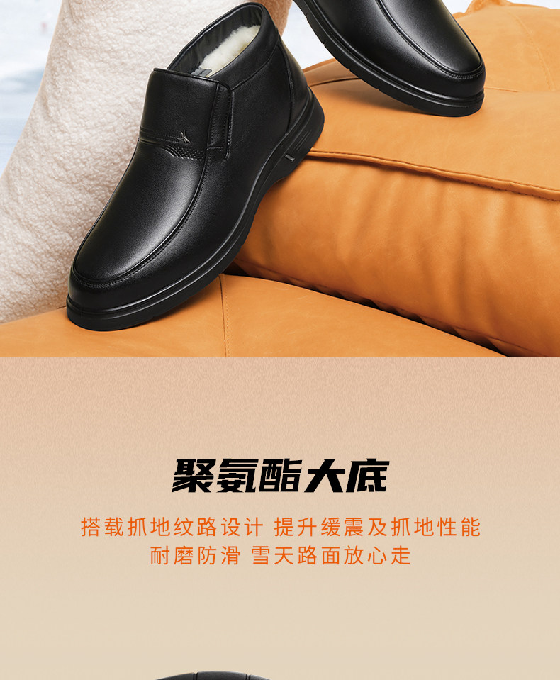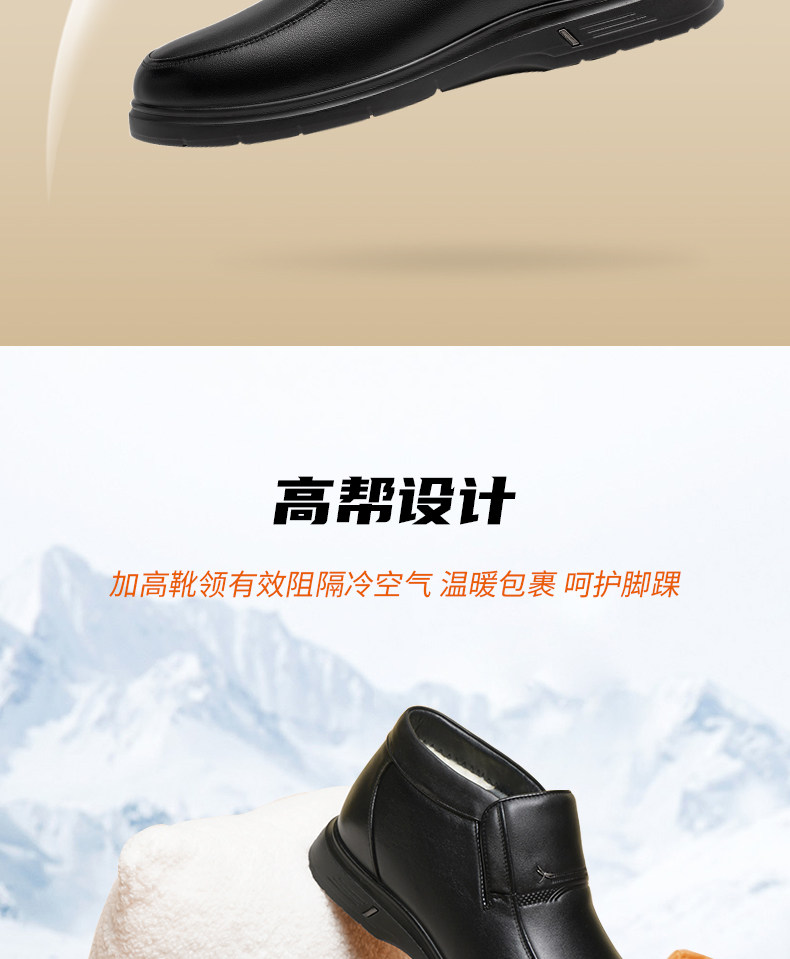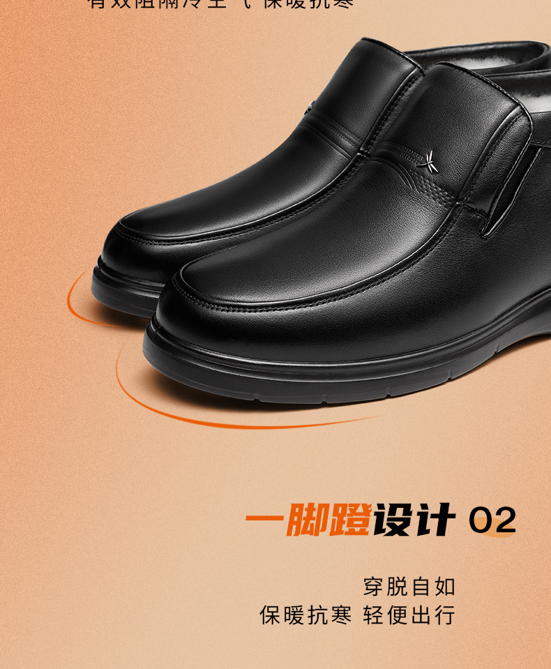 Red Dragonfly Dad's Cotton Shoes Winter Men's High-Top Fleece-Lined Leather Shoes Thickened Warm Wool Genuine Leather Shoes for Middle-Aged and Elderly Men