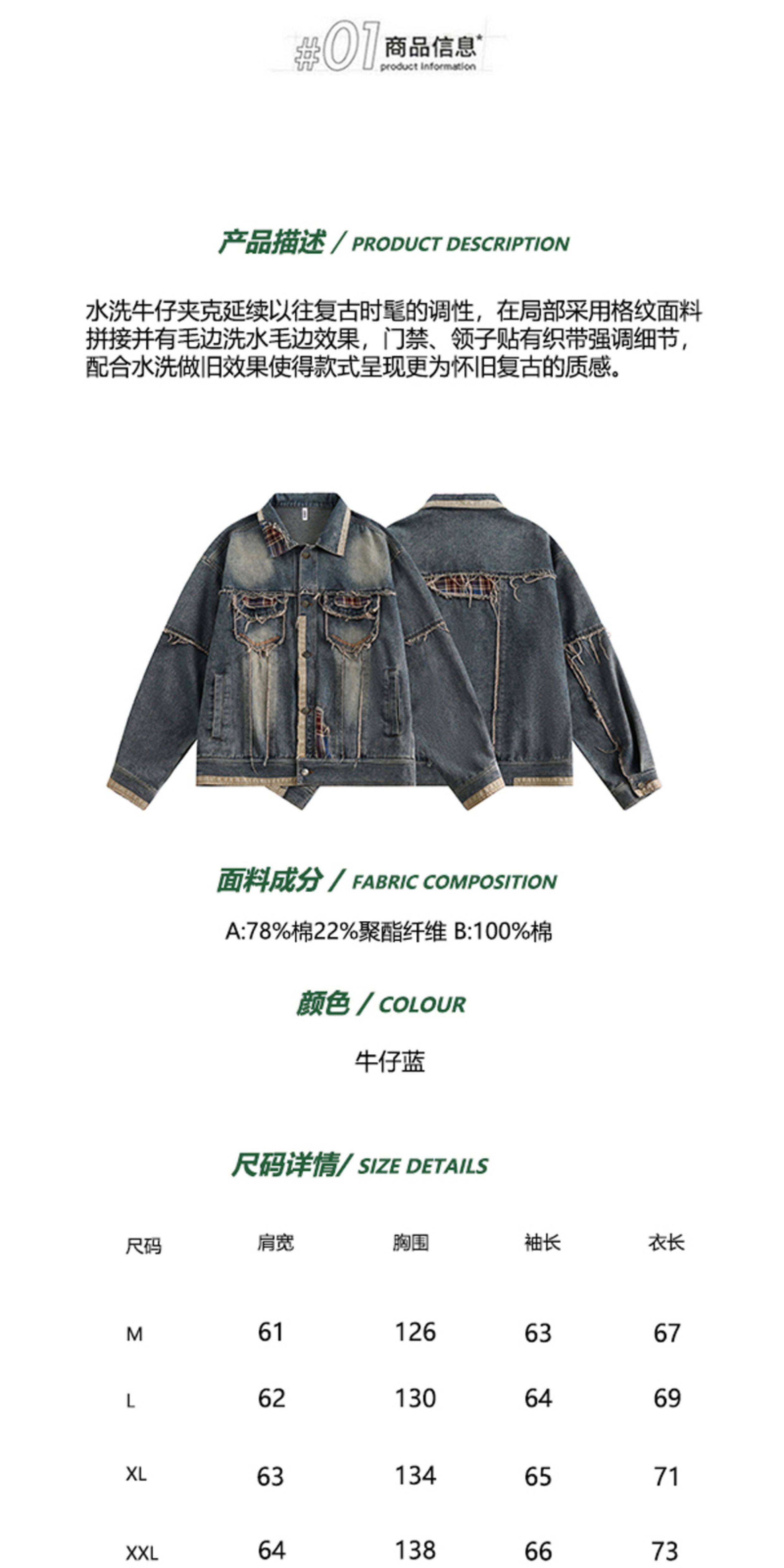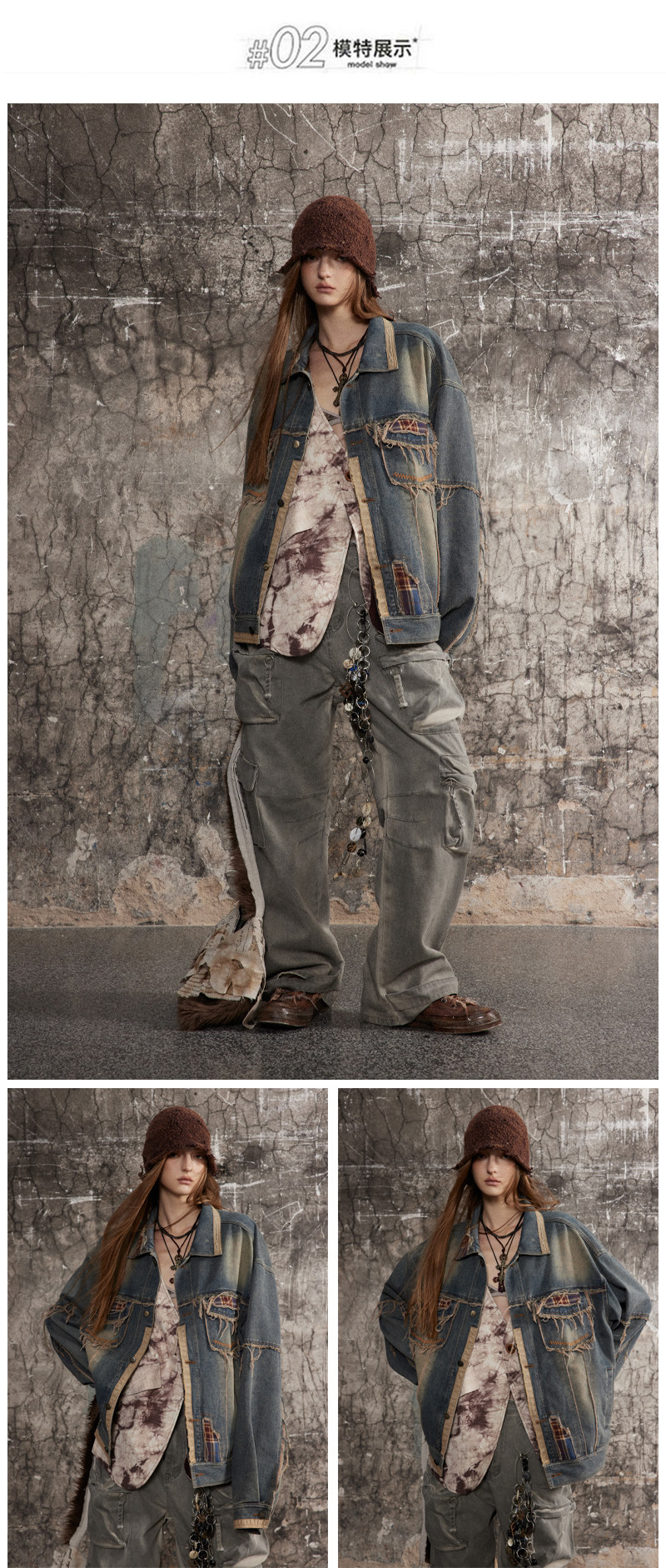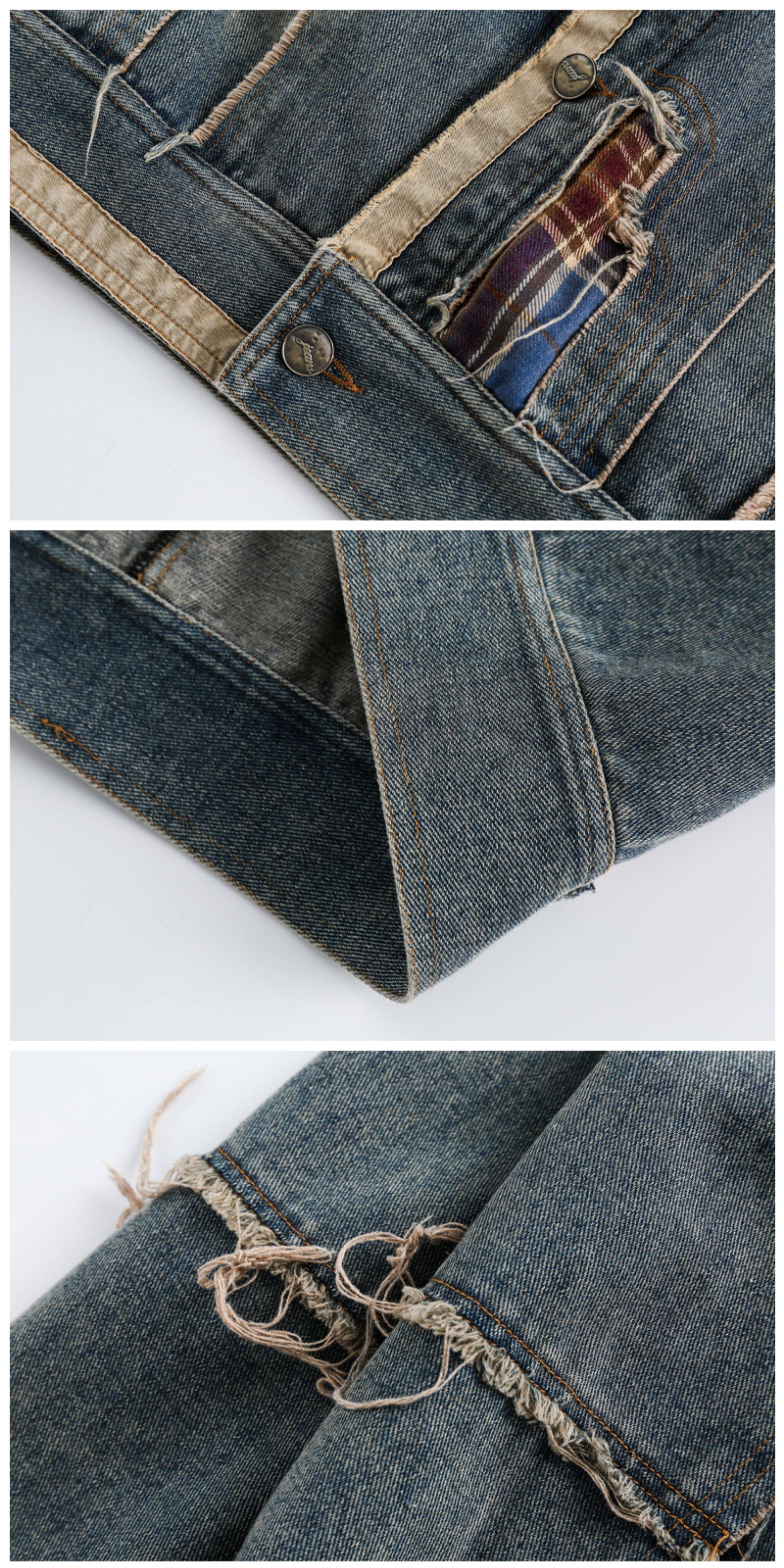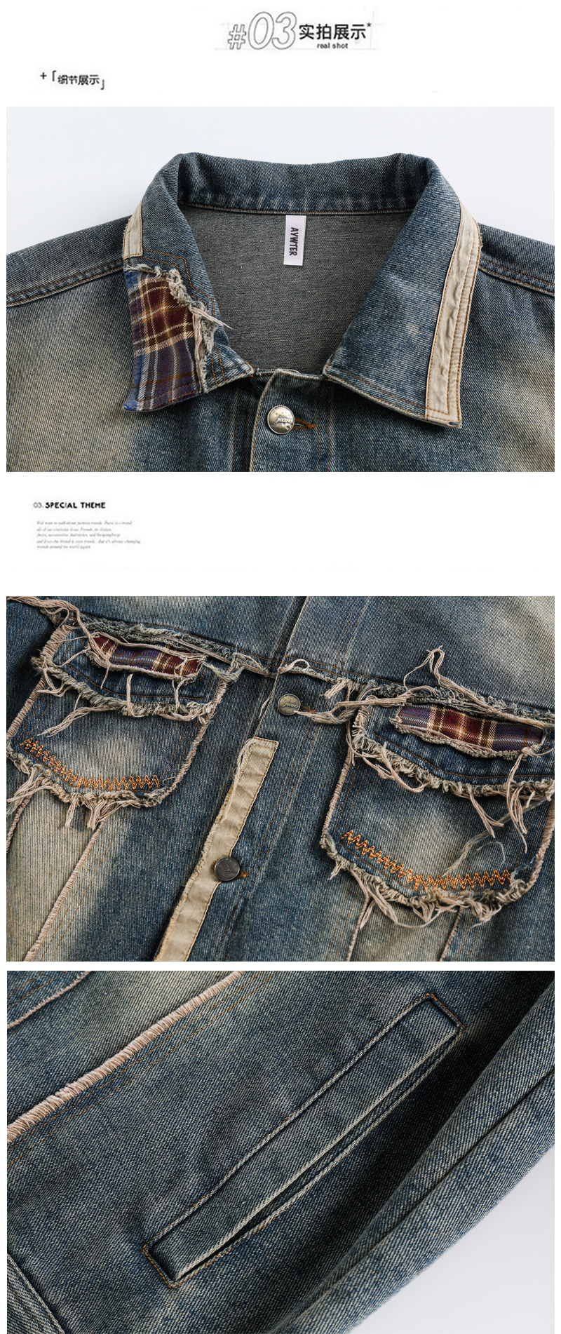 Wonderful Story American High Street Style Distressed Raw Edge Silhouette Denim Jacket Spring and Autumn New Unisex Coat