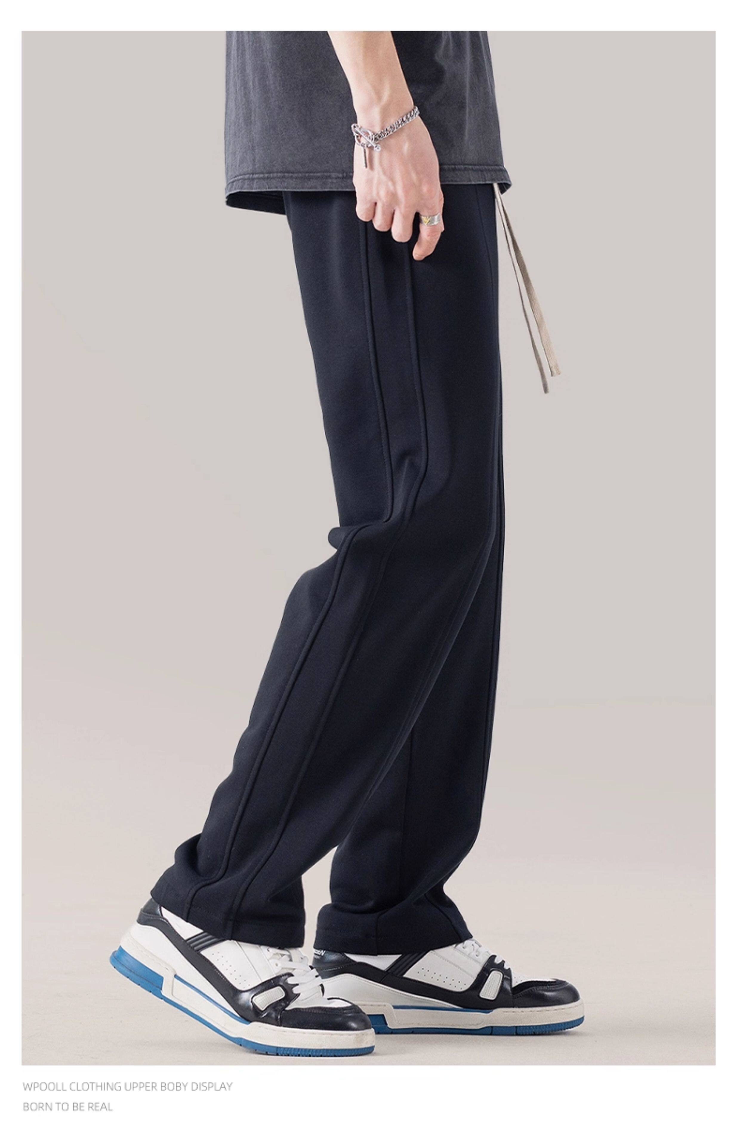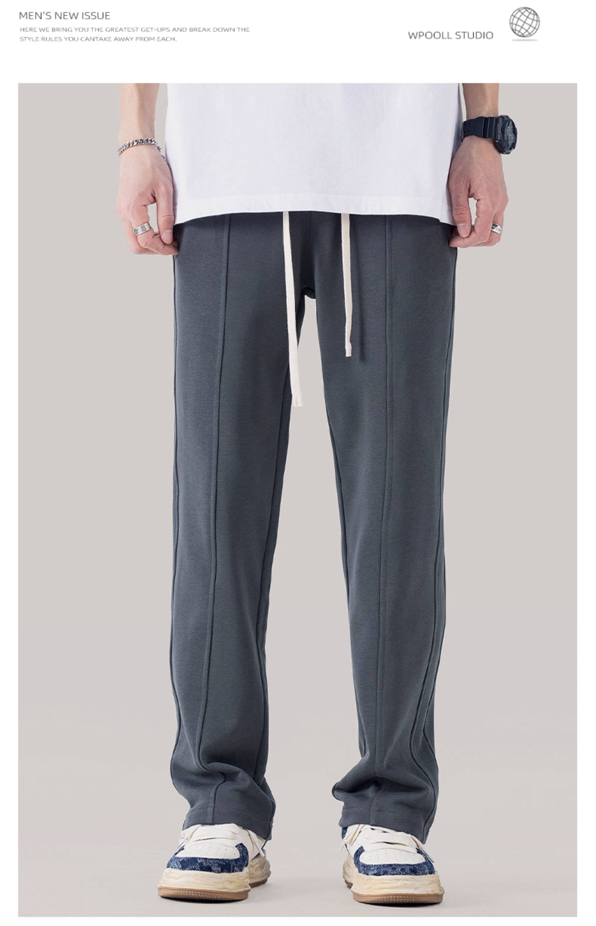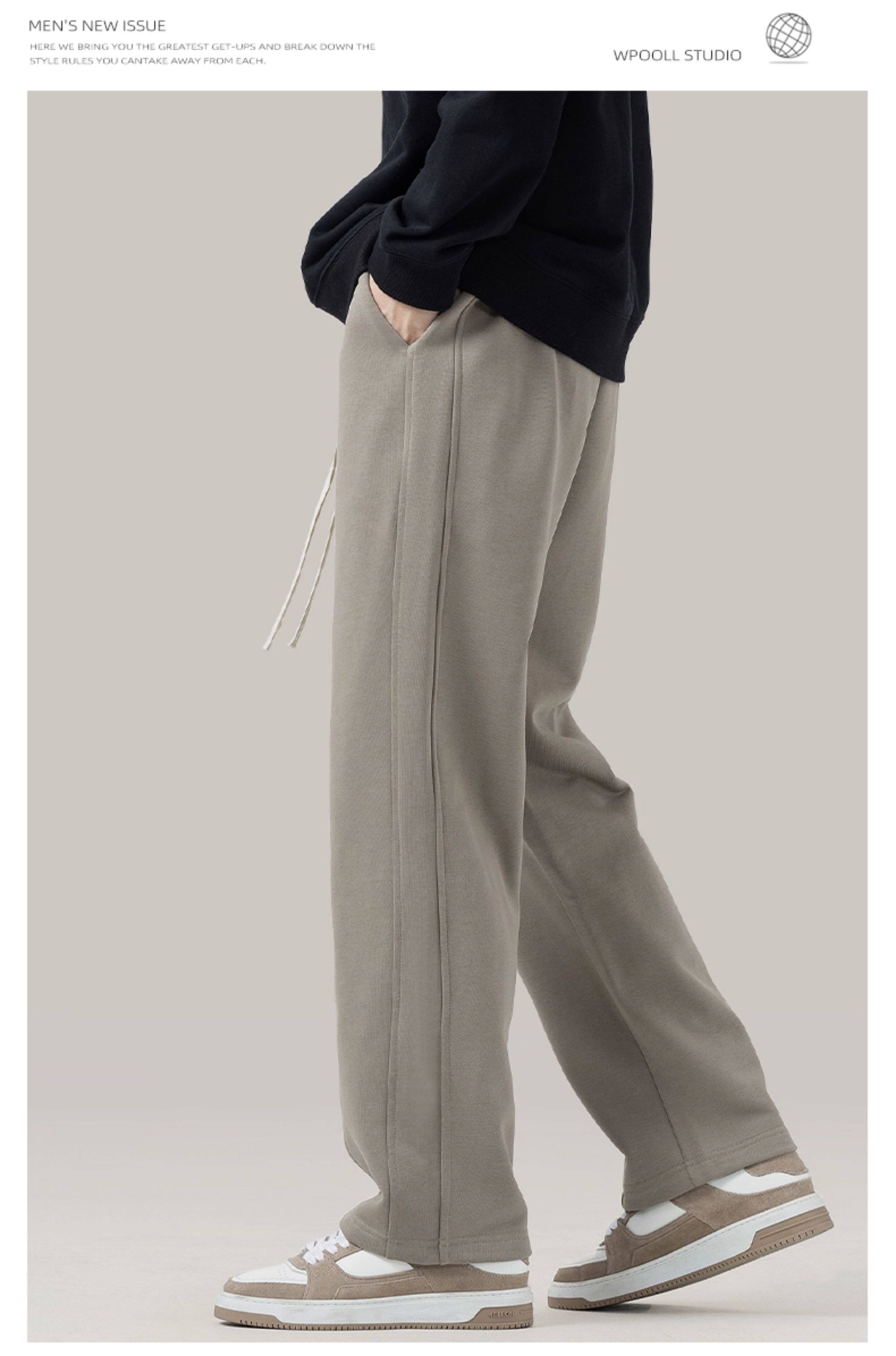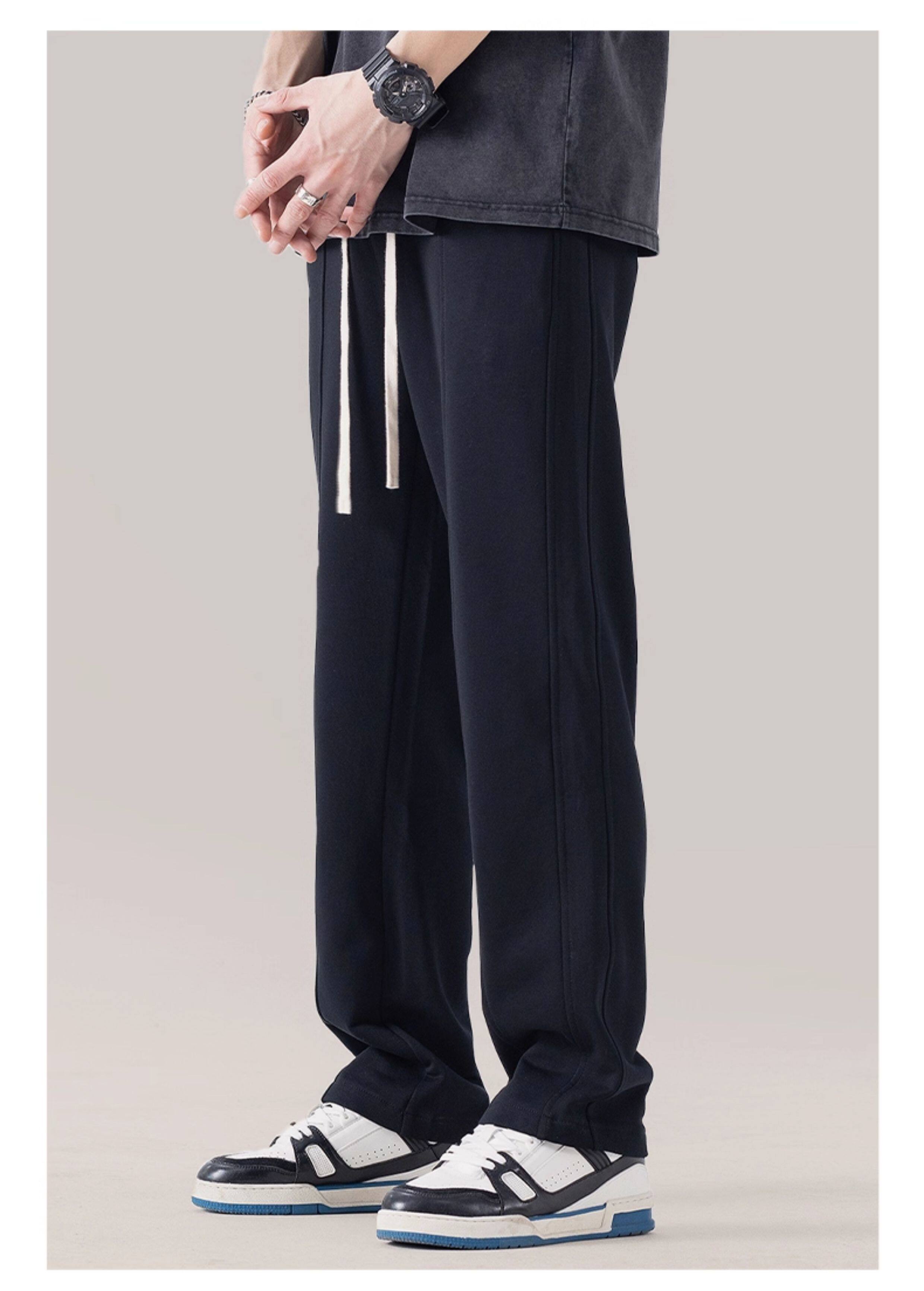 American High Street Thickened Sweatpants for Men, Autumn Trendy Brand Heavyweight Fleece-Lined Sweatpants, Loose Straight-Leg Casual Long Pants for Men