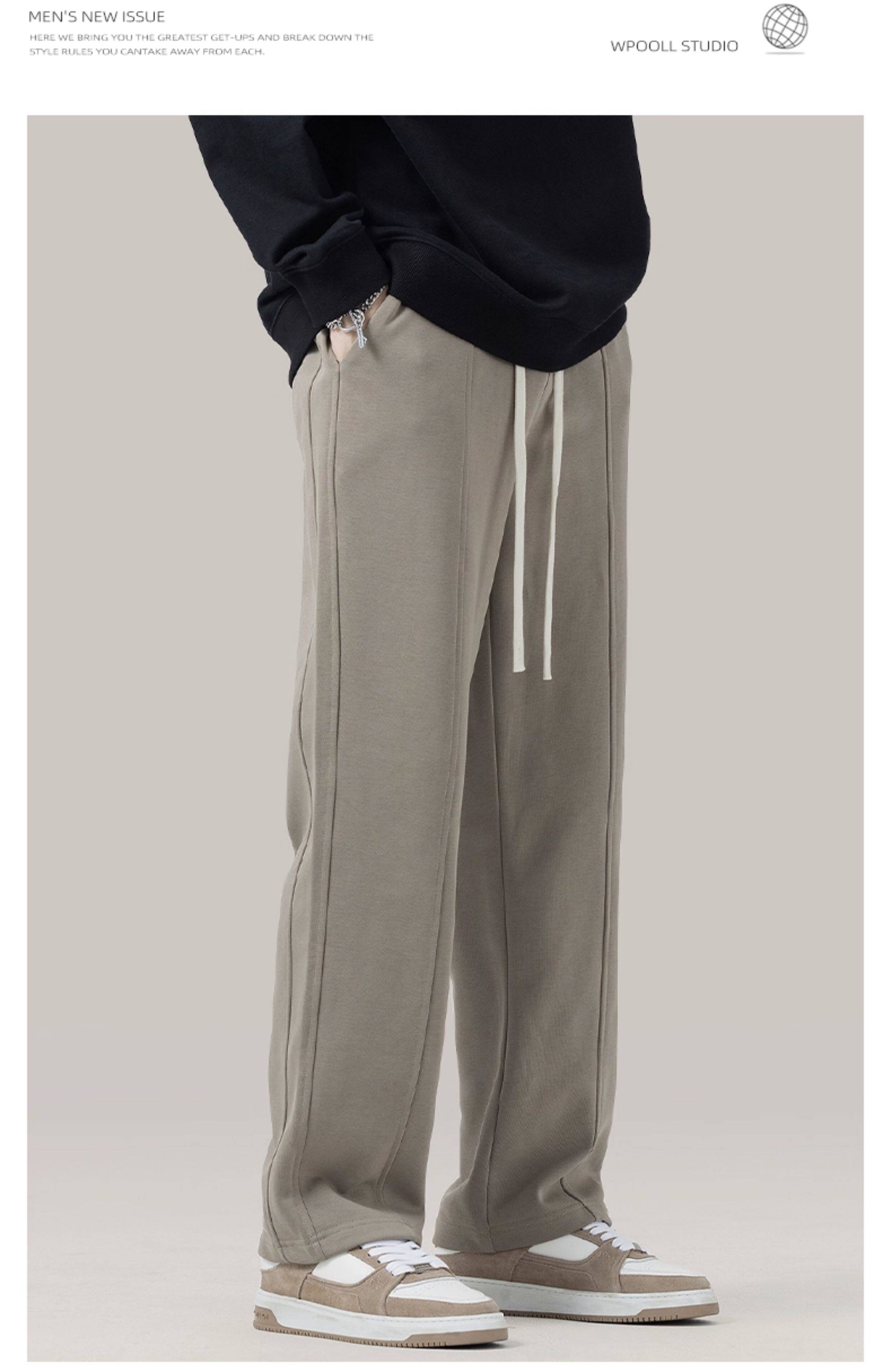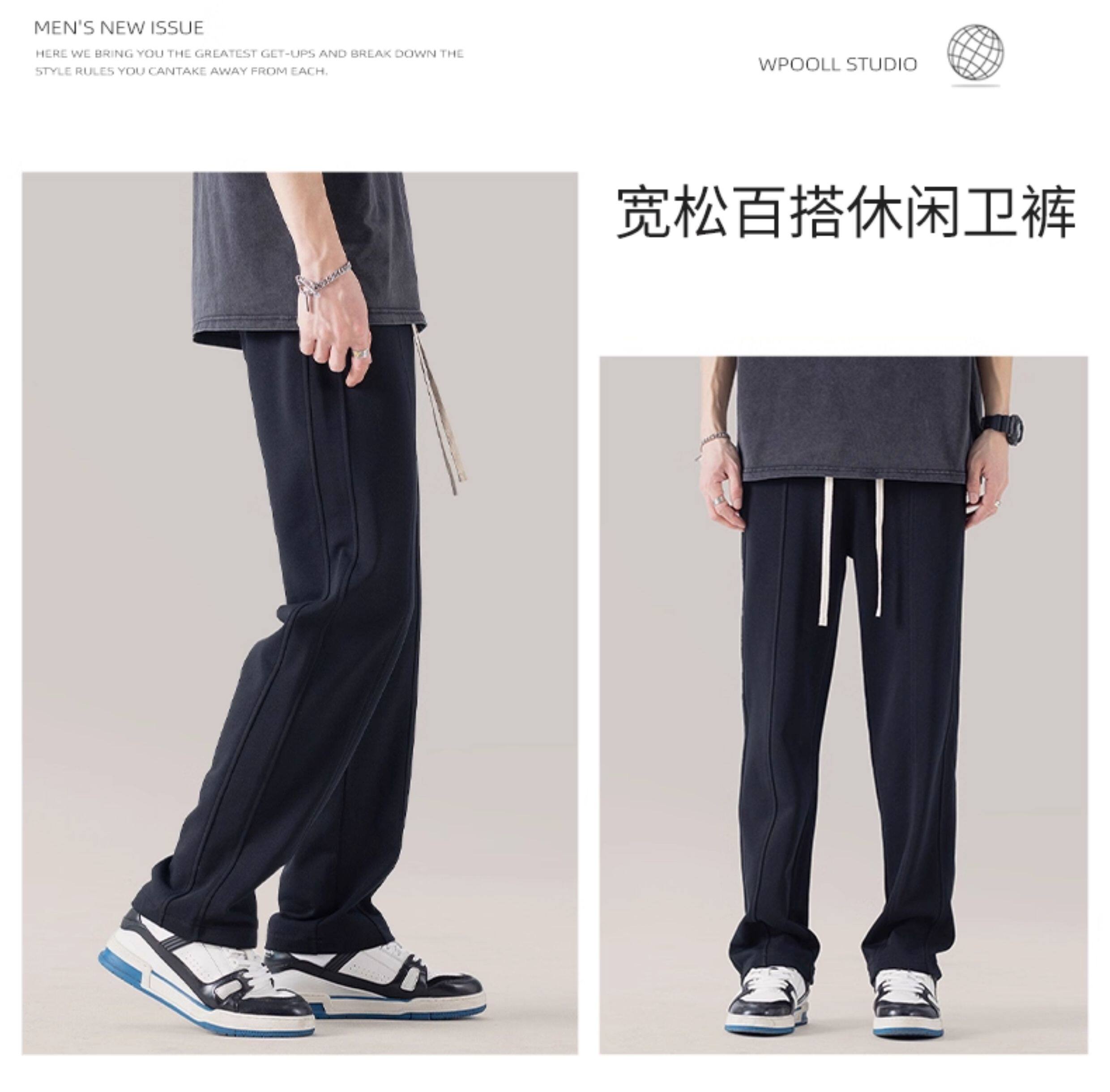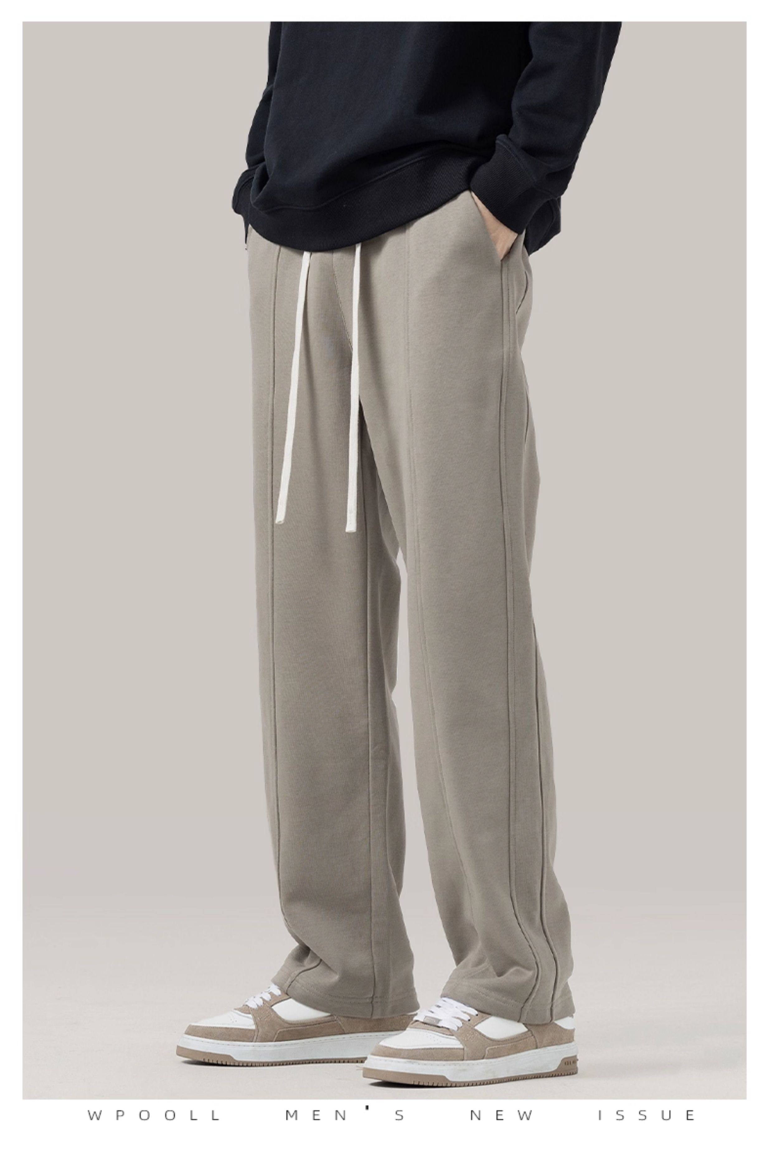 American High Street Thickened Sweatpants for Men, Autumn Trendy Brand Heavyweight Fleece-Lined Sweatpants, Loose Straight-Leg Casual Long Pants for Men