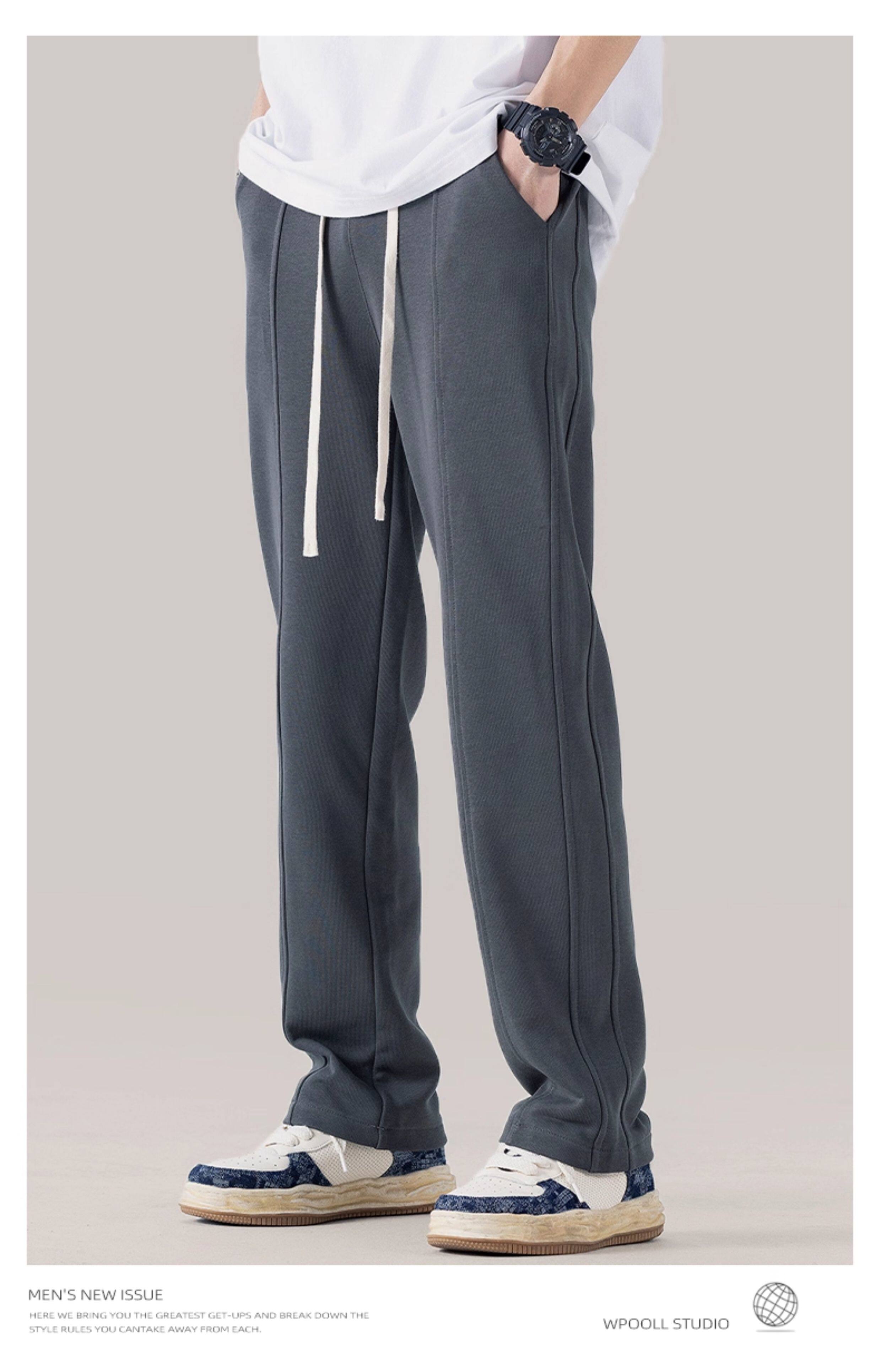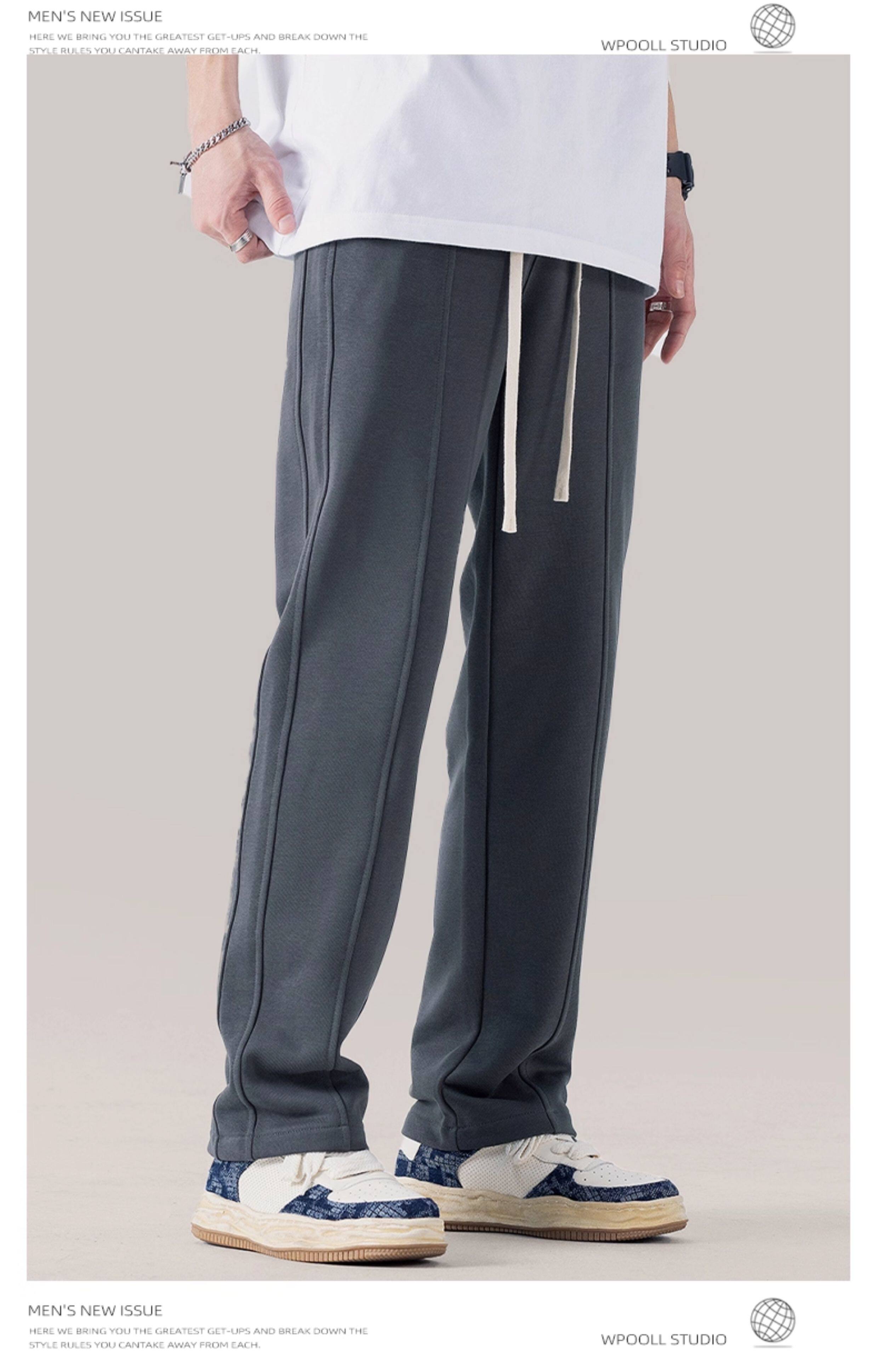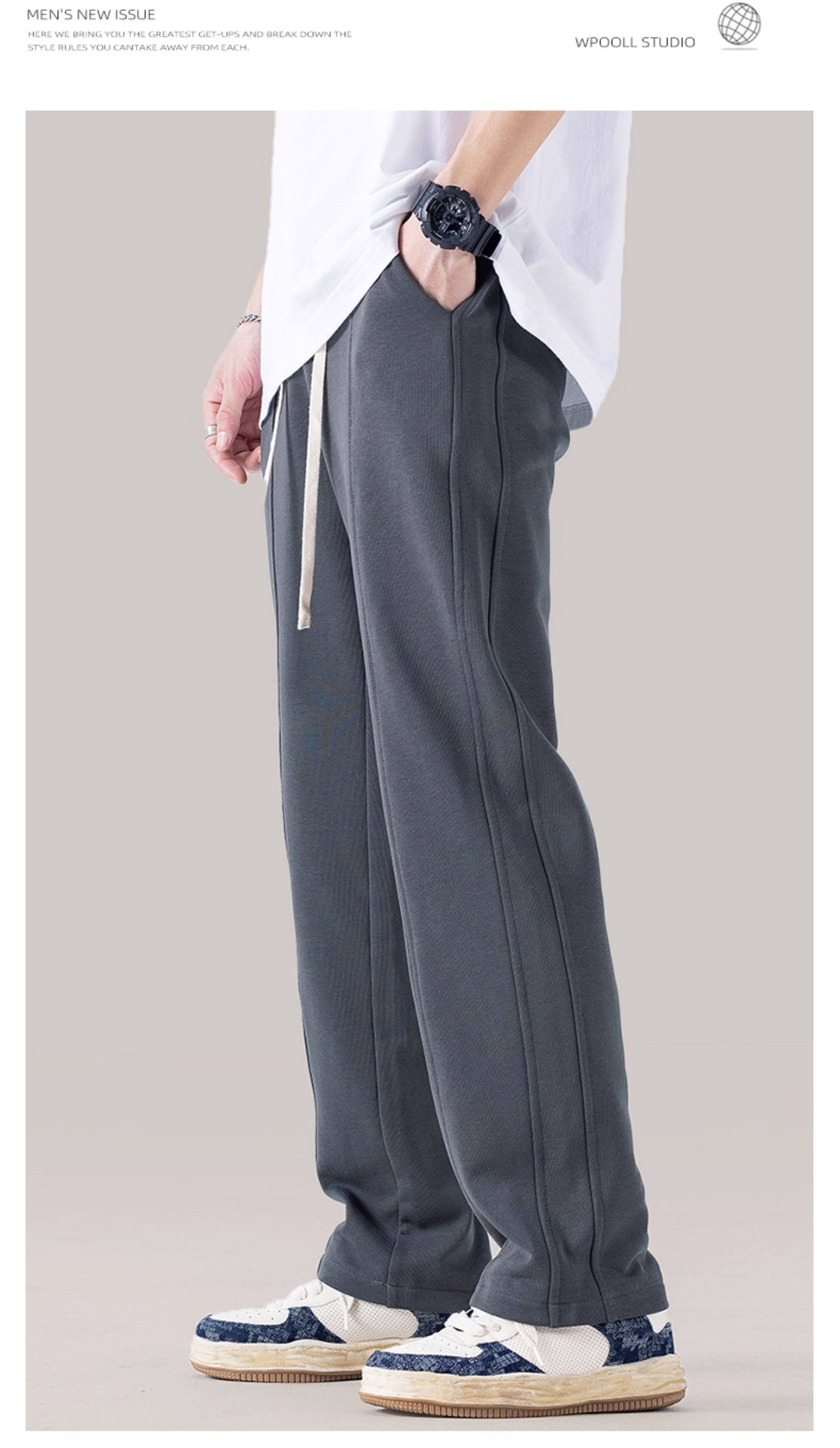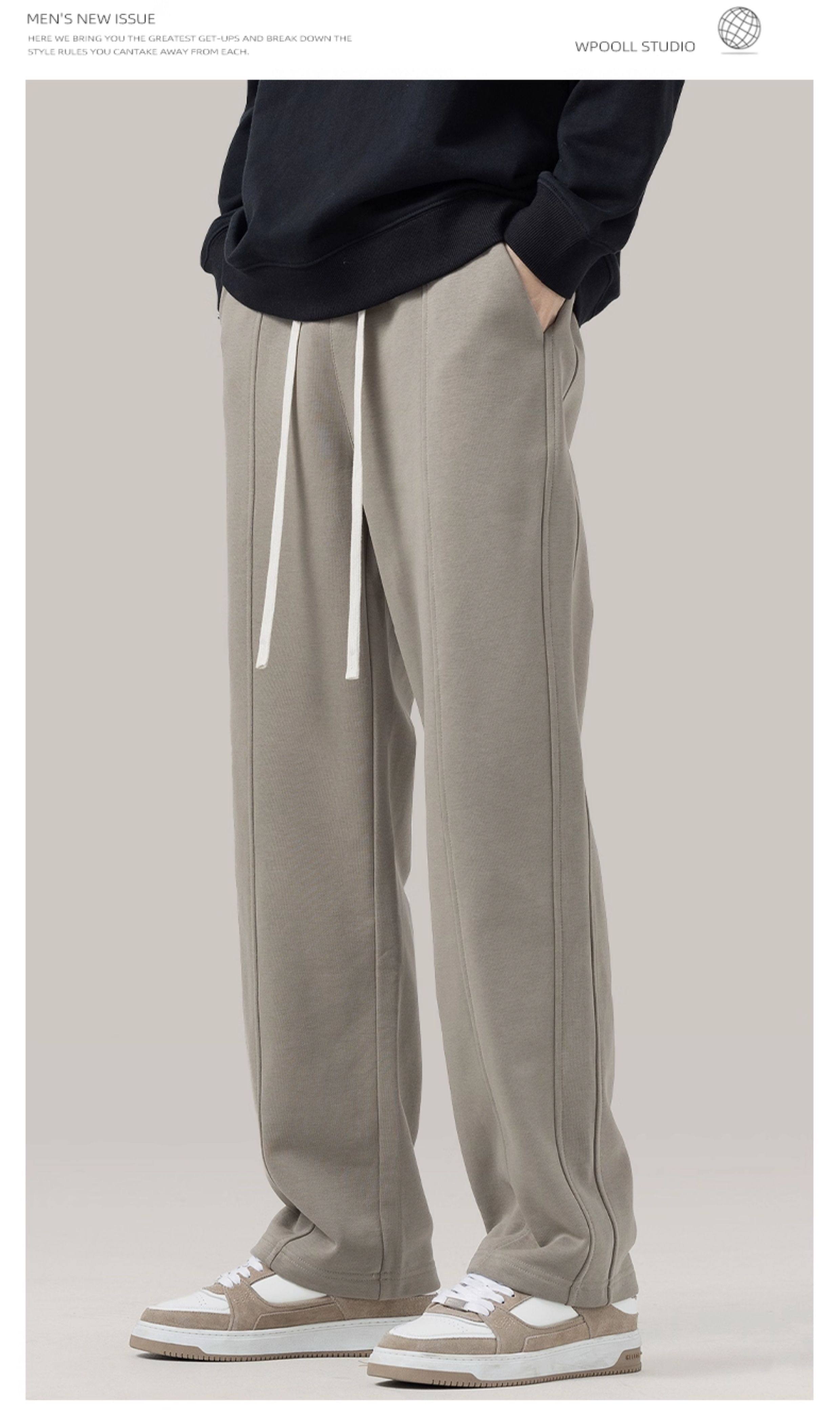 American High Street Thickened Sweatpants for Men, Autumn Trendy Brand Heavyweight Fleece-Lined Sweatpants, Loose Straight-Leg Casual Long Pants for Men