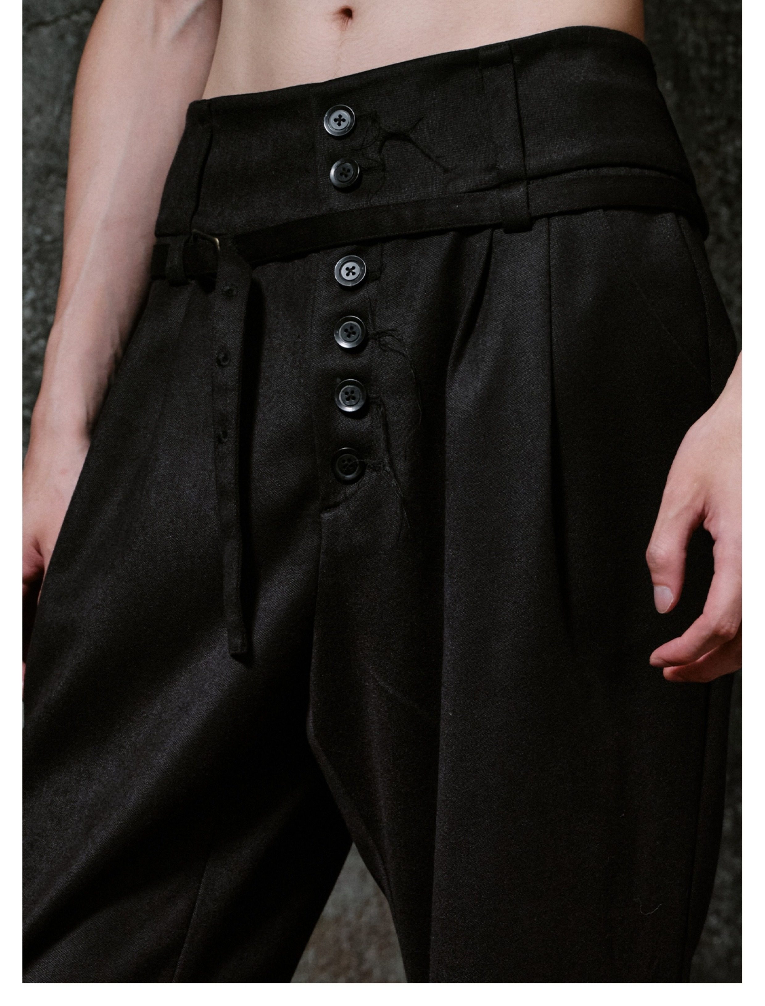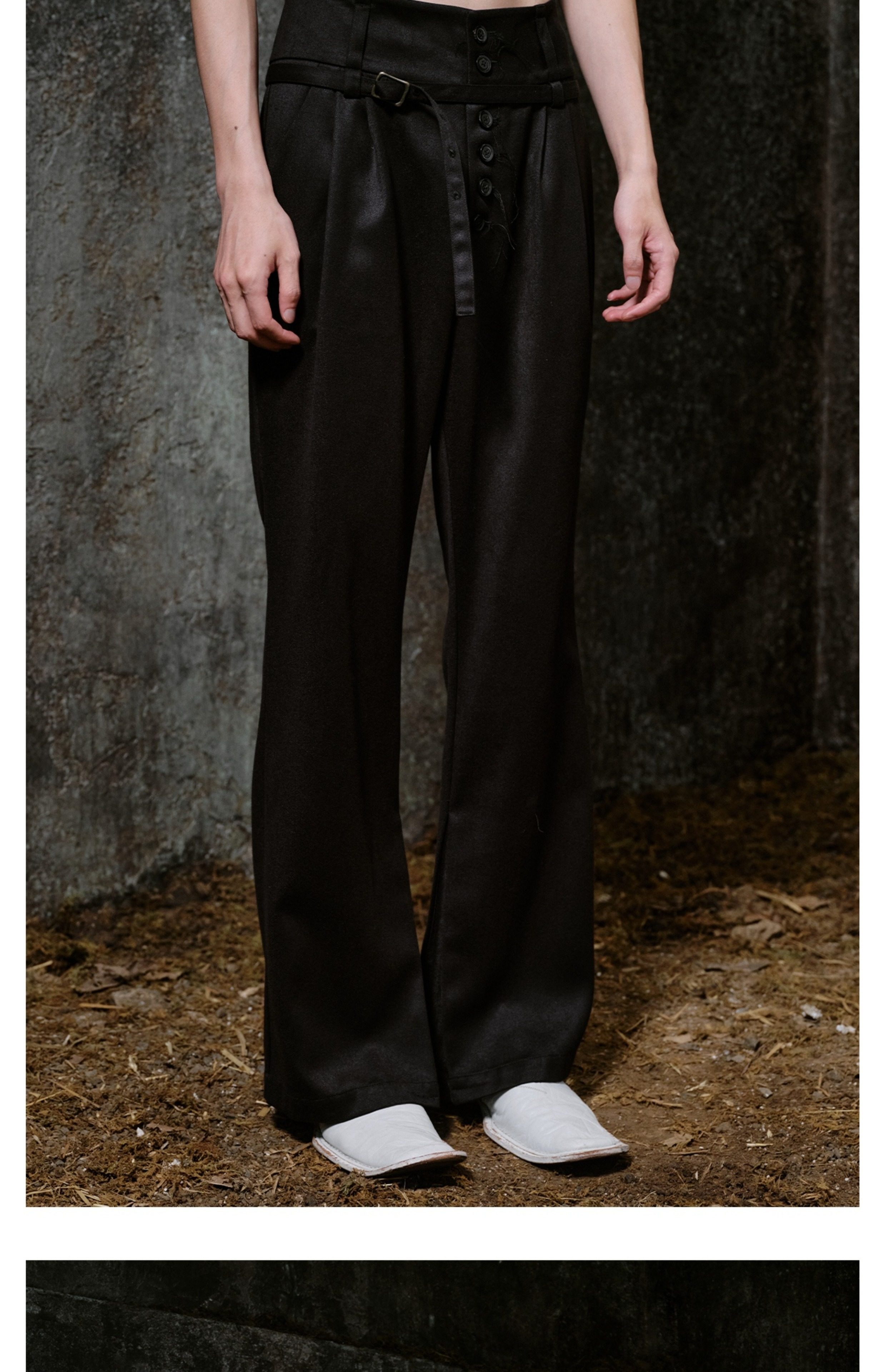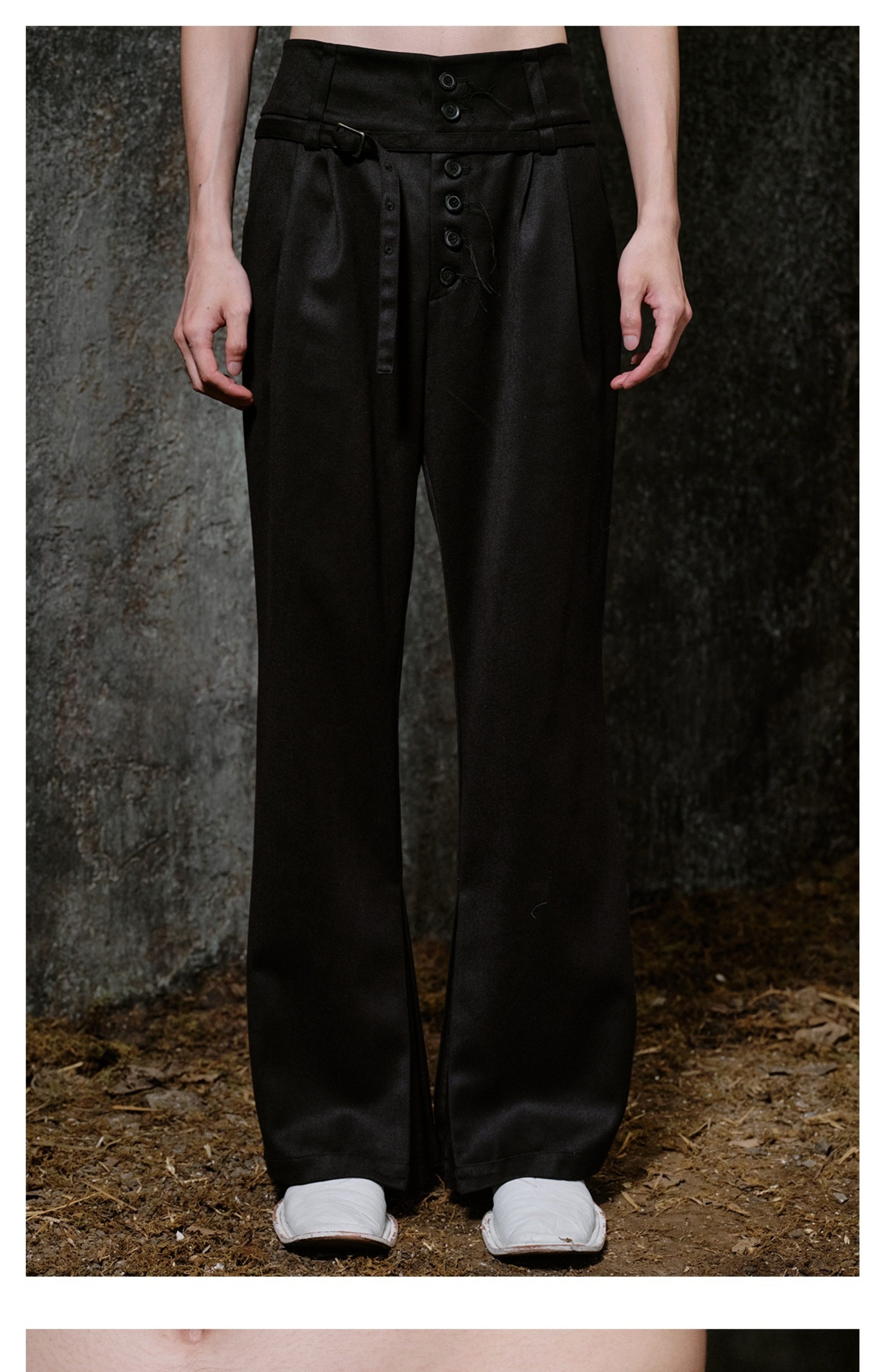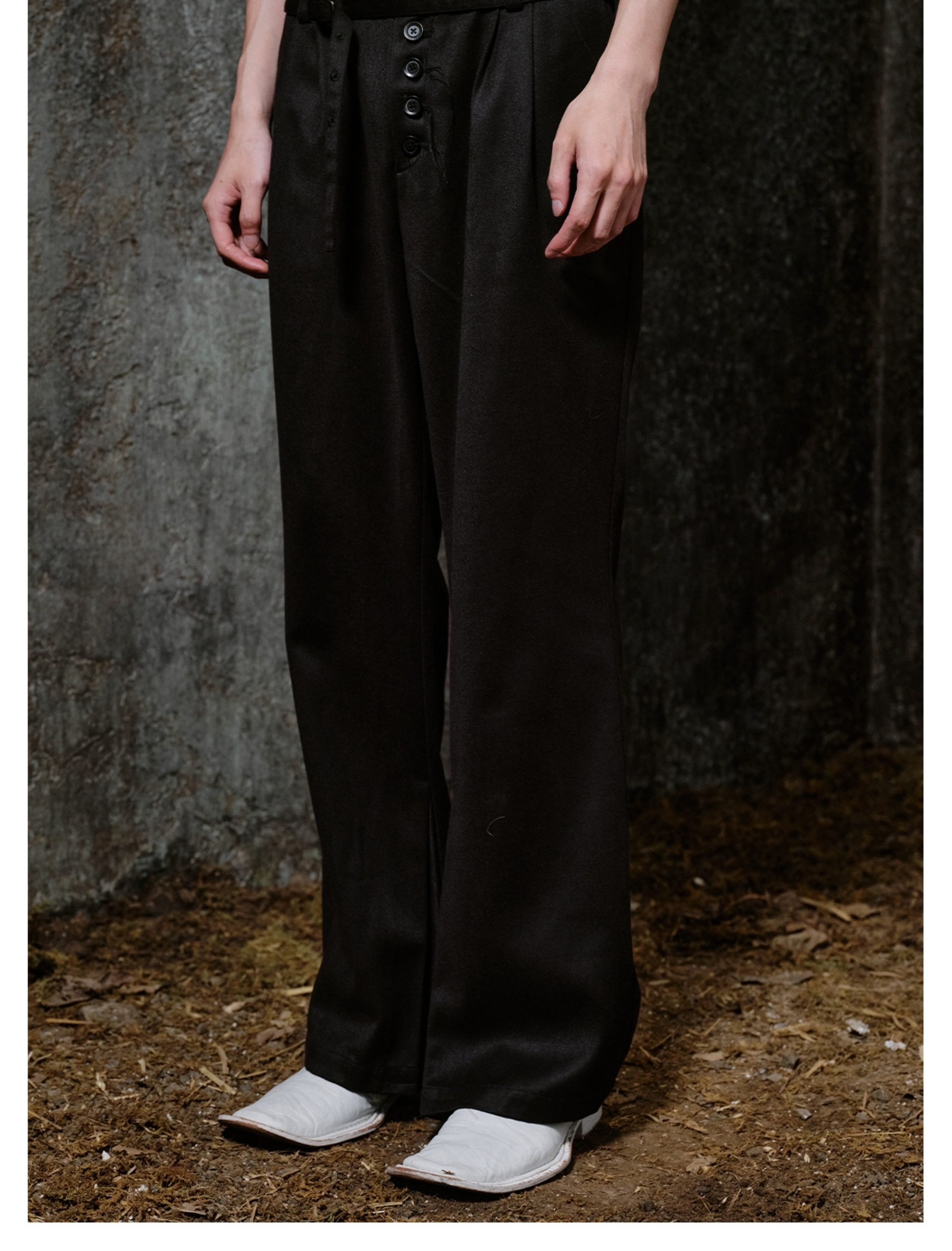 Ilnya Black Buttoned Flared Pants Wool Pleated Versatile Comfortable High-Waisted Trousers