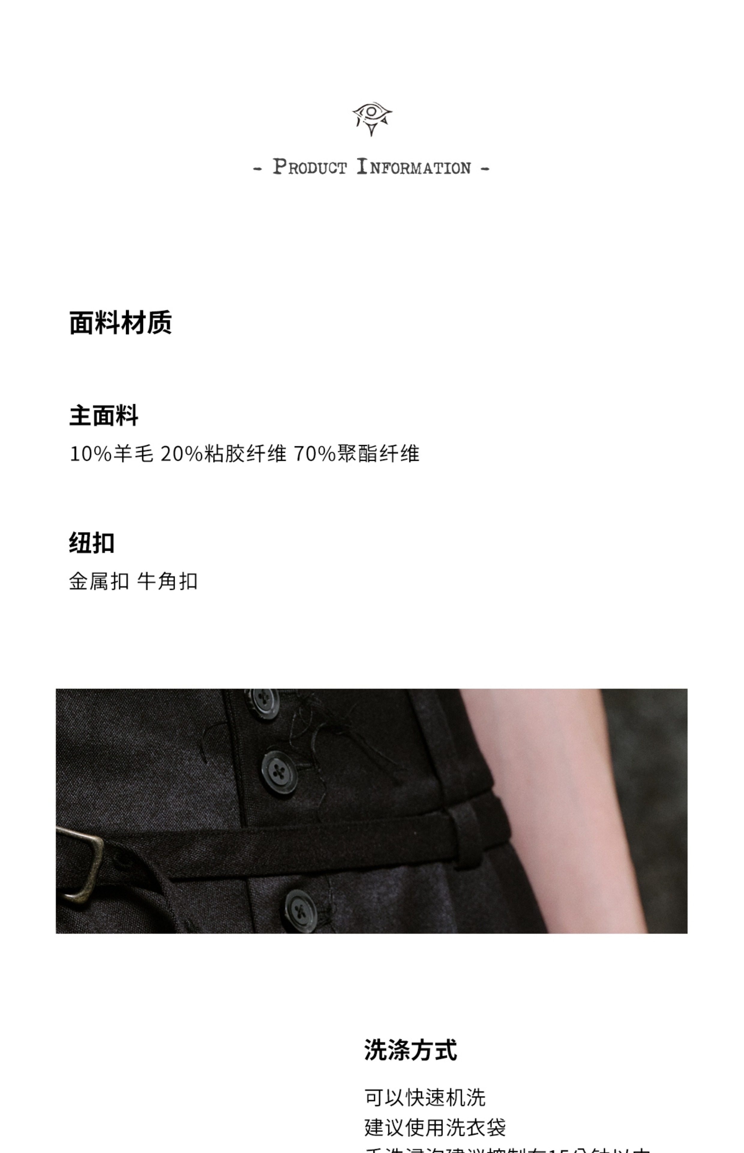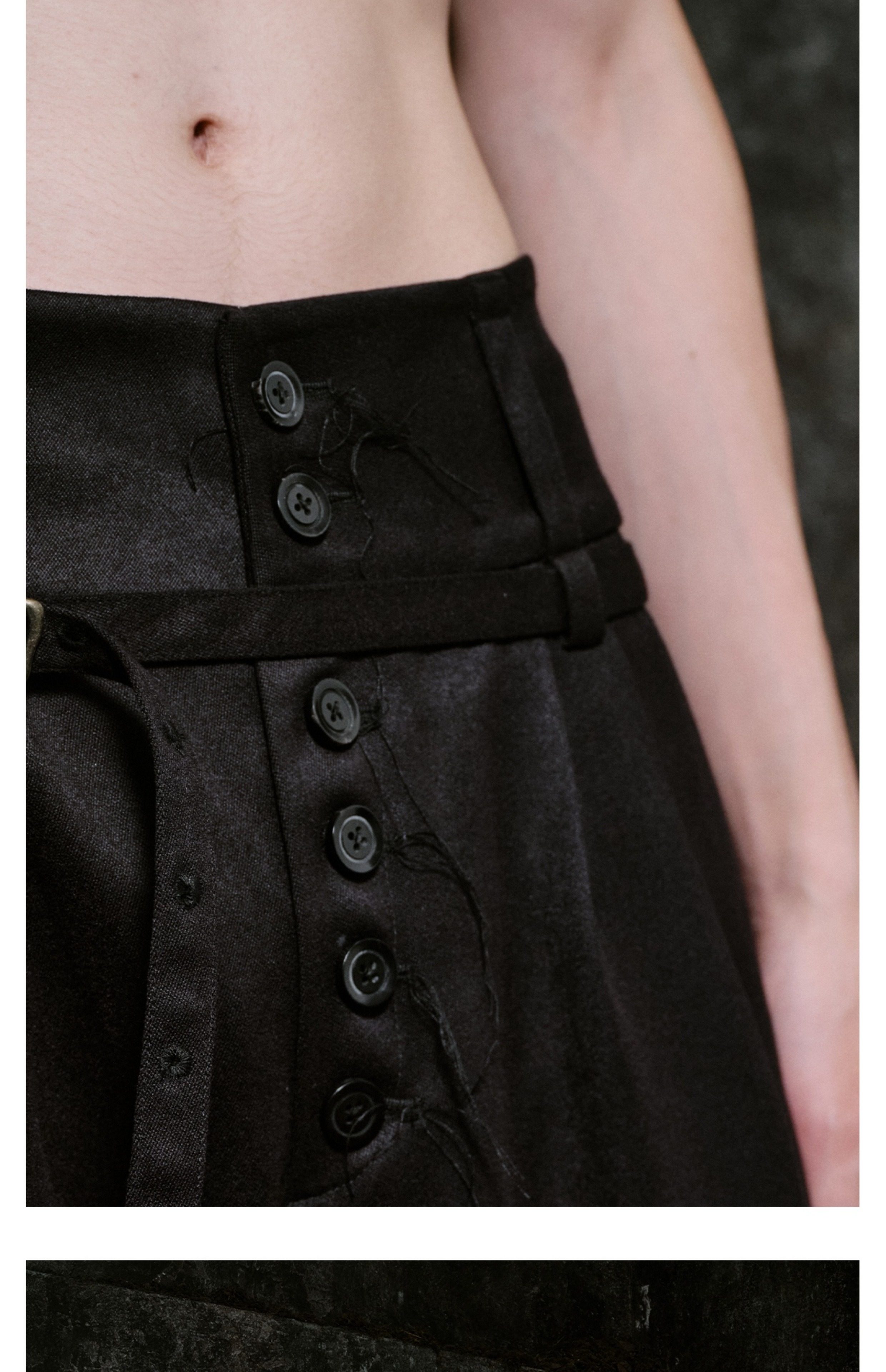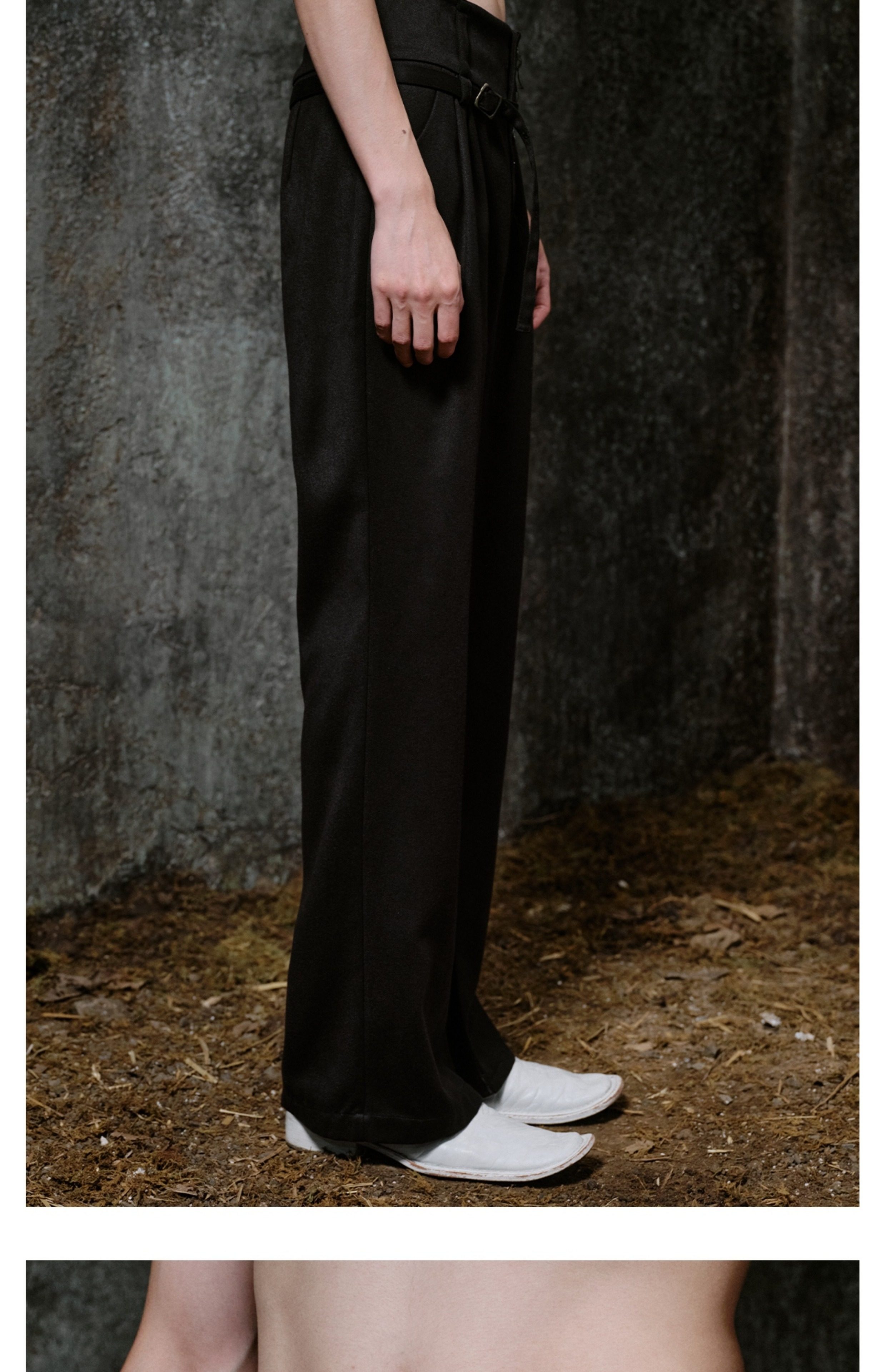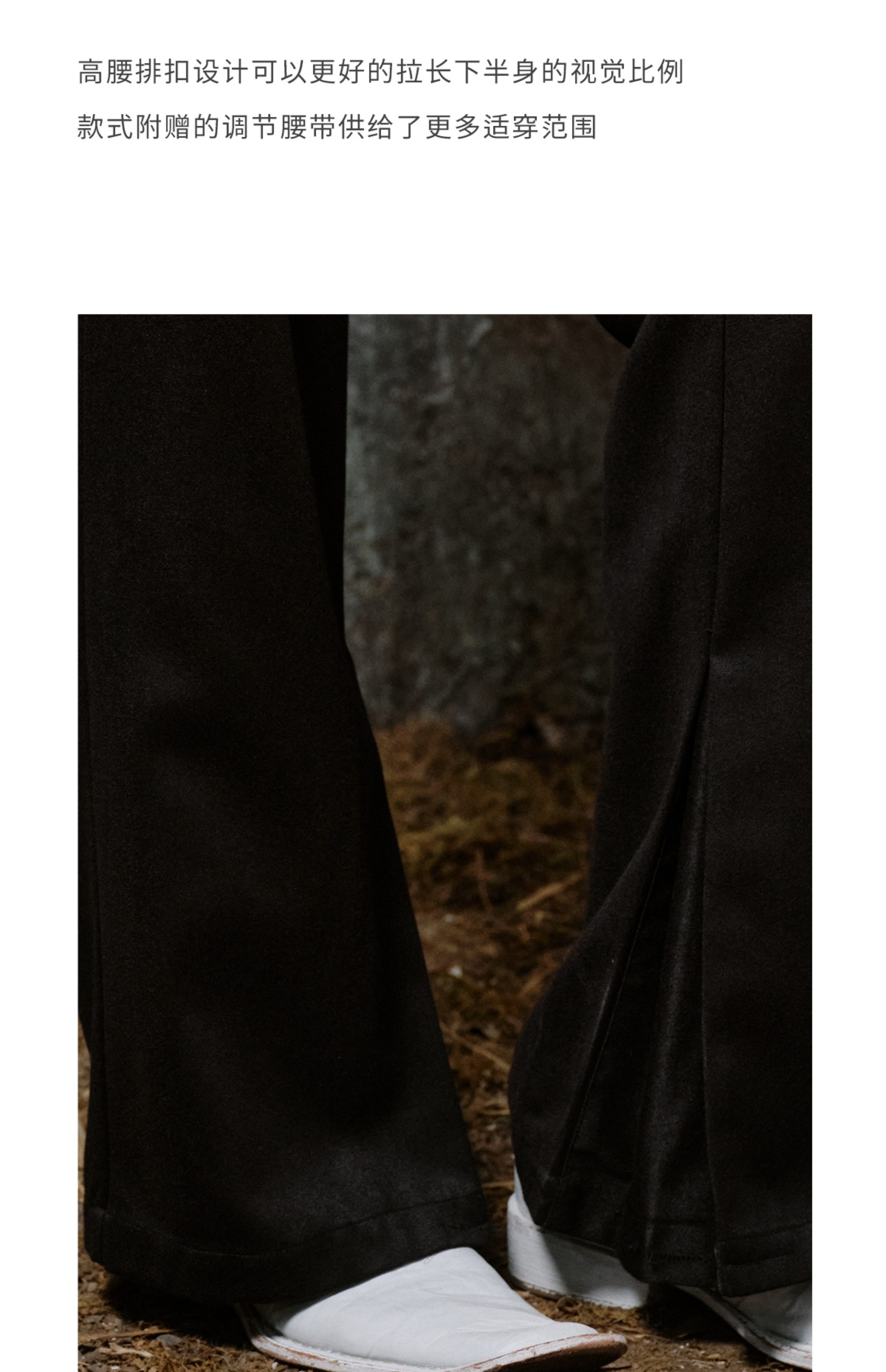 Ilnya Black Buttoned Flared Pants Wool Pleated Versatile Comfortable High-Waisted Trousers