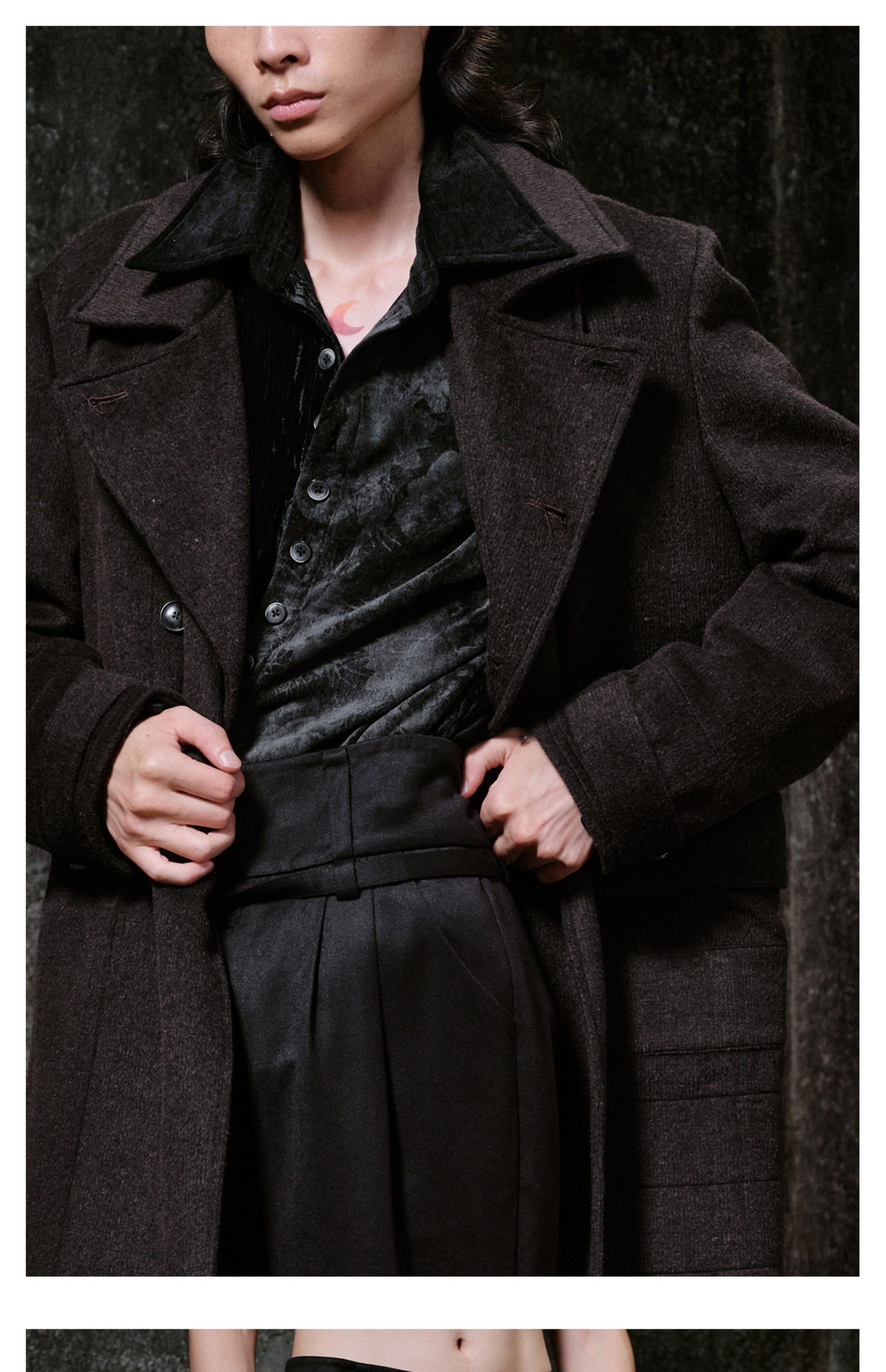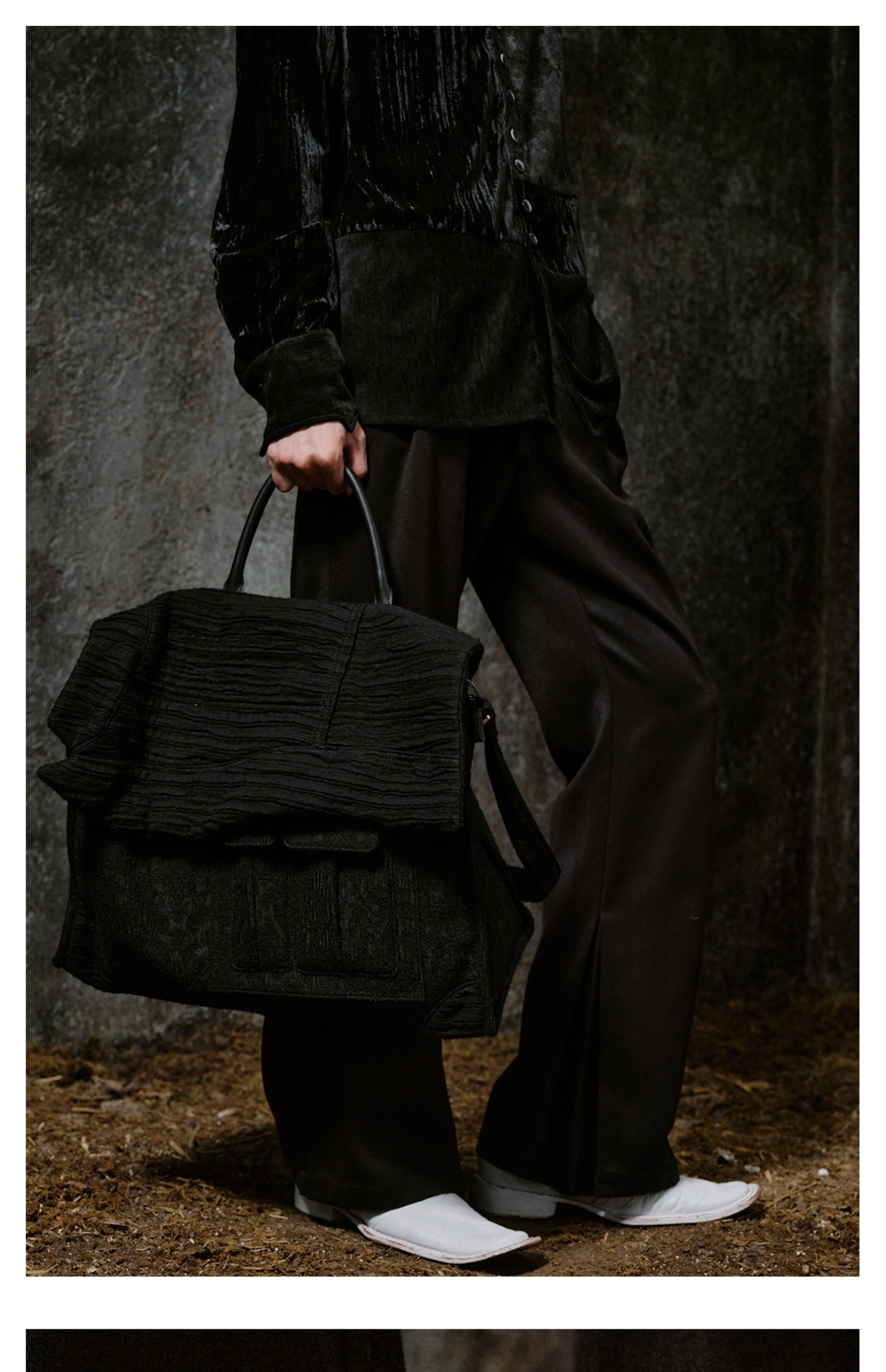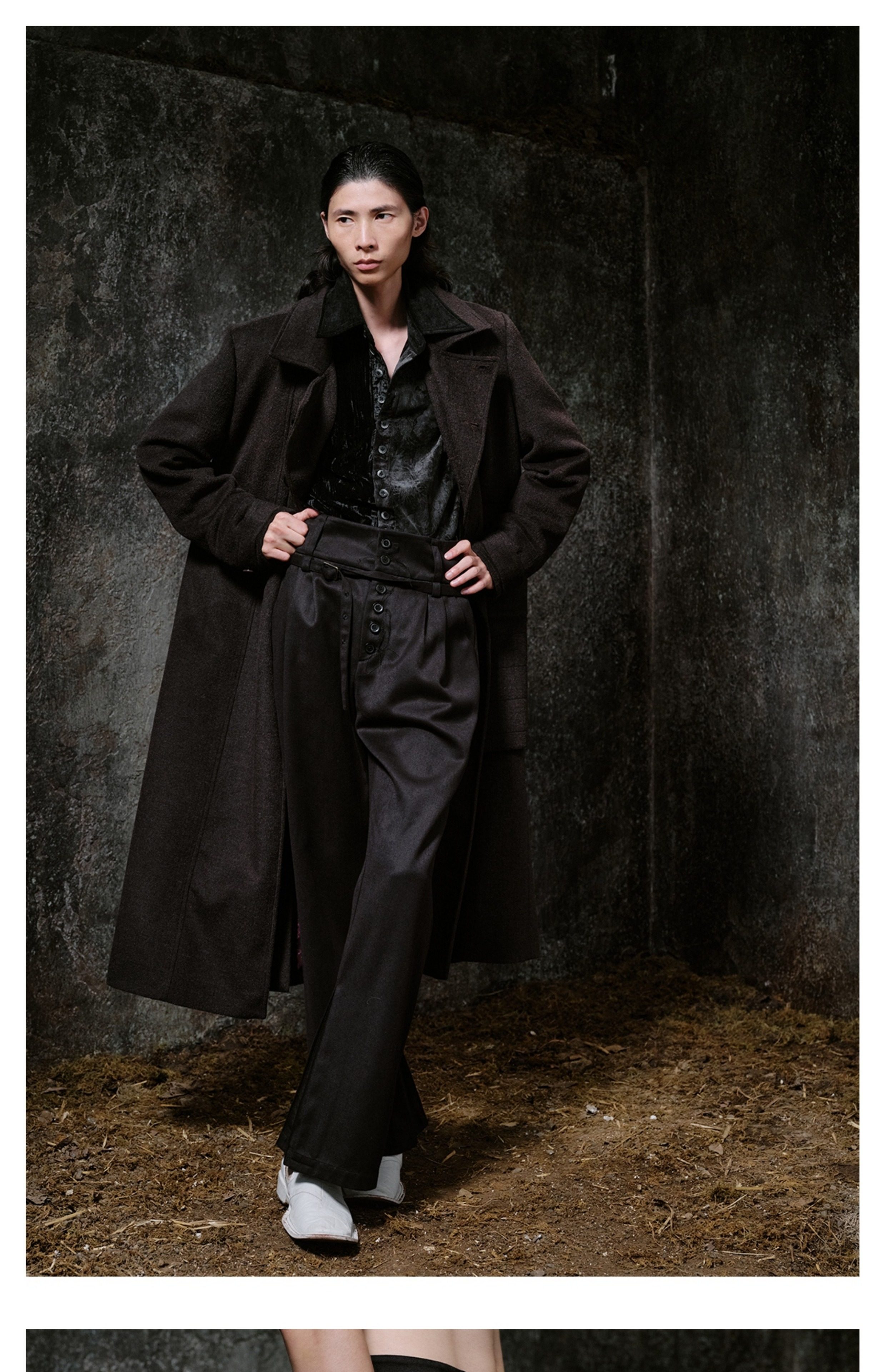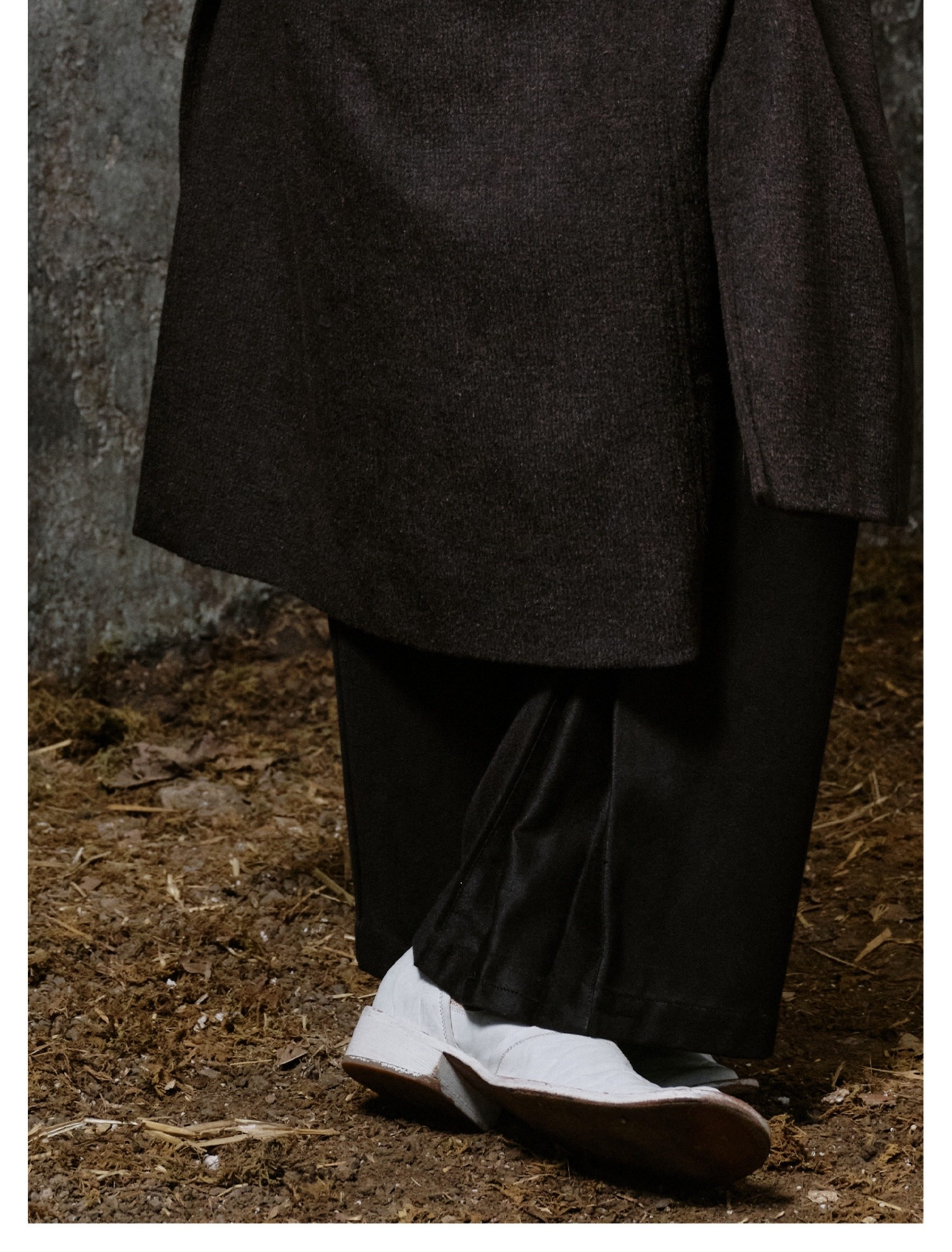 Ilnya Black Buttoned Flared Pants Wool Pleated Versatile Comfortable High-Waisted Trousers