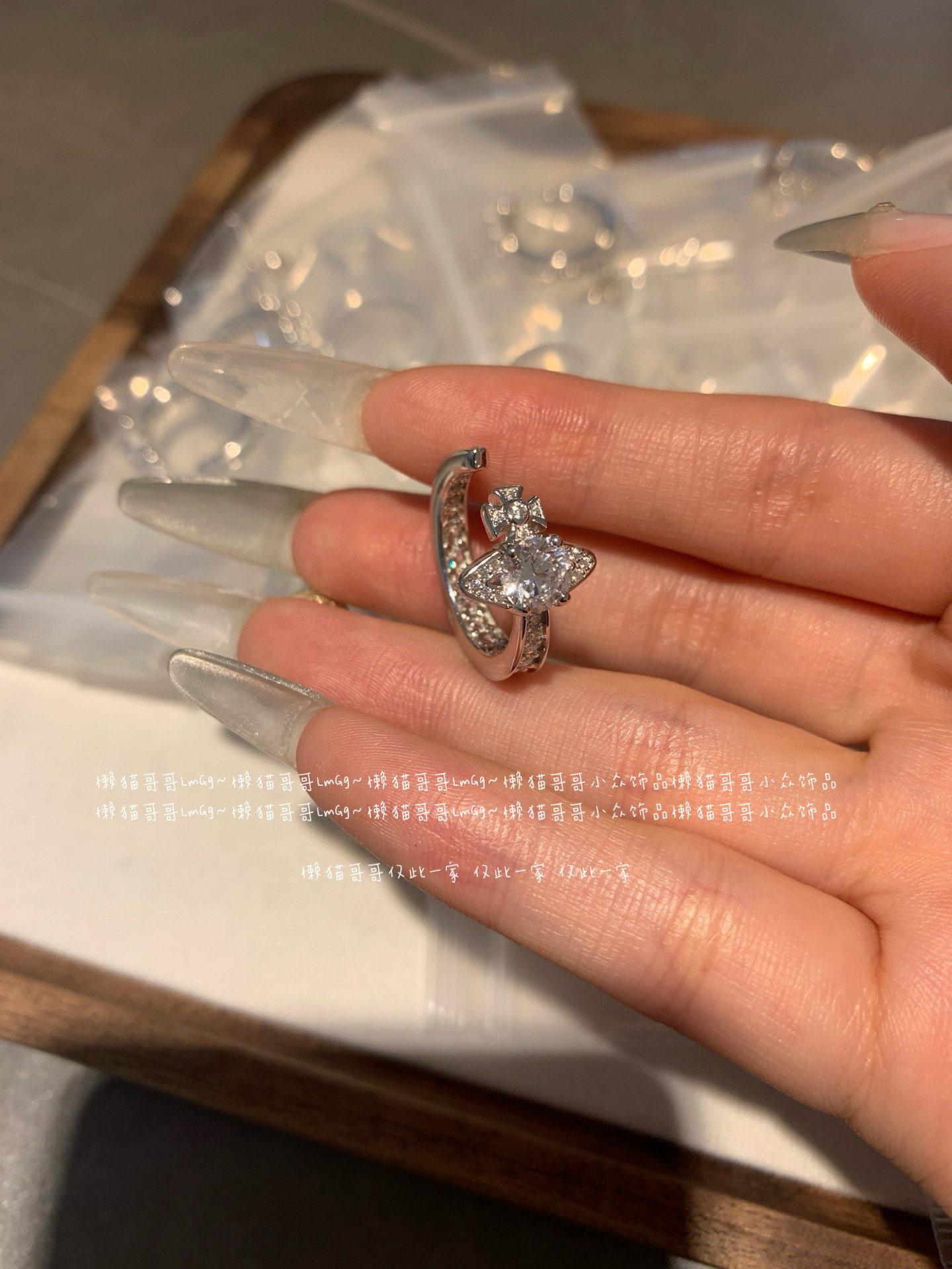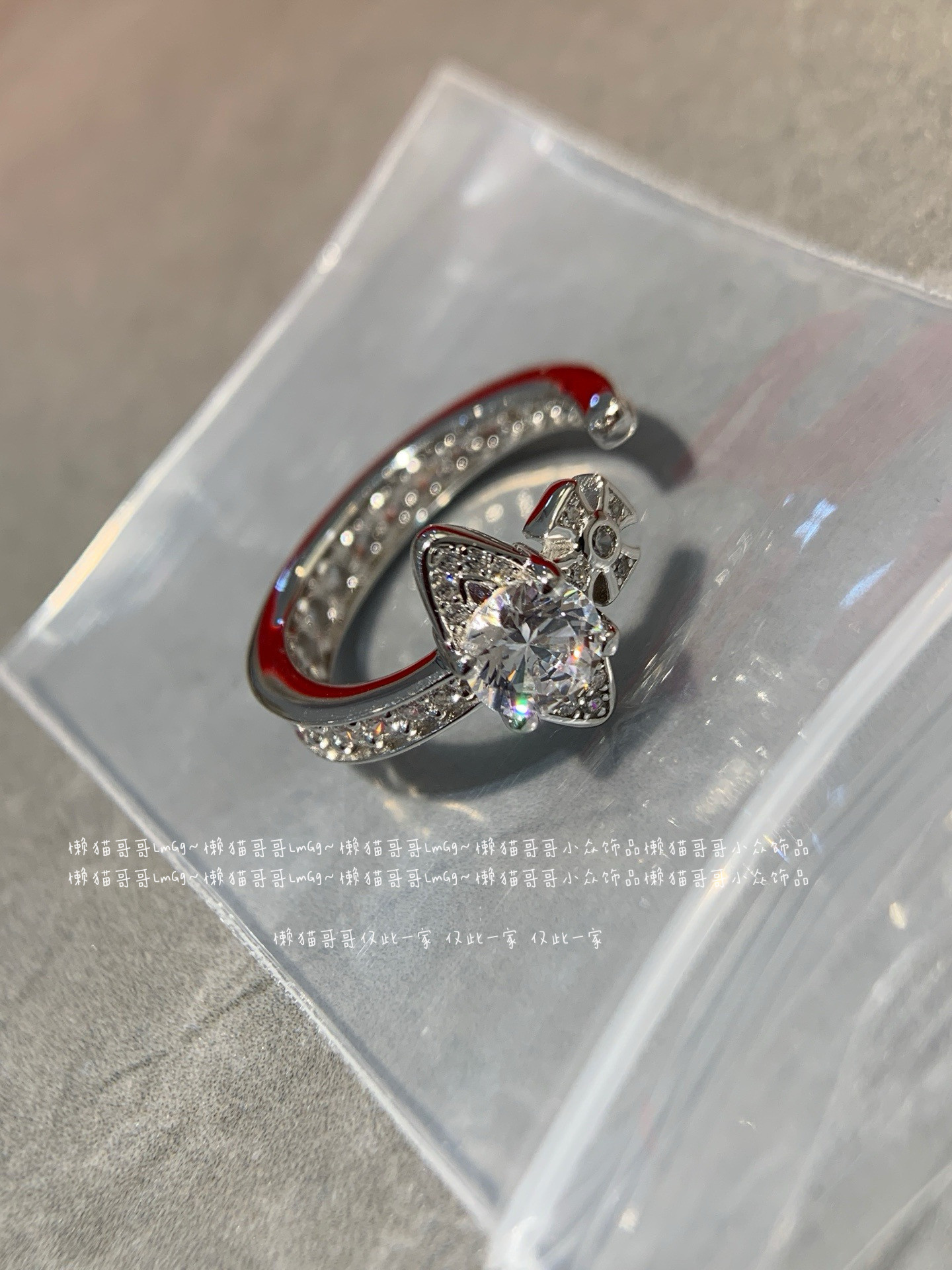 Lazy Cat Brother|Diamond Level! Classic Side-Lying Saturn Full Diamond Ring Versatile for Daily Commuting Pure Silver 925