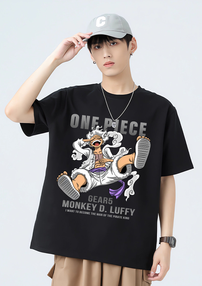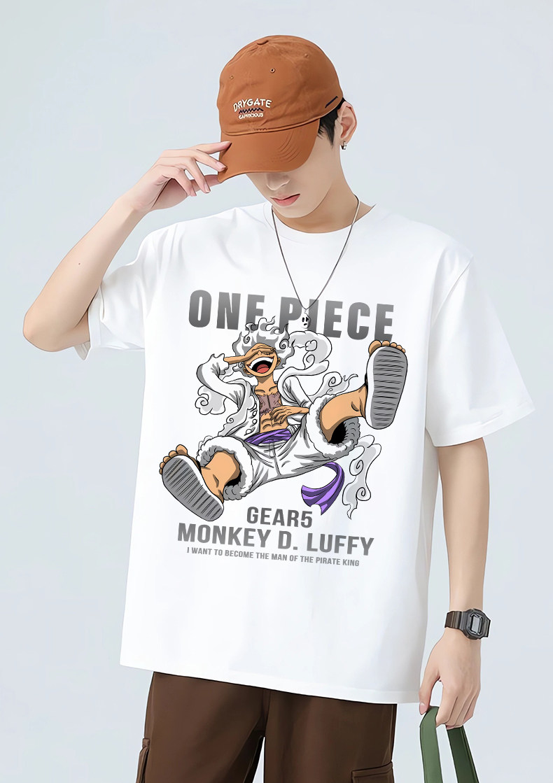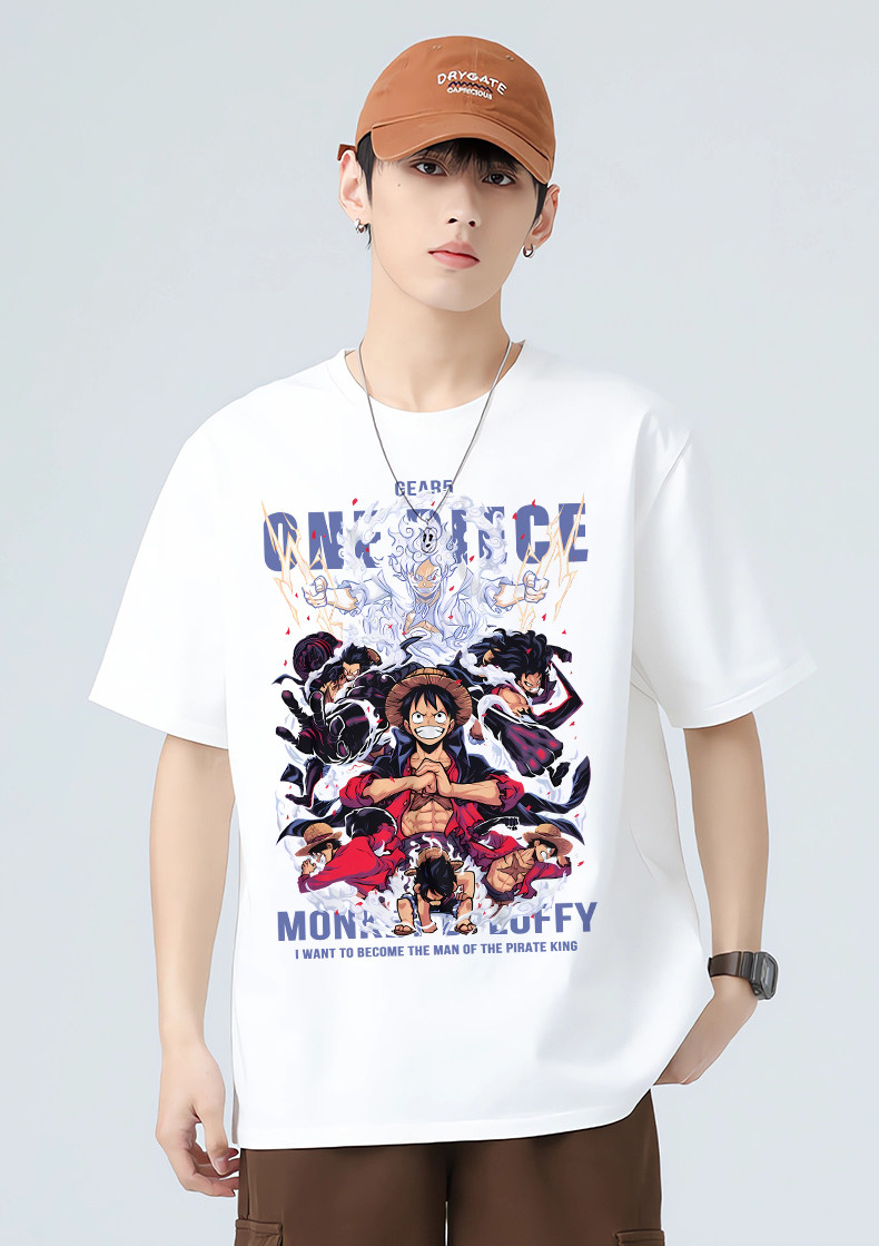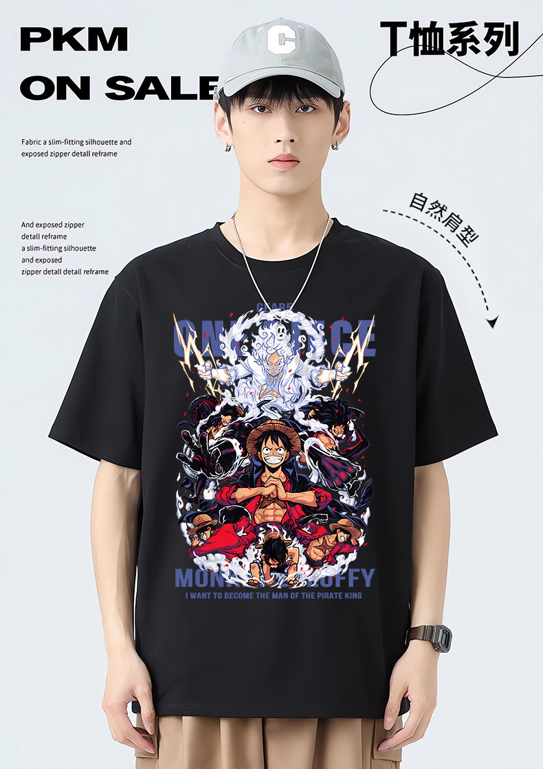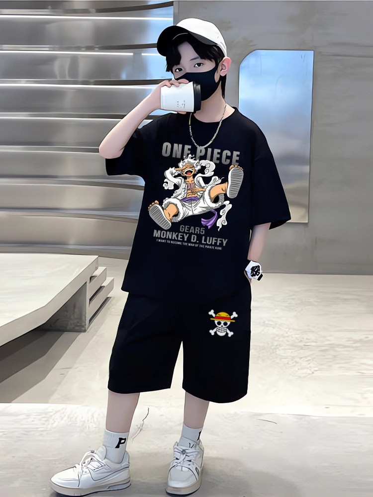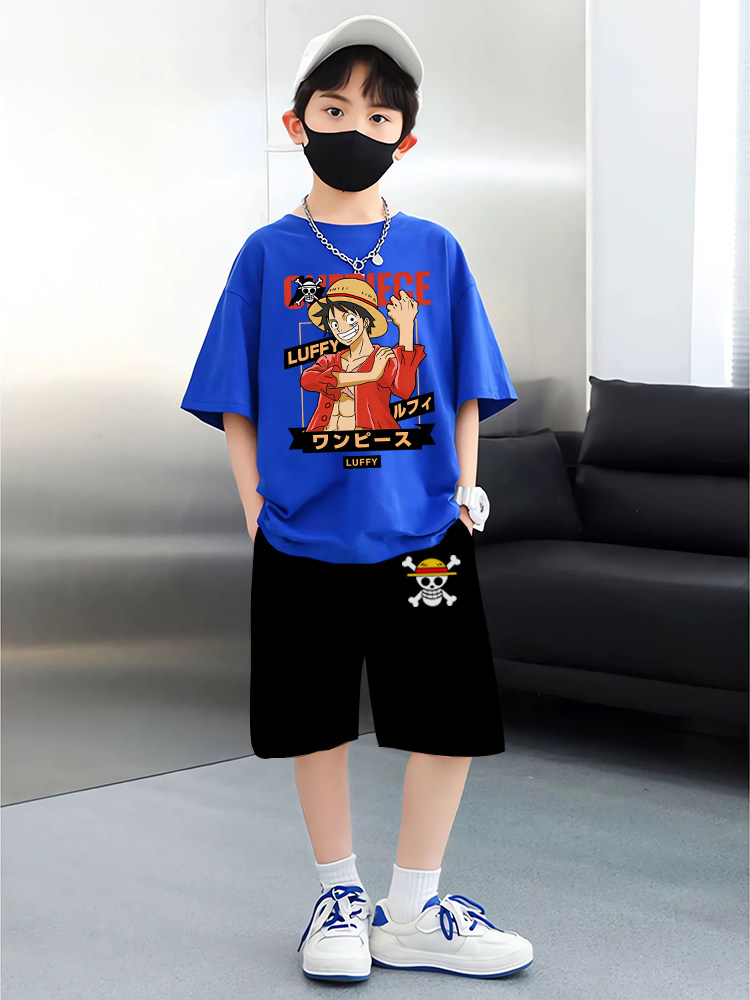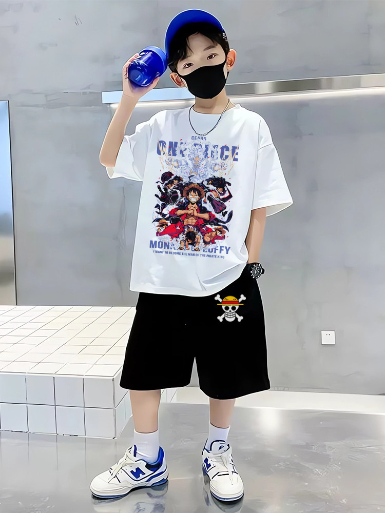 One Piece Merchandise Short-Sleeve T-Shirt for Boys, Luffy Trendy Loose-Fitting Children's Top