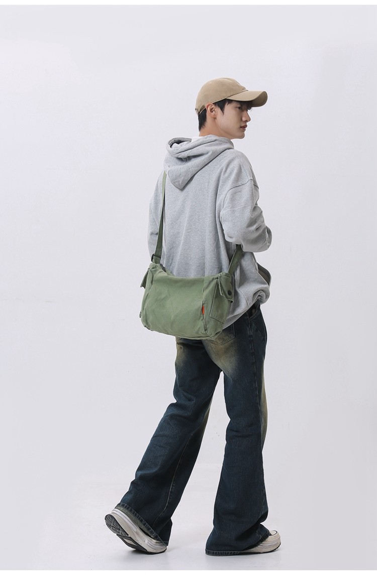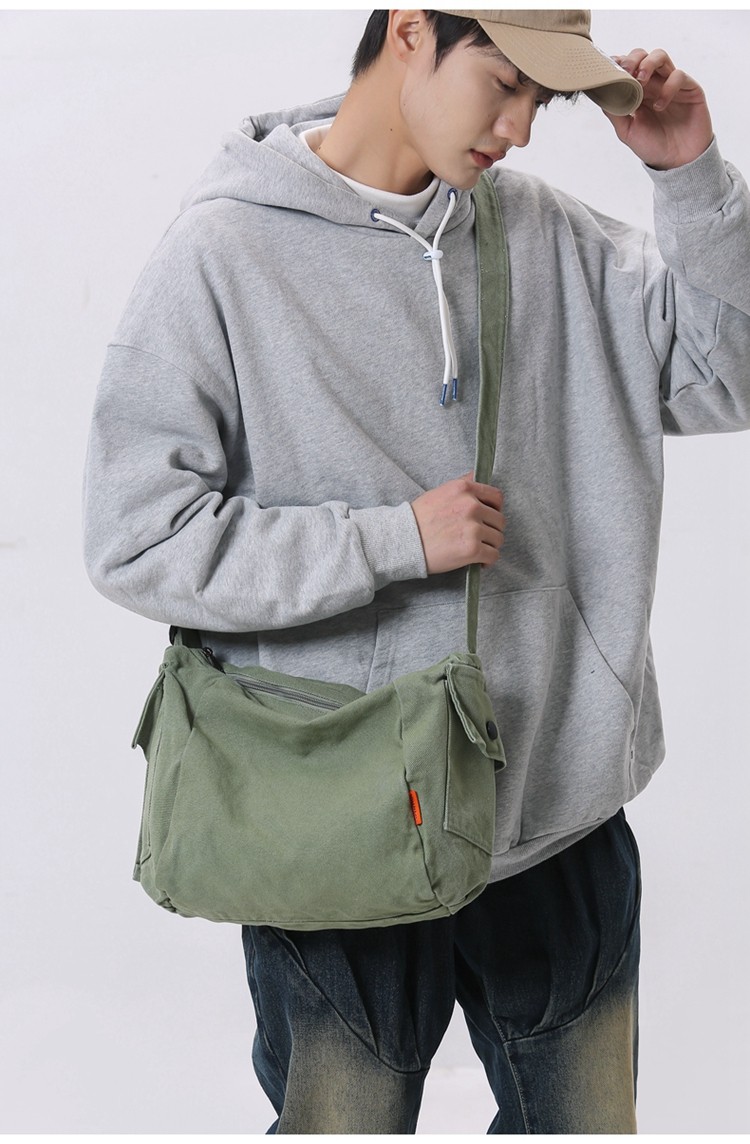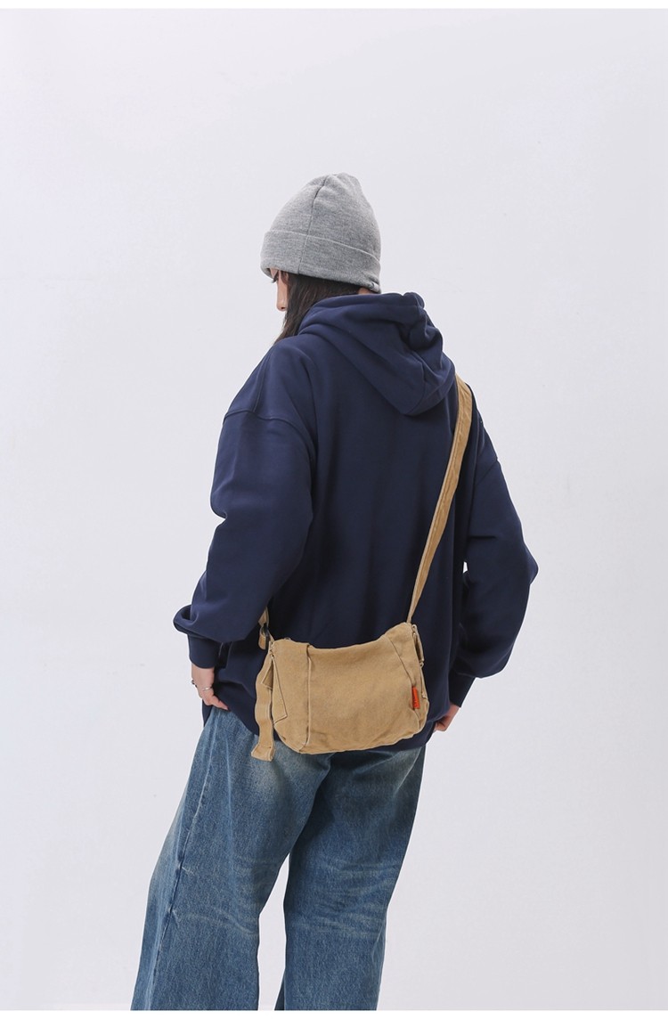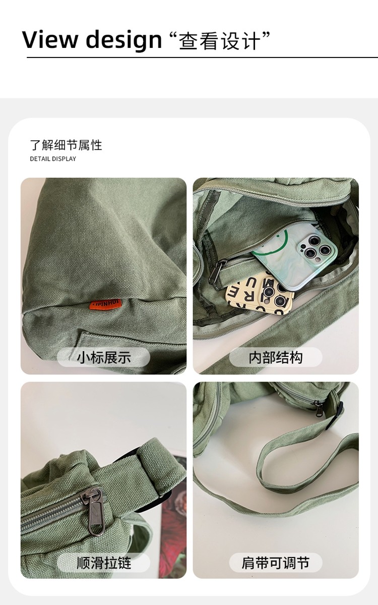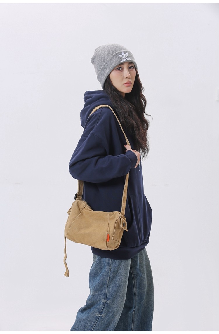 Durable and Versatile Retro Washed Canvas Crossbody Shoulder Bag for Female Students, Casual Commuting Japanese-Style Backpack for Men